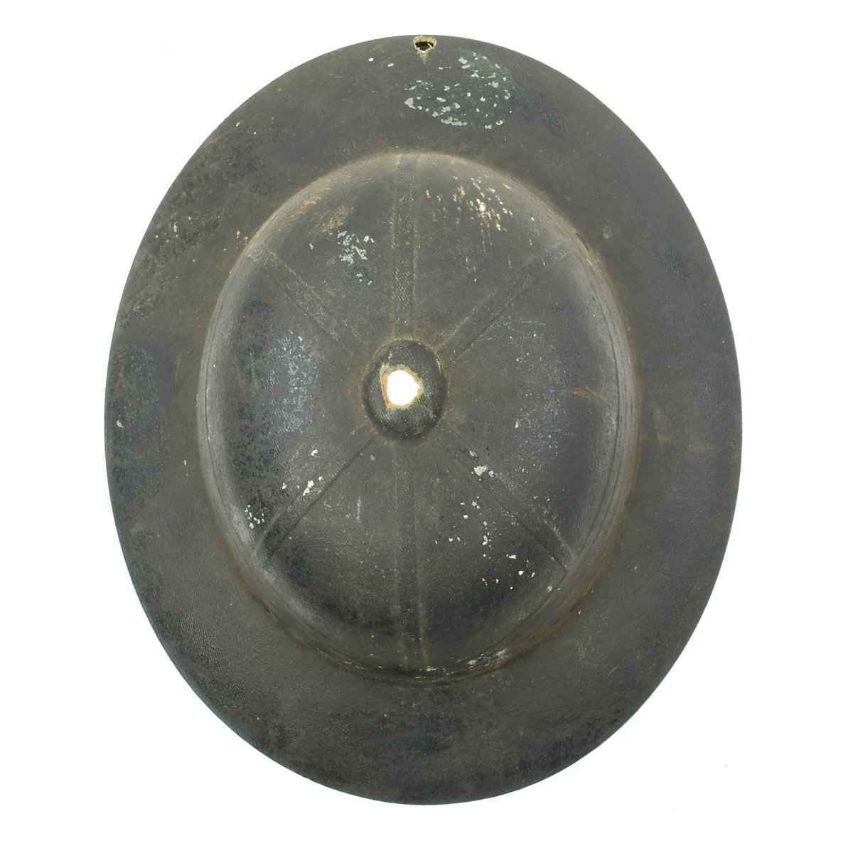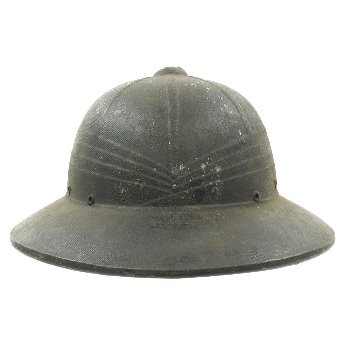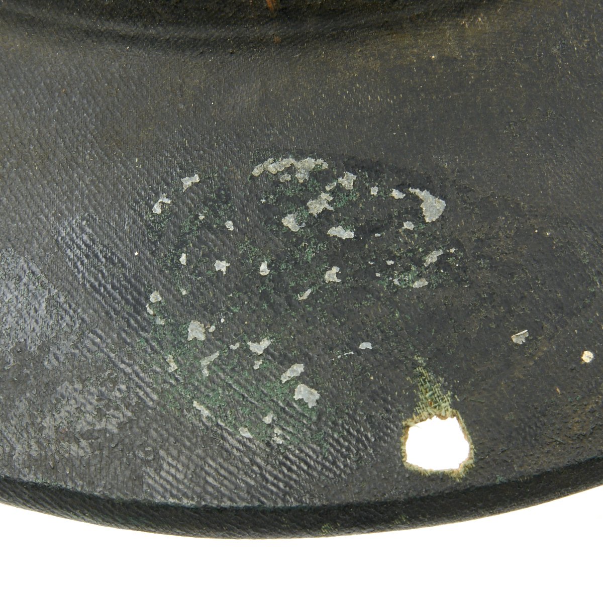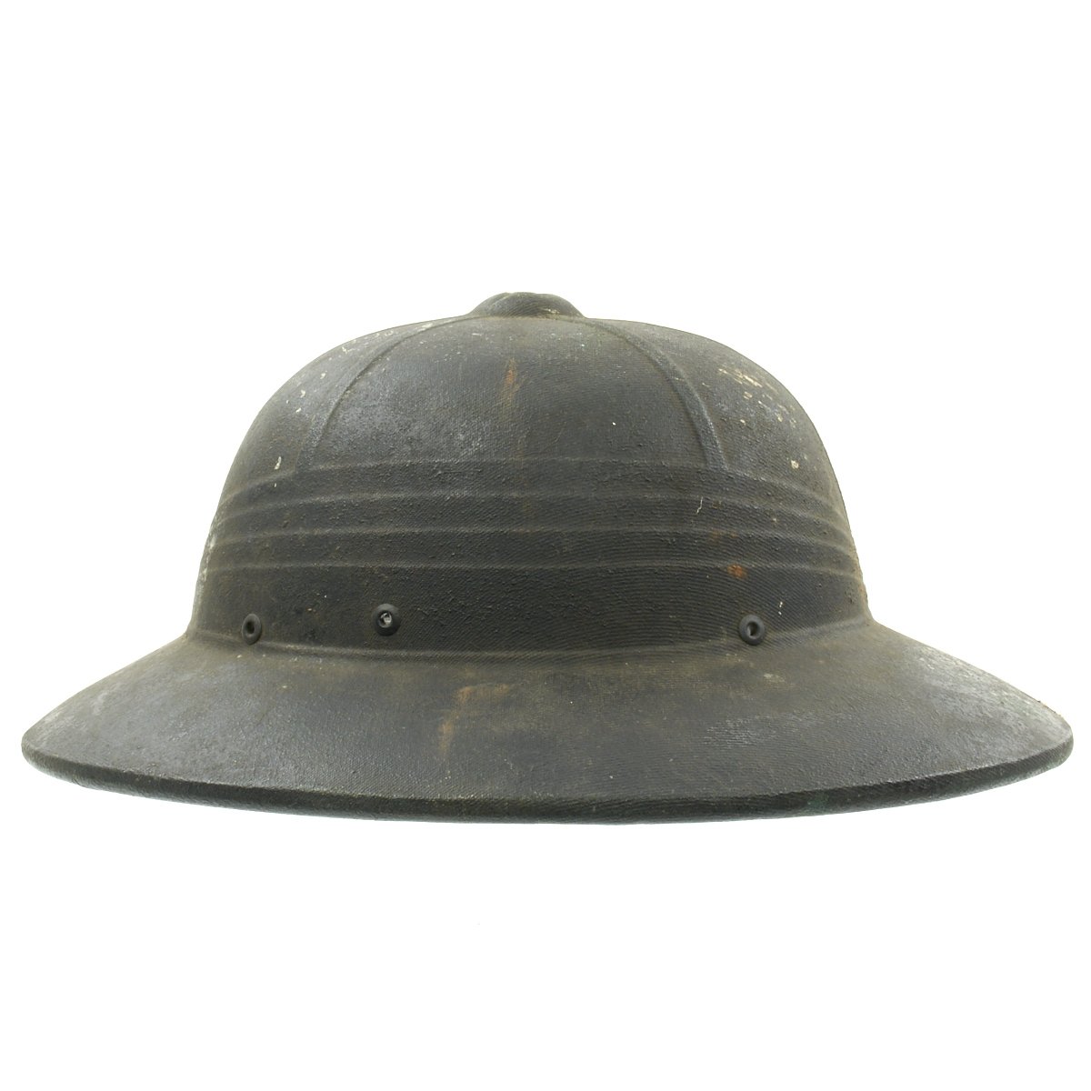 Original Item: One-of-a-kind. This is a Vietnam War Era 1960s pressed fiber helmet produced in dark green.This model of fiber helmets was originally used by the US Navy. A white version of this helmet was used by the Military Police Corps in tropical regions.This example has been painted black and on the interior was painted Dak Seang '69. It retains the original suspended liner sweatband but is missing the chinstrap. Overall condition is good but it has a hole at the crown and a small hole in the back of the brim which appears to have been used for carrying it hanging off a belt or on a lanyard.