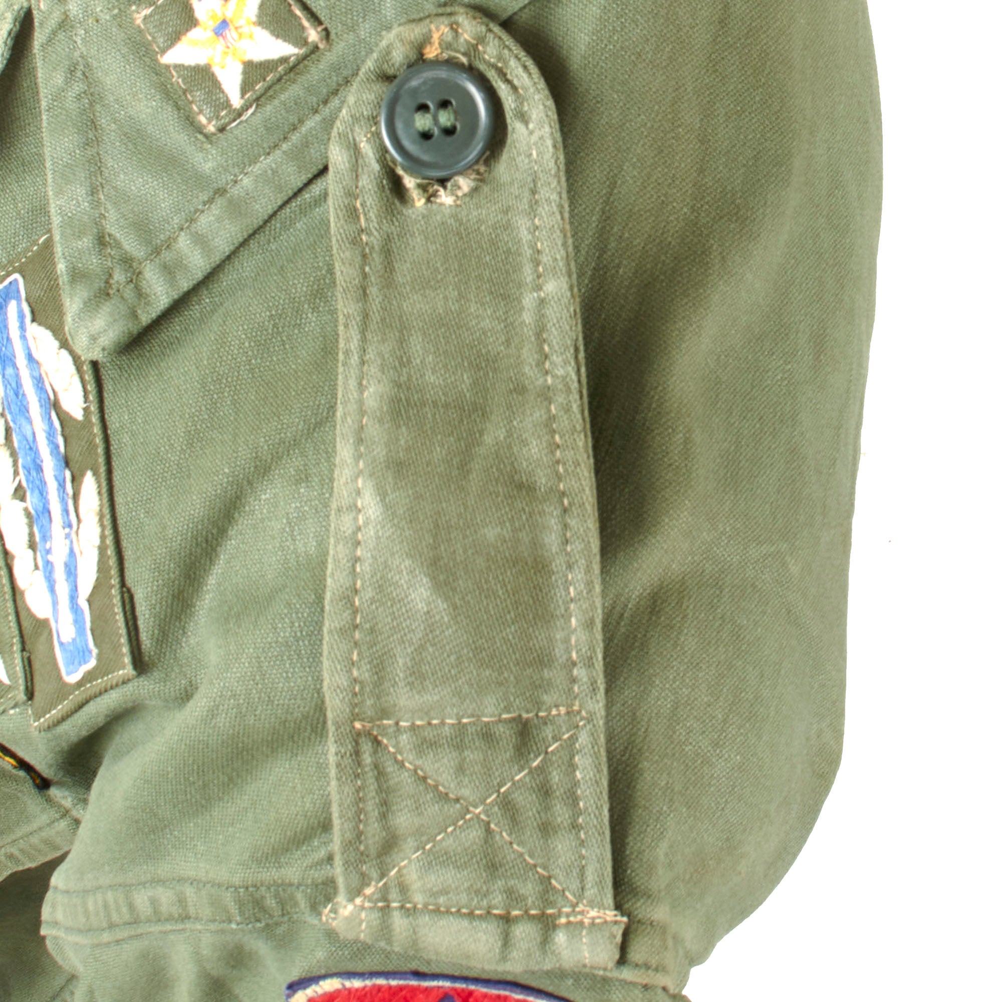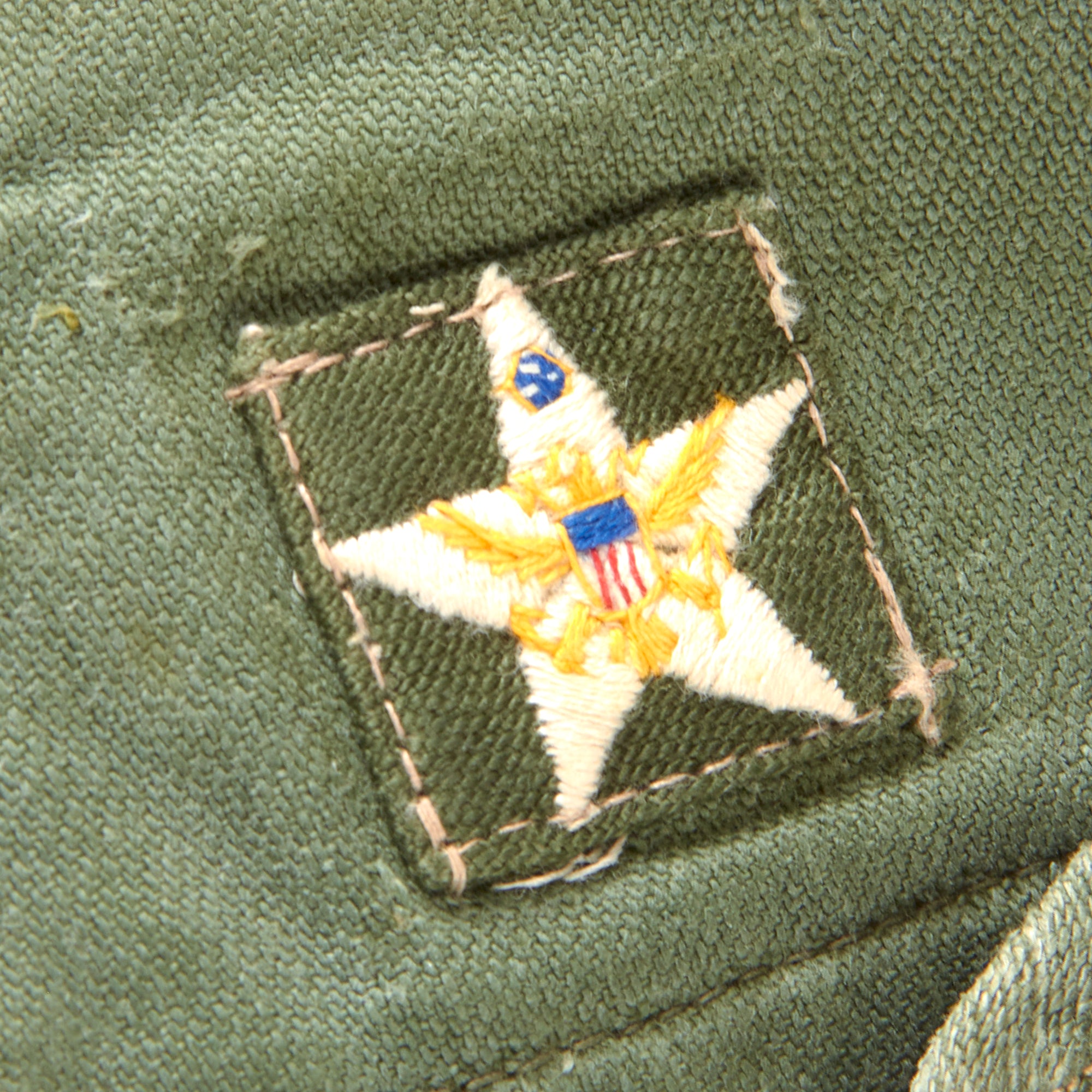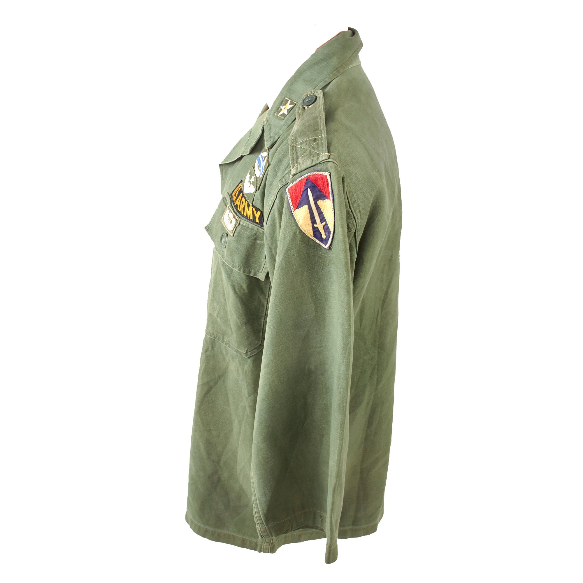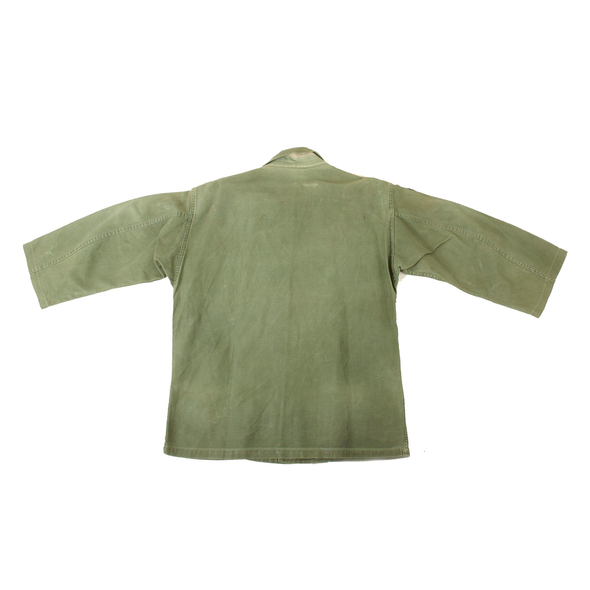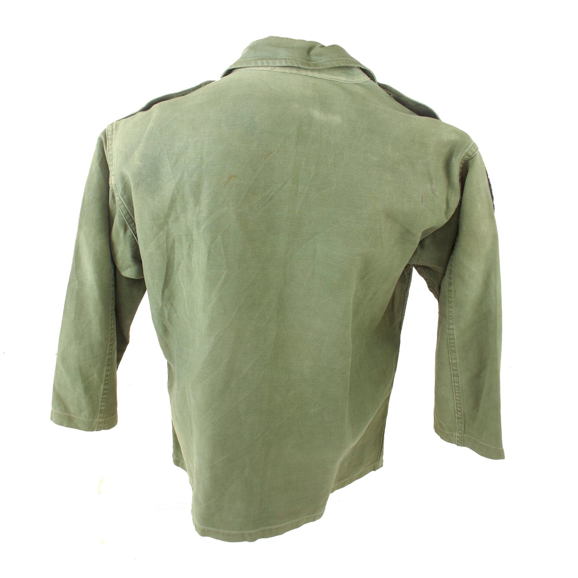 Original Item. Only One Available. This is a very well-worn and tattered “Type I” OG-107 Utility Shirt, worn by a Lieutenant Colonel in the 1st Field Force as indicated by the patch to the left shoulder.