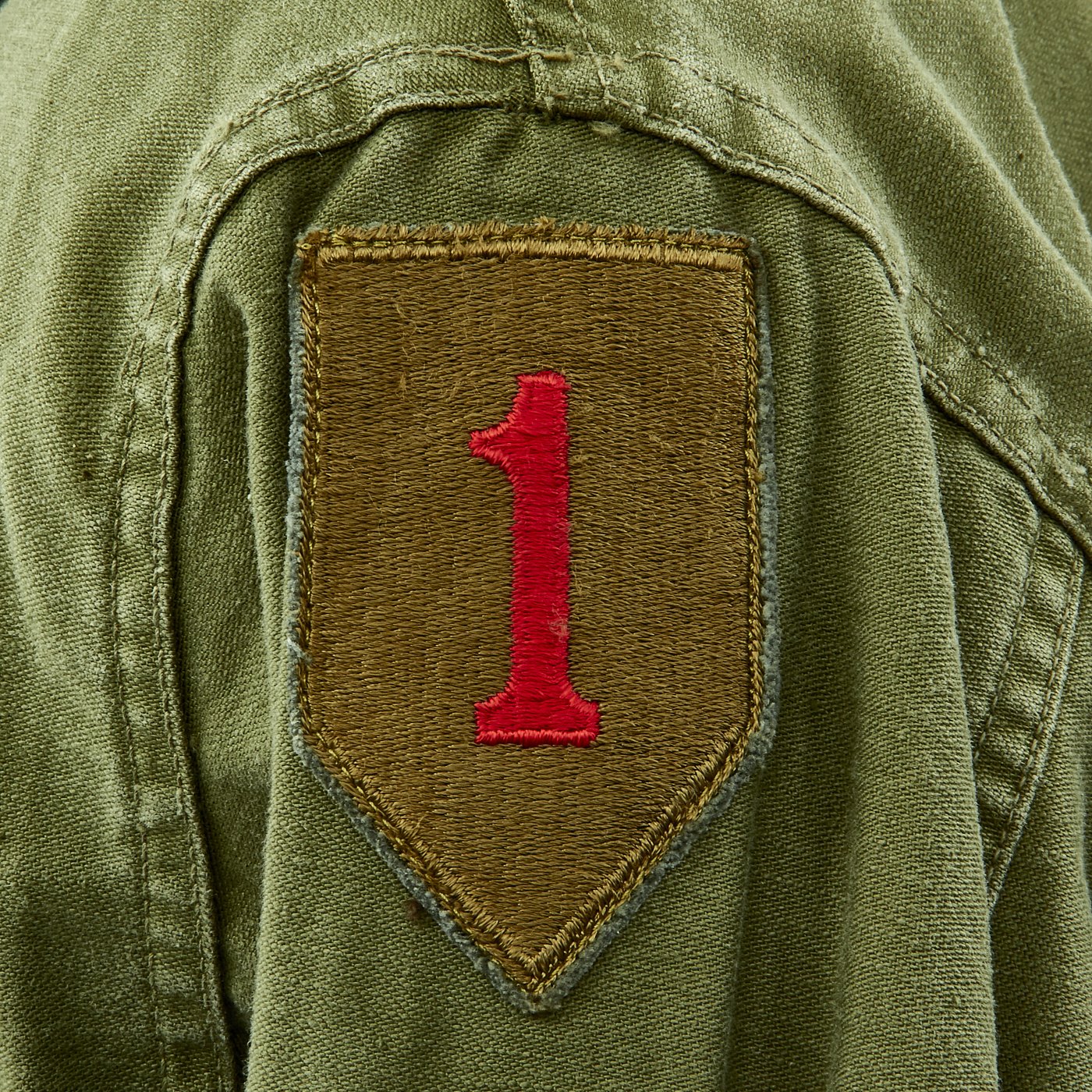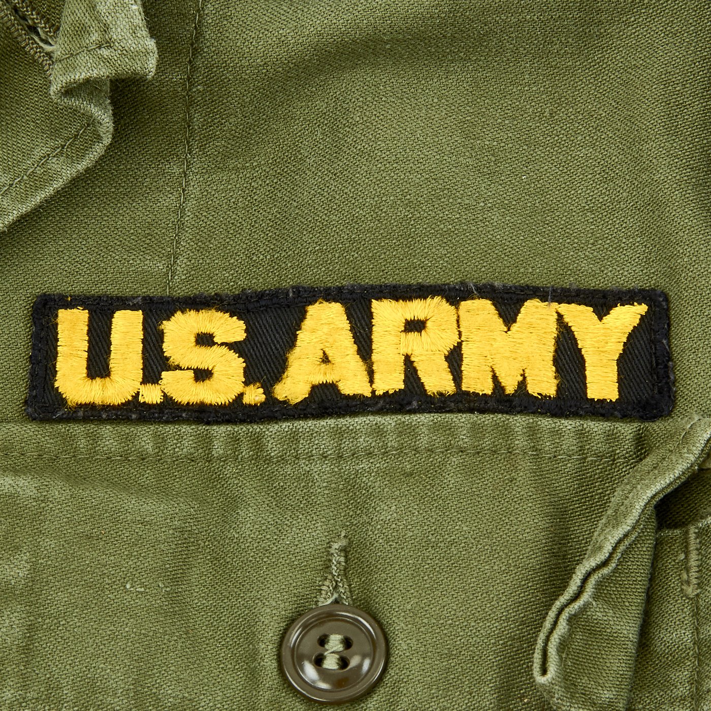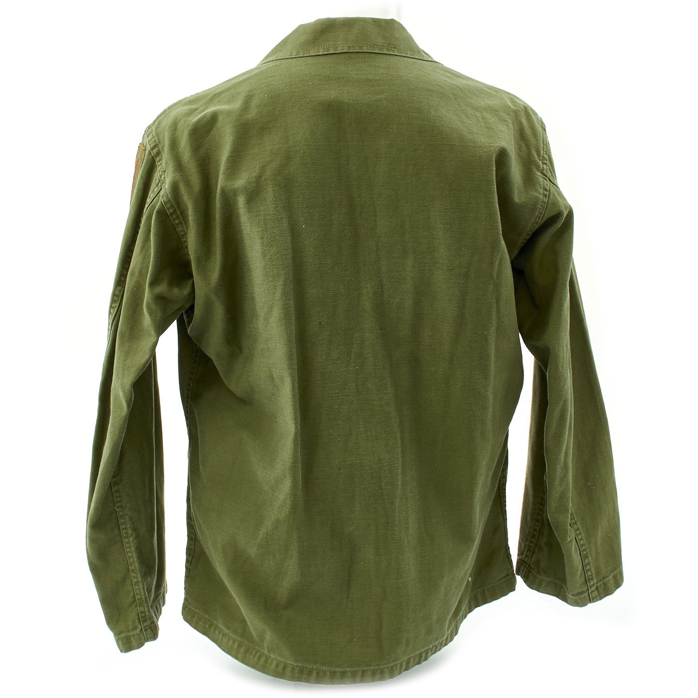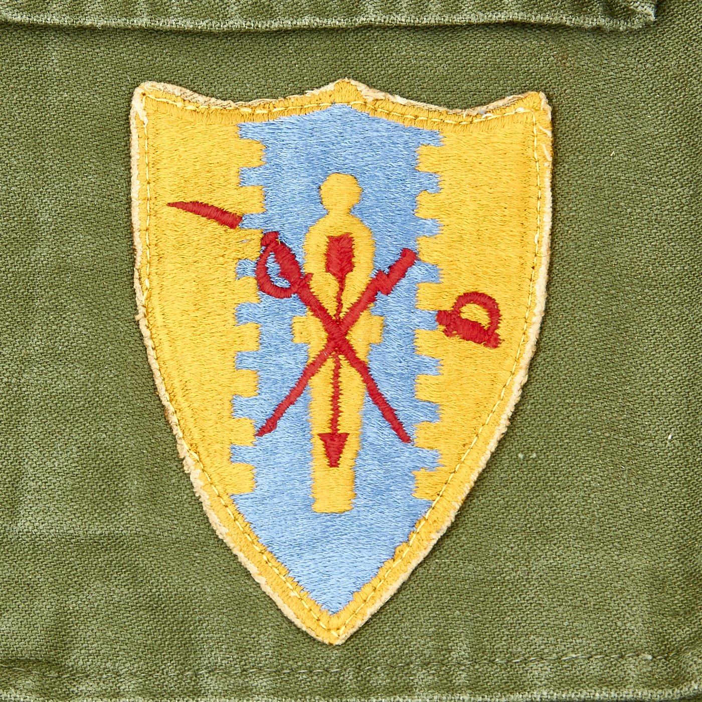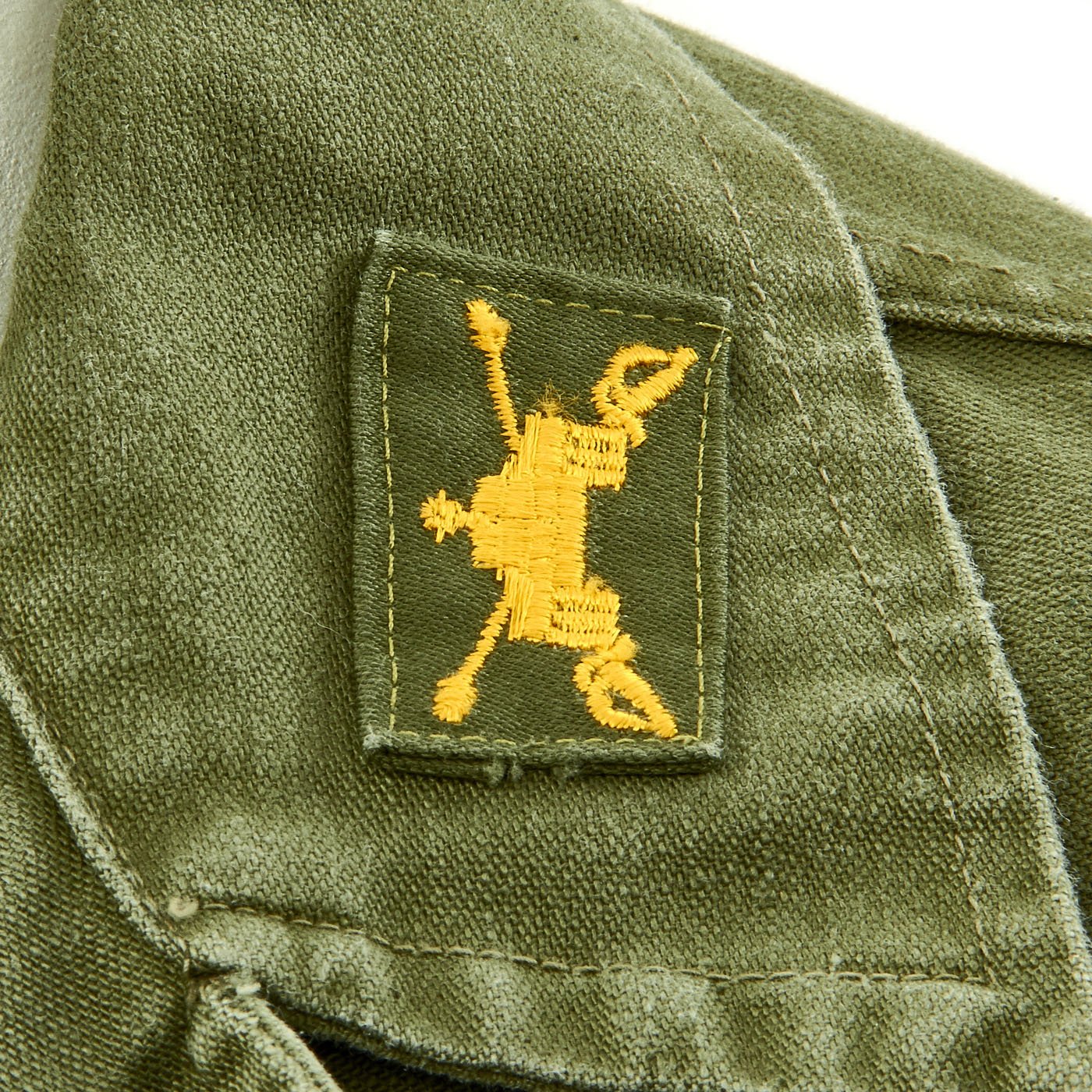 This is an excellent condition U.S. Army issue Vietnam War Era Jungle Fatigue cotton short which is named to CREASY and bear Major rank collar device as well as a 1st Infantry Division (Big Red One) patch to left shoulder and a 4th Cavalry Regiment patch to left chest.