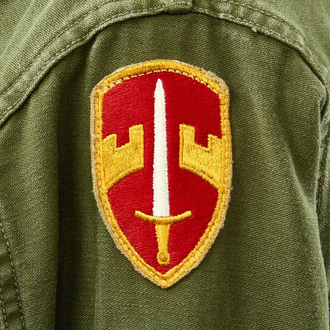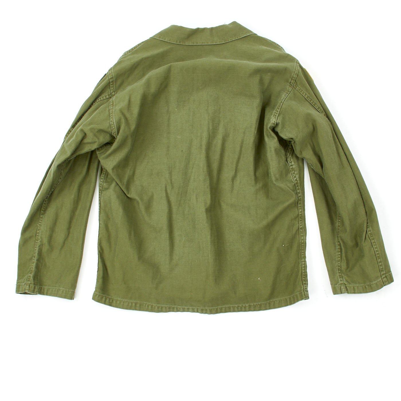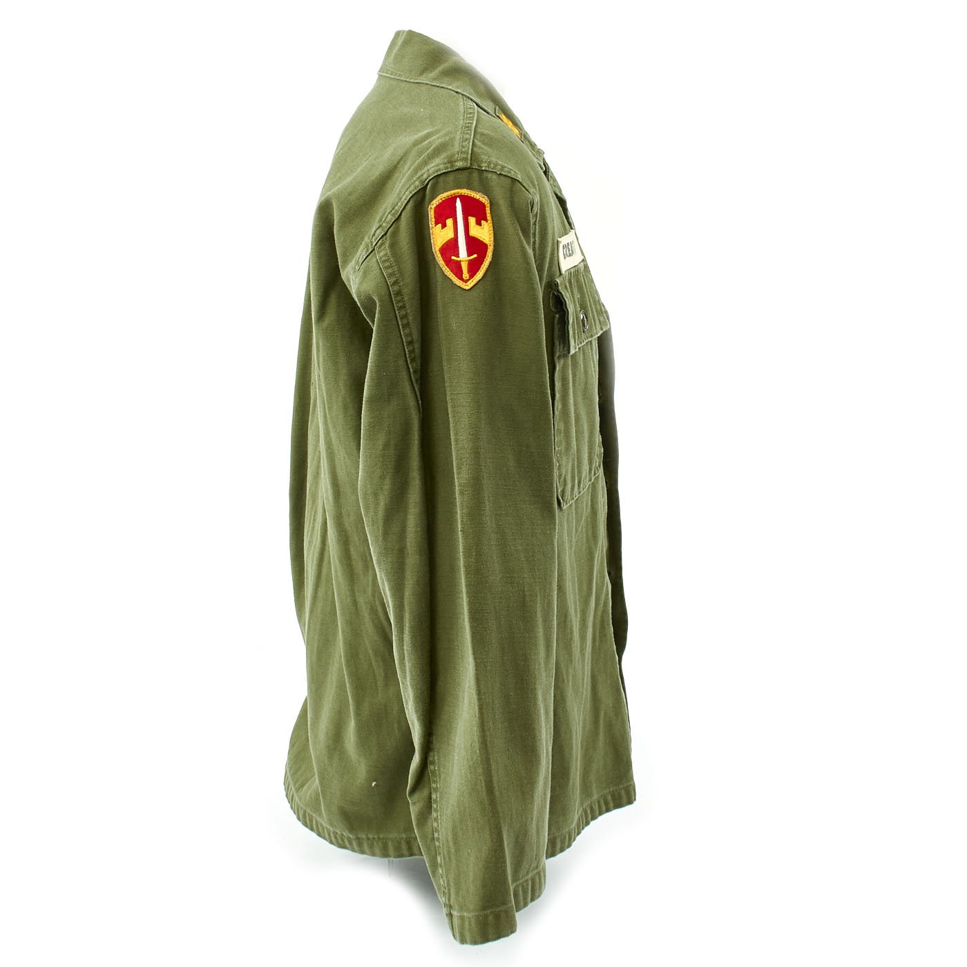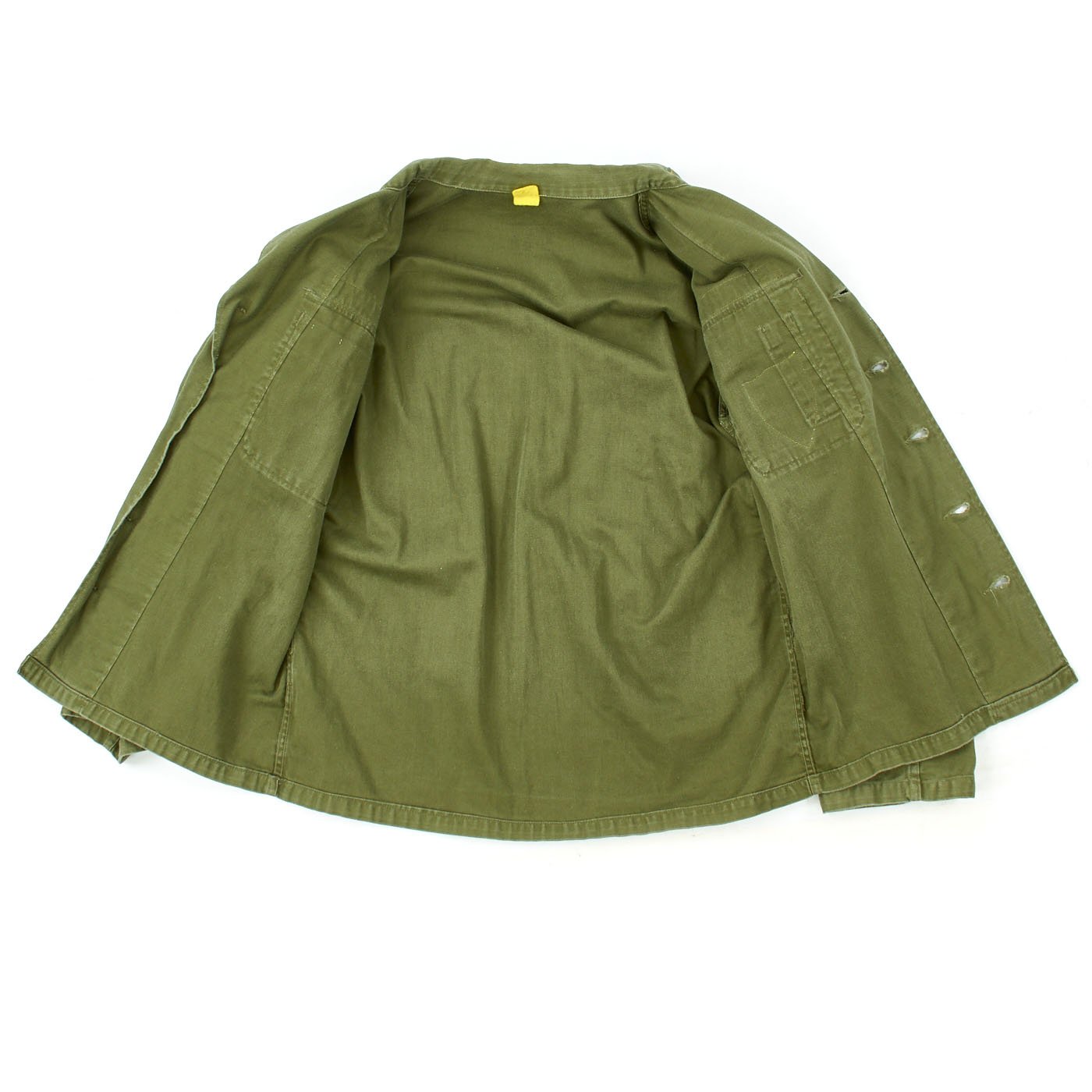 This is an excellent condition U.S. Army issue Vietnam War Era Jungle Fatigue cotton short which is named to CREASY and bear Major rank collar device as well as a 1st Infantry Division (Big Red One) patch to left shoulder and a 4th Cavalry Regiment patch to left chest.