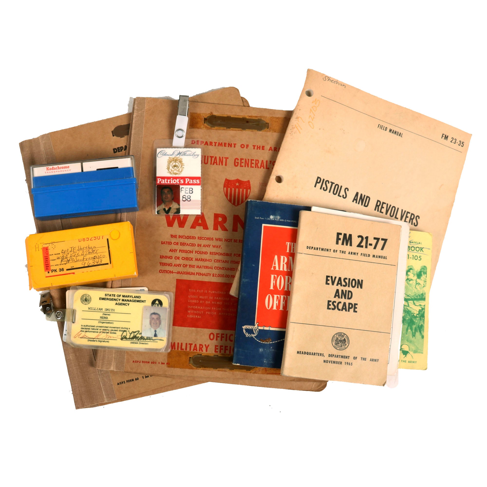 -Manuals/Papers: Pistols and Revolvers Manual, 1971, Aviator’s Handbook, 1974, Armed Forces Officer’s Guide. 1965. Official Efficiency and Records Folders (Empty).