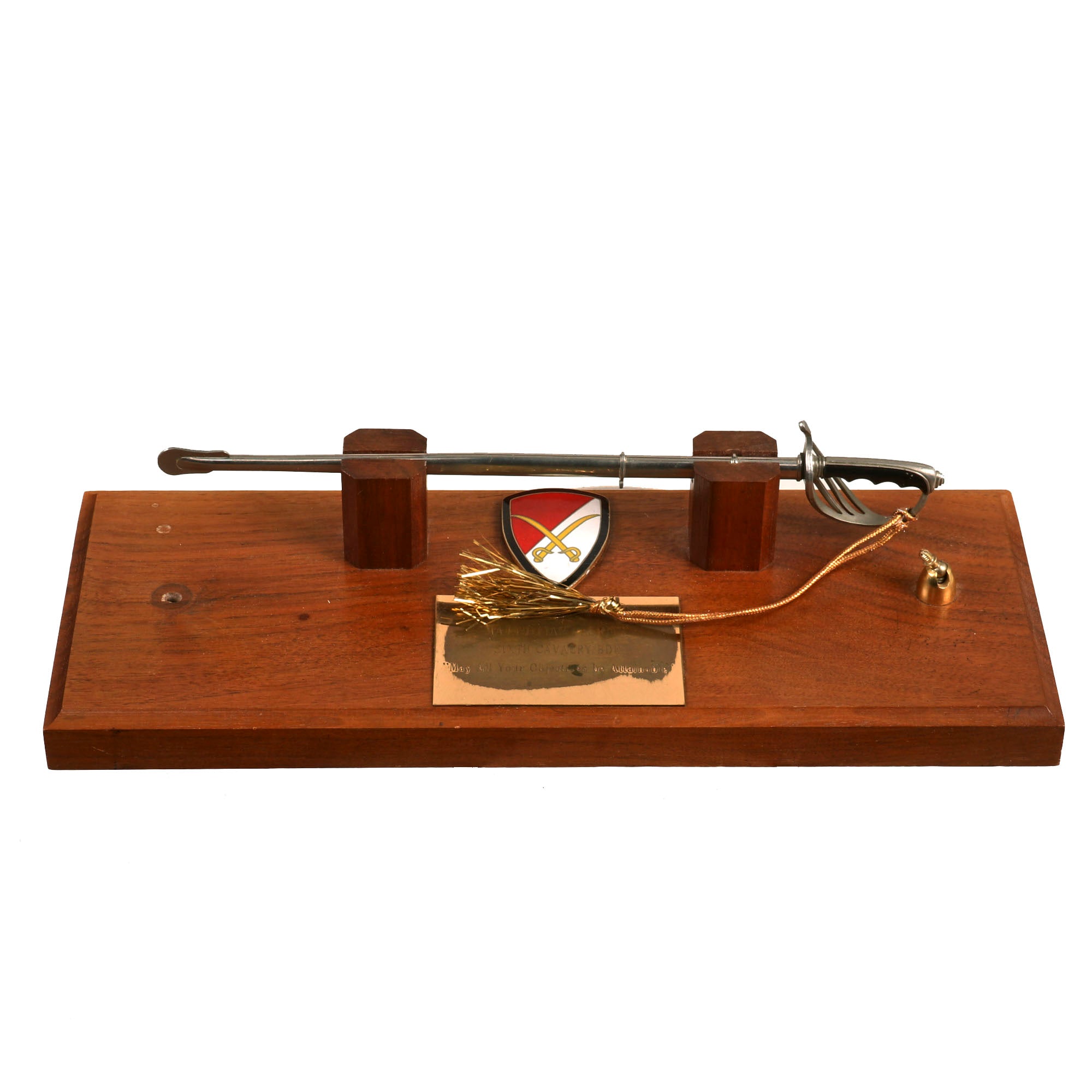 -Miniature Sabre Desk Piece. Presented by members of the 6th Cavalry Brigade. Again, another piece dating from Smith’s Post-Vietnam career in the 1970s.