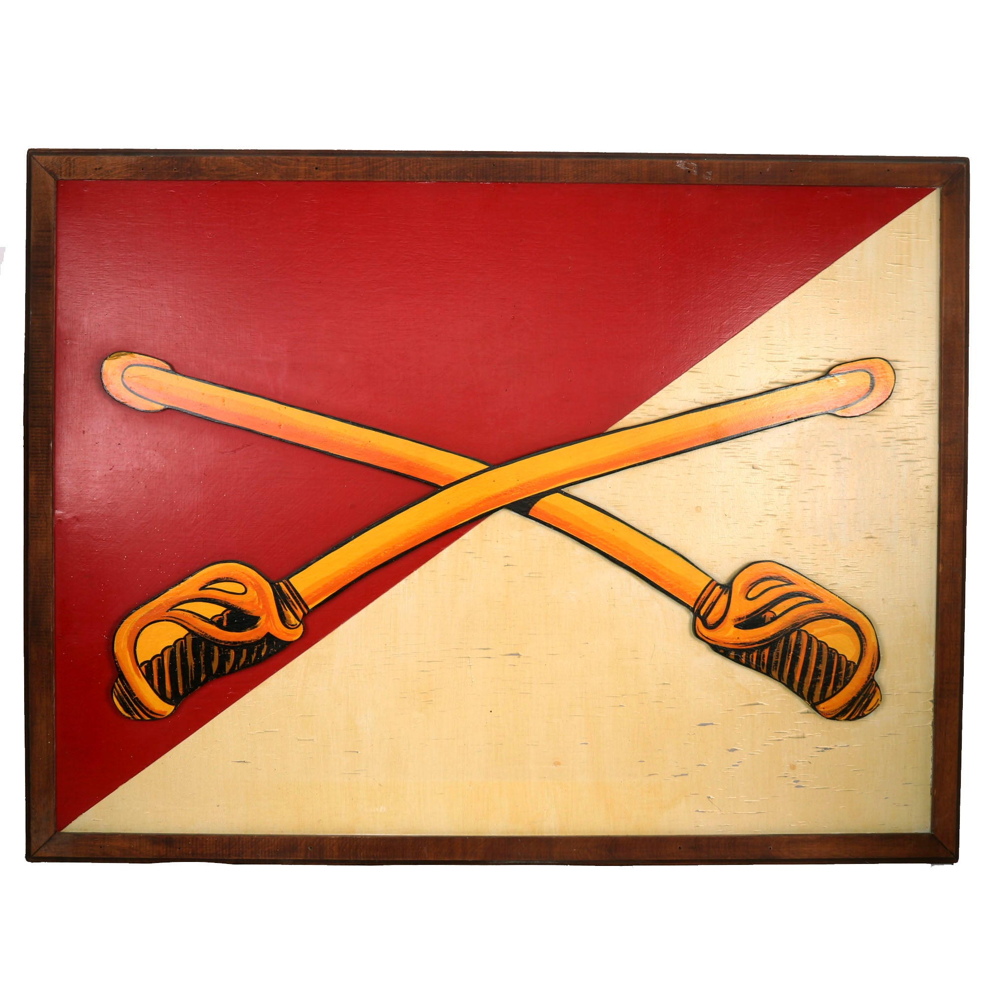 - Large Painted Wooden Sign from the B. Troop 3/17th Cavalry Officer’s Club in Vietnam. This massive piece measures 38.5” x 51”, and is hand painted on wood, with the crossed sabres being a cut out separate piece, giving it a three-dimensional appearance. It was conveyed from a family member that this hung in the Officer’s Club incountry and was sent home by Smith.