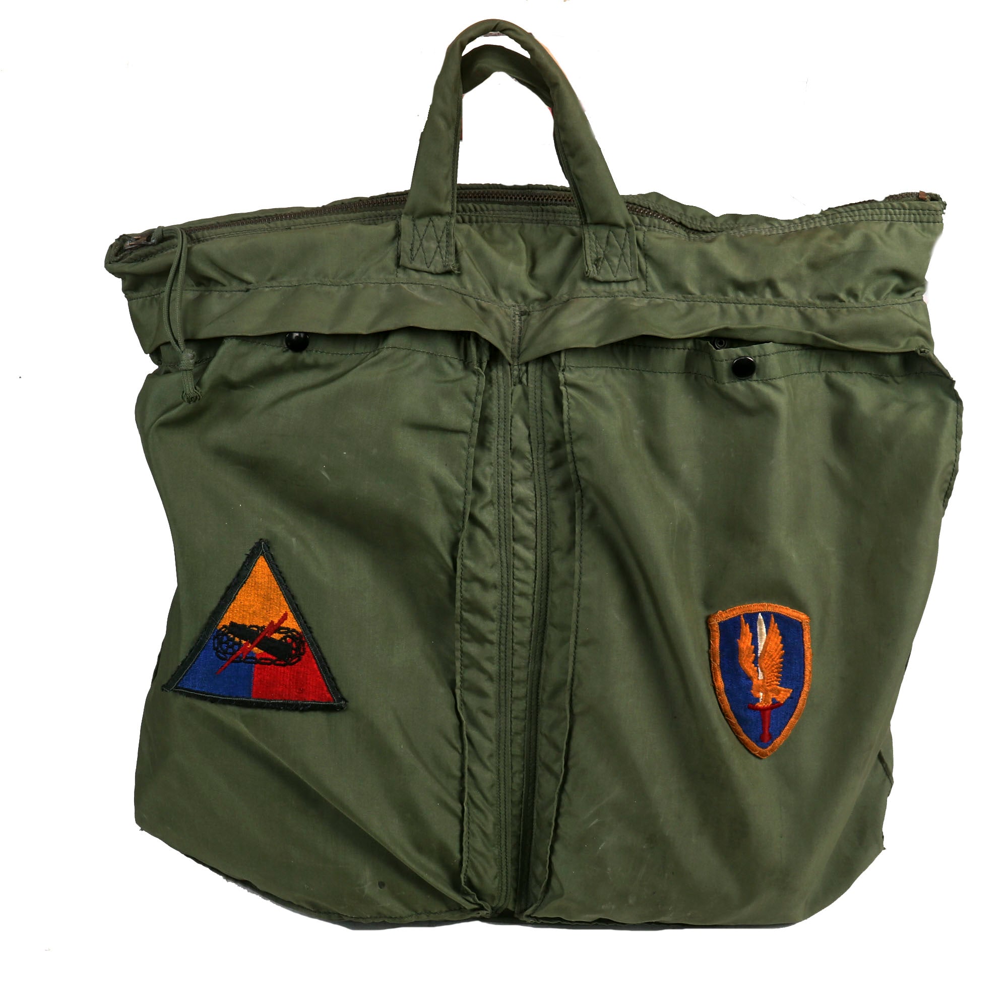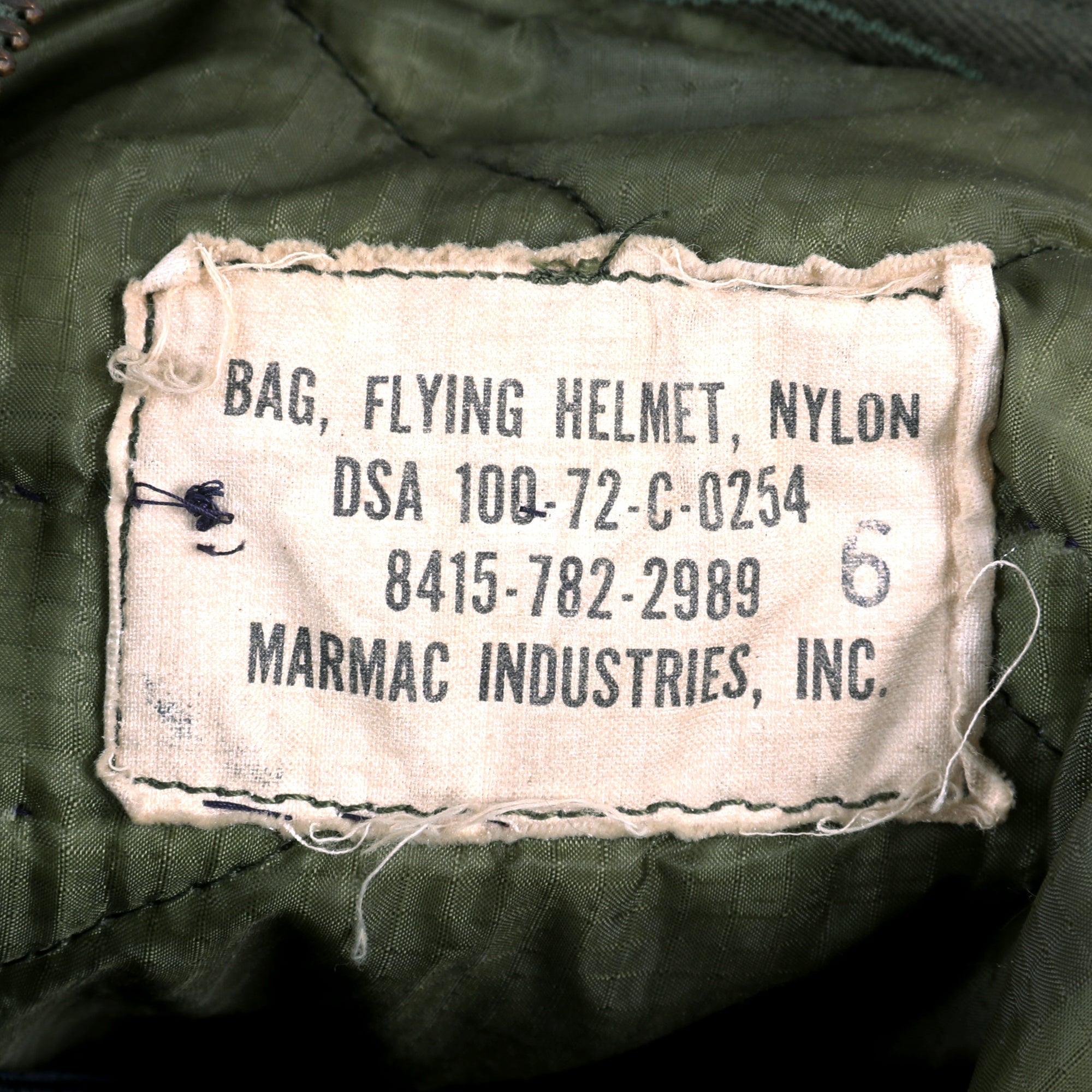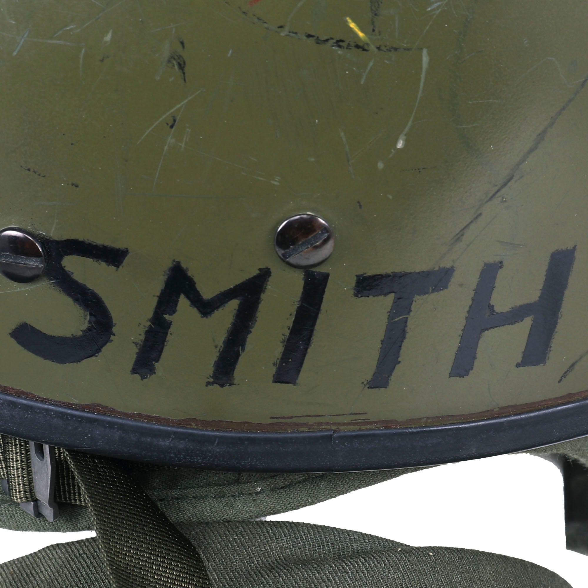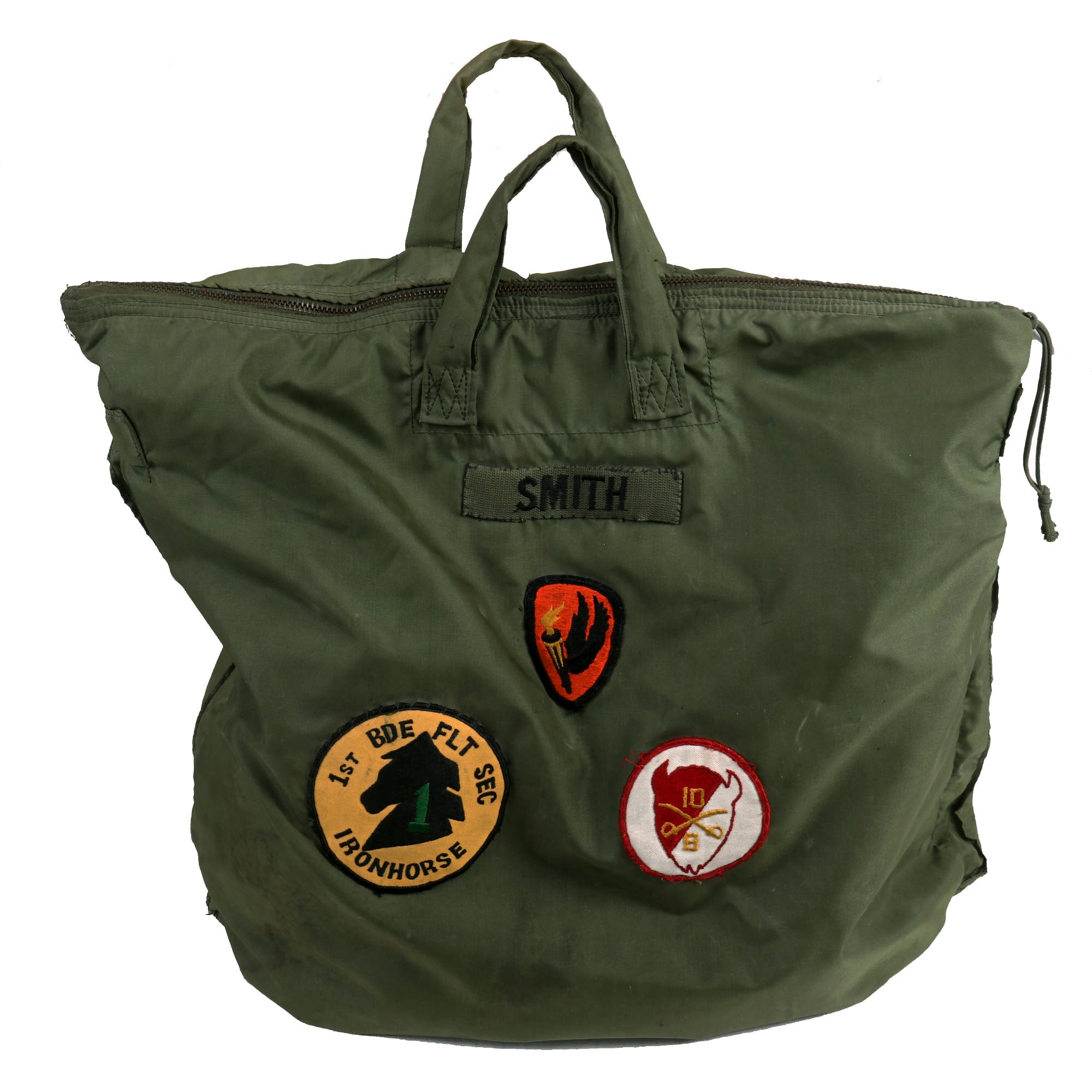 -SPH-4 Helicopter Helmet Dated 1971, Size “Regular”, by Gentex with Helmet Bag. This is one of Campatin Smith’s Helmets, likely used during Vietnam and used during his career as an aviation officer. The Bag has sewn on various insignia spanning his career.