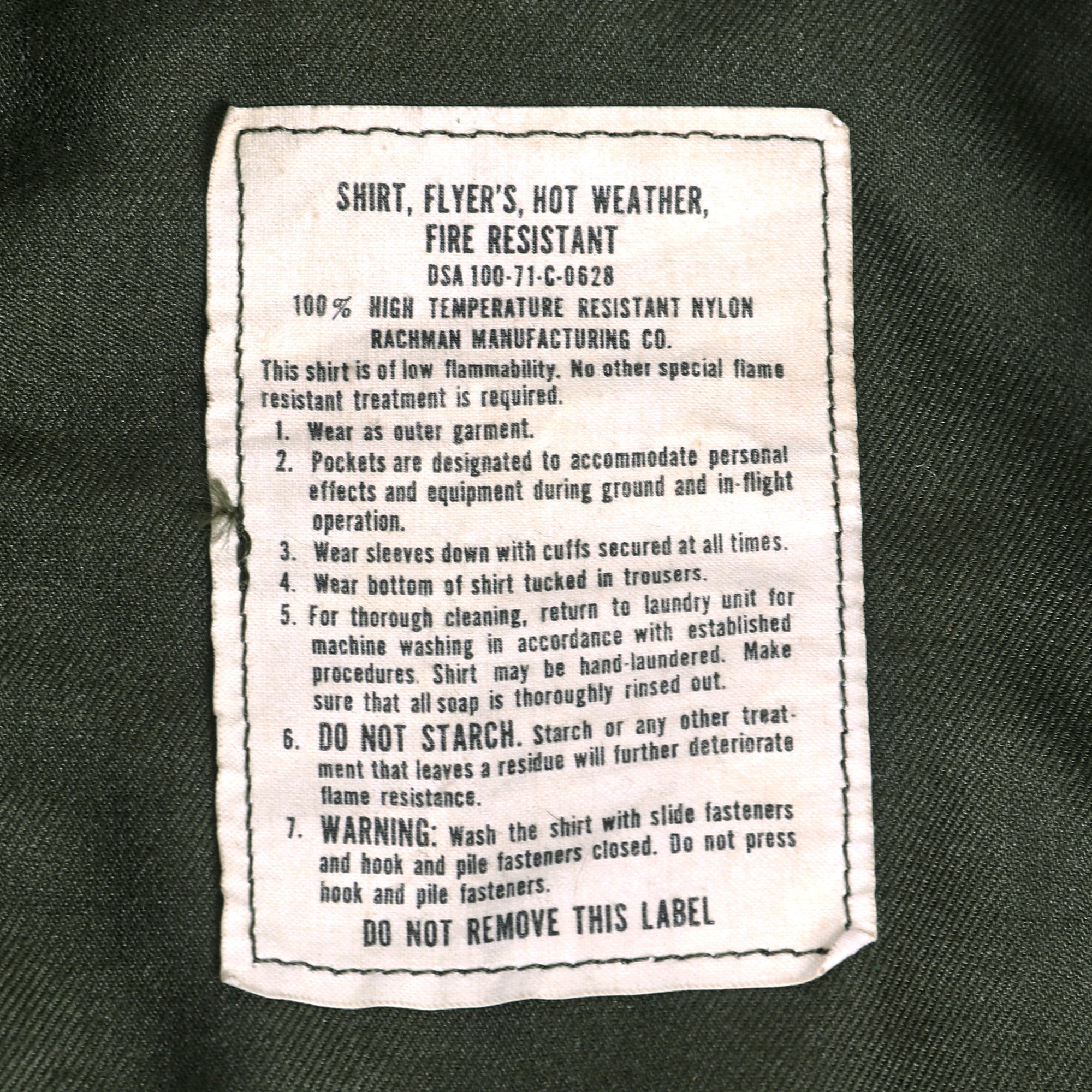 -Two- Piece Nomex Flight Suit. Shirt is Size Medium-Regular, with no visible date. Trousers are size Medium-Long, with a 1971 Date. Comes with Issue Belt.