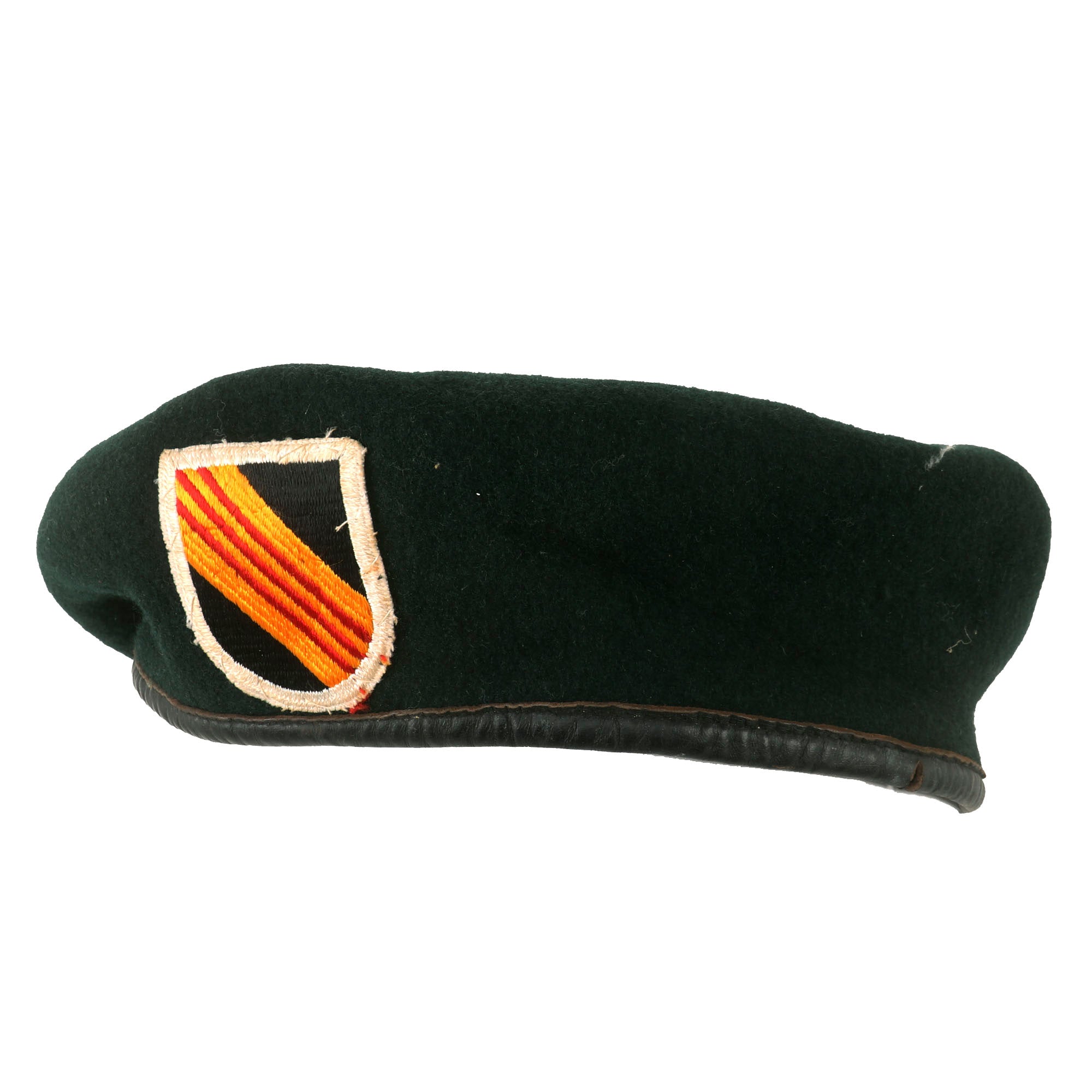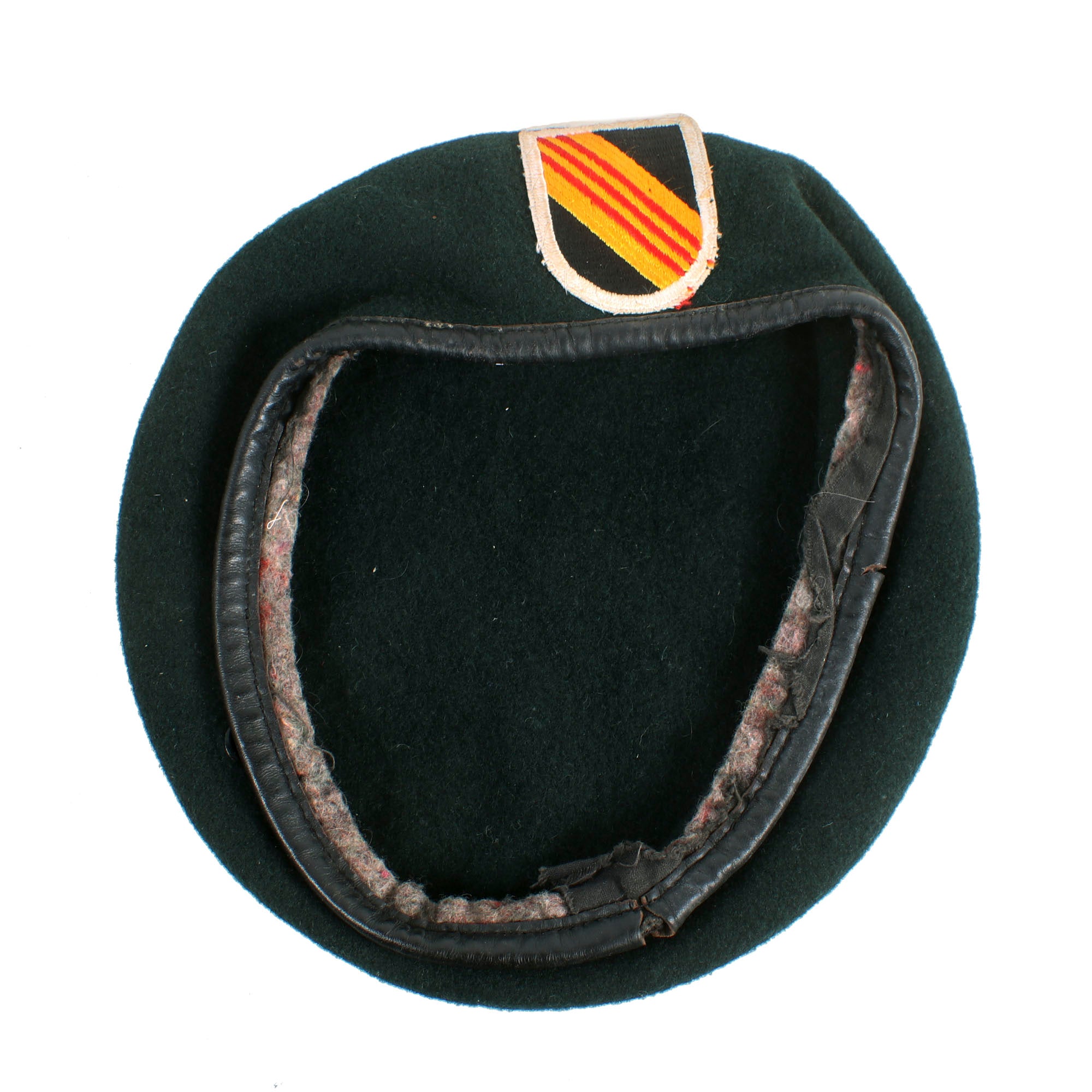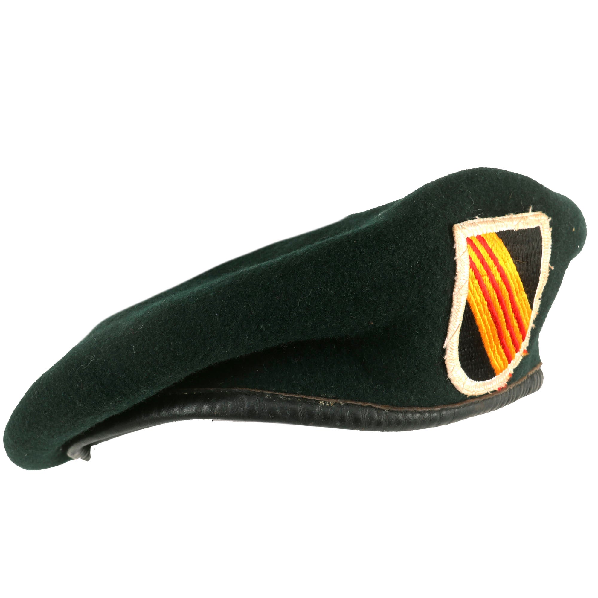 Original Item: Only One Available. An nice and solid issued “Rifle Green” Special Forces beret. This example shows signs of honest wear and use.