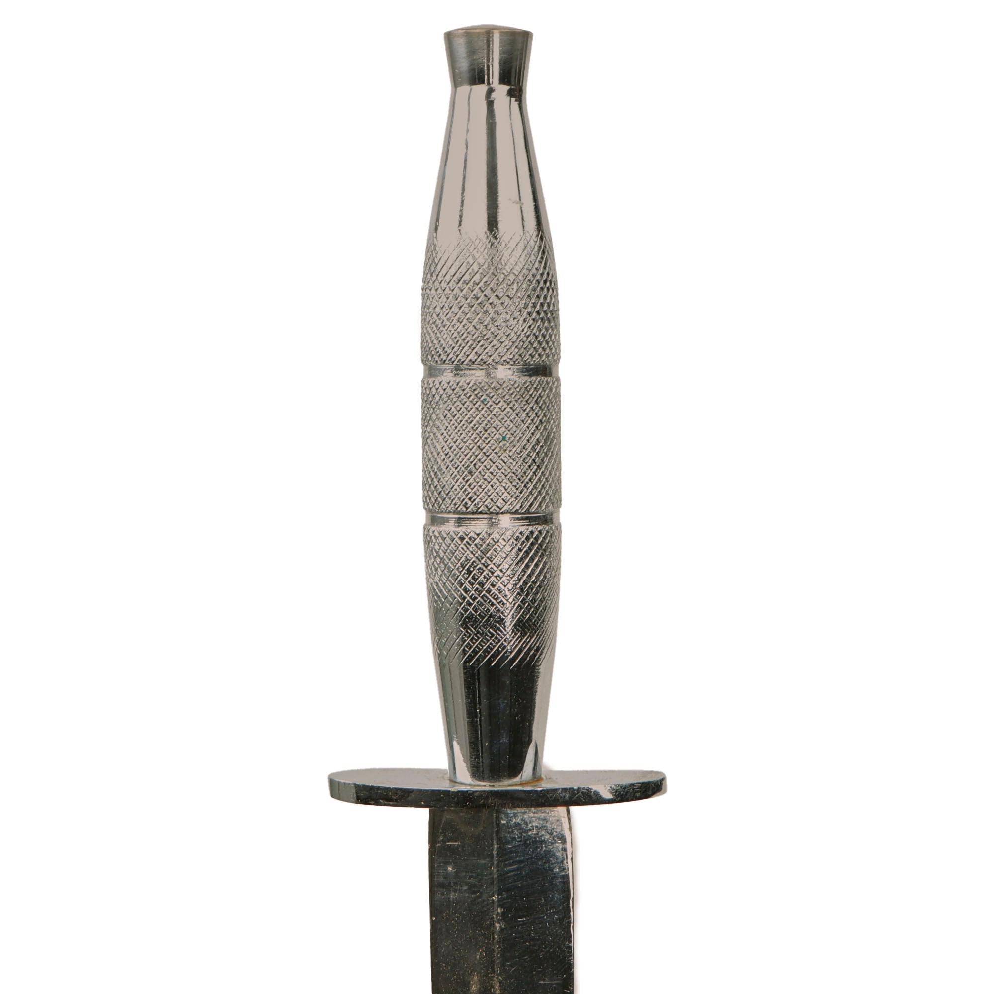 This example is textbook for presentation by the Special Forces, and retains yhe plating well. The pommel nut has been shaven down likely by a machine. There is some very minor chipping to the plating along the edge of the blade. Otherwise it is in very good shape.