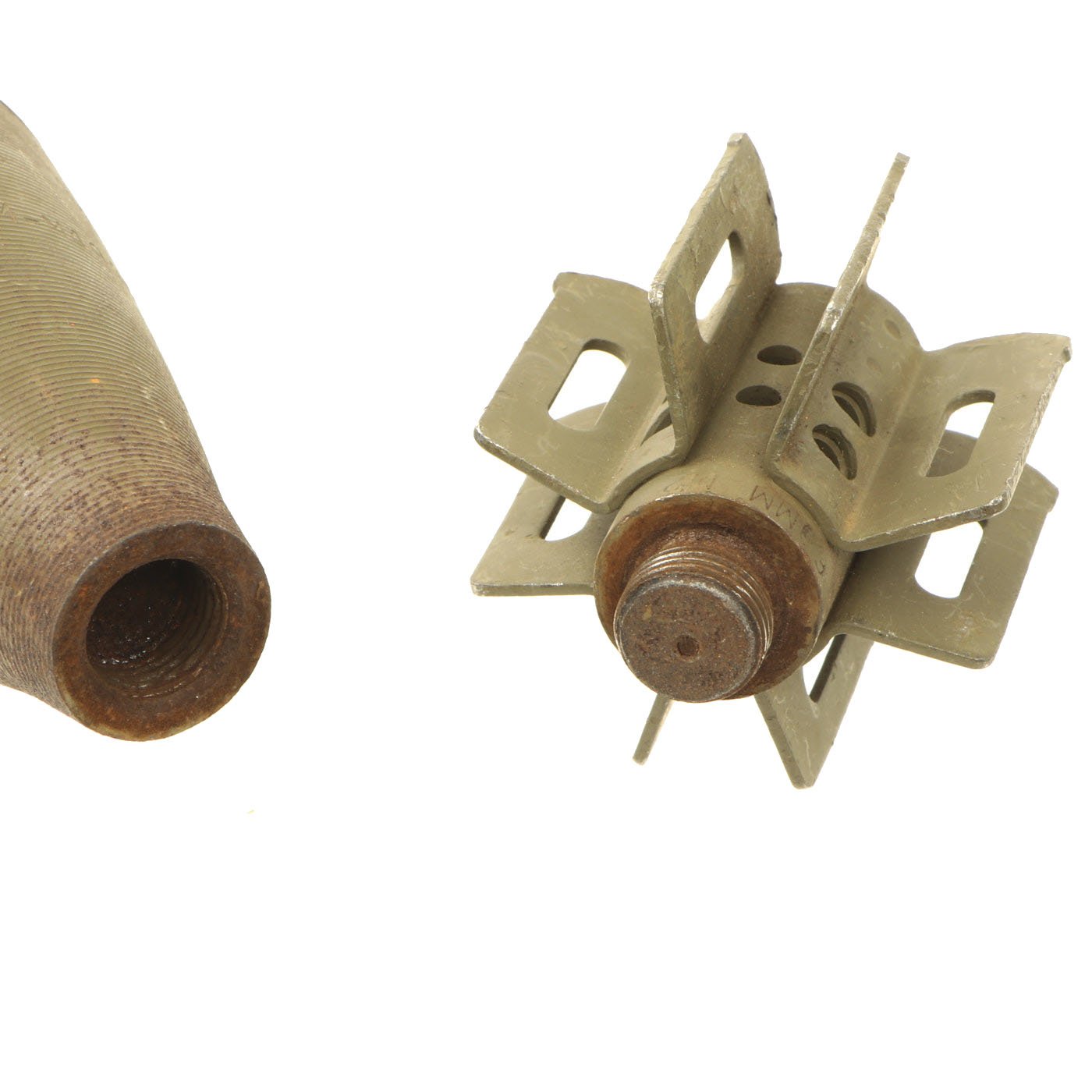 The OD Green paint is retained very well. Both the fuze and base screw off for inspecting the internal structure. This is a great chance to pick up a scarce Vietnam War dated deactivated mortar round!