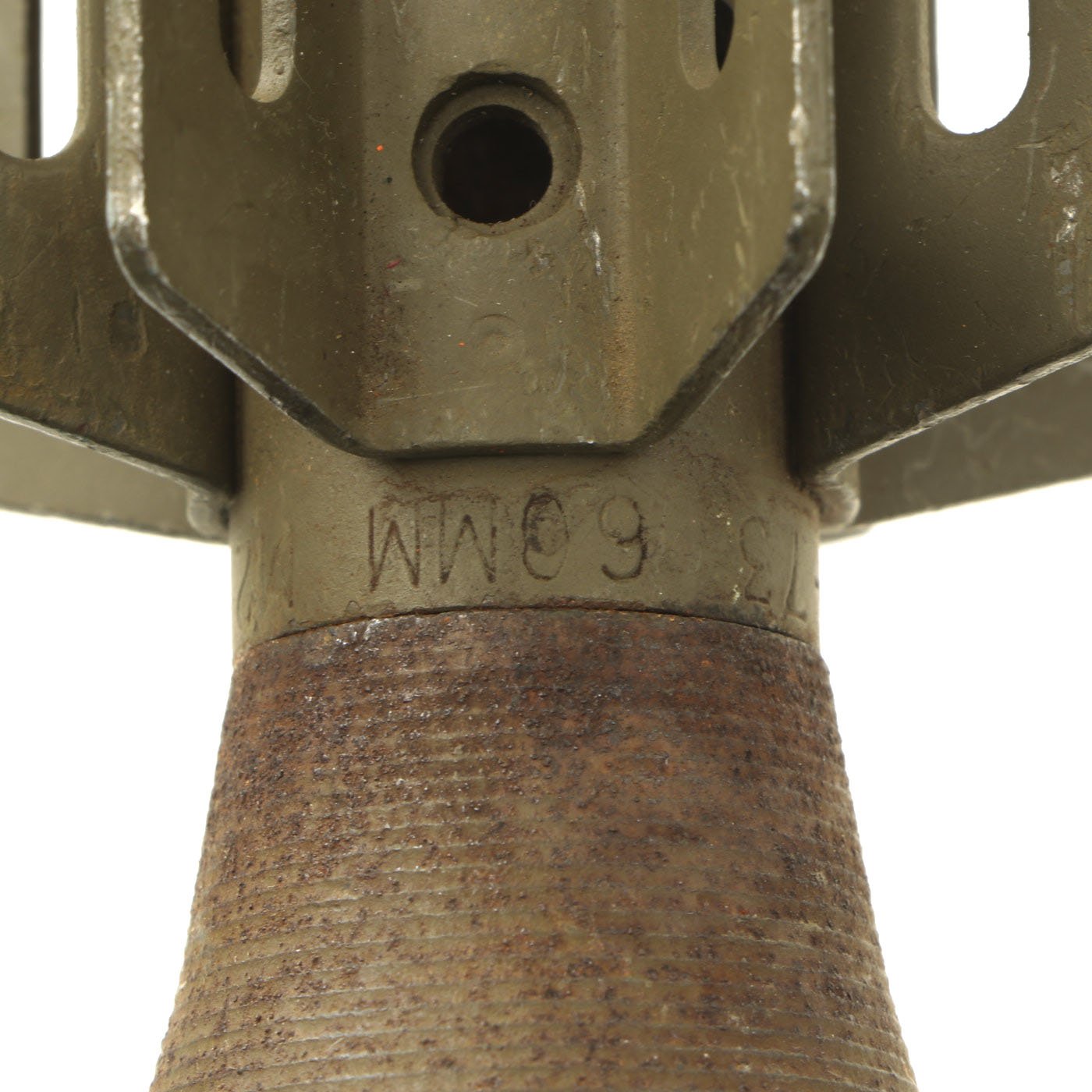 This is a hard to find WWII 1973-Dated M49A3 Deactivated Mortar Round, for the U.S. 60mm M2 Mortar. This cartridge is fired in 60mm mortars M2 or M19 for use against personnel and materiel, providing both fragmentation and blast effect.