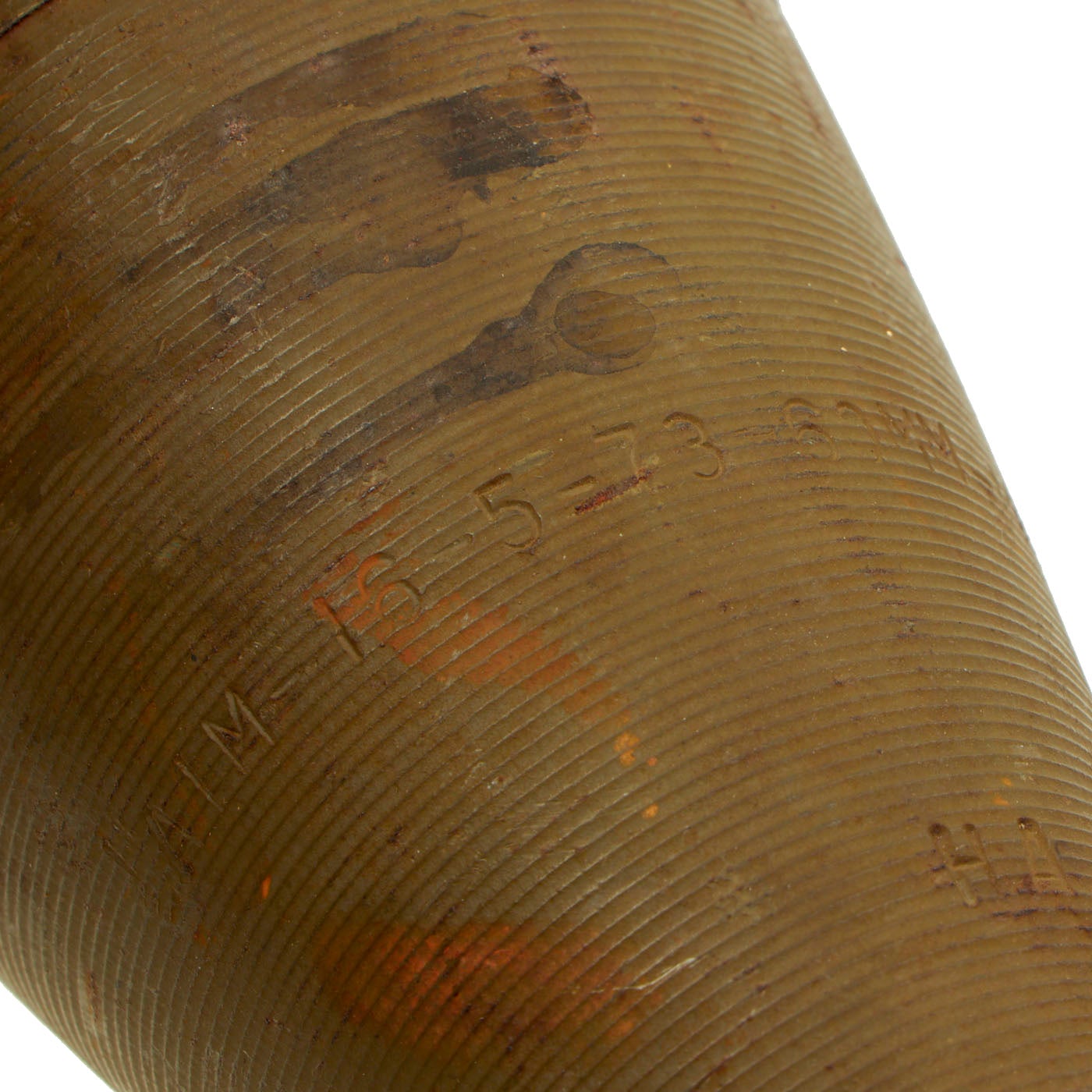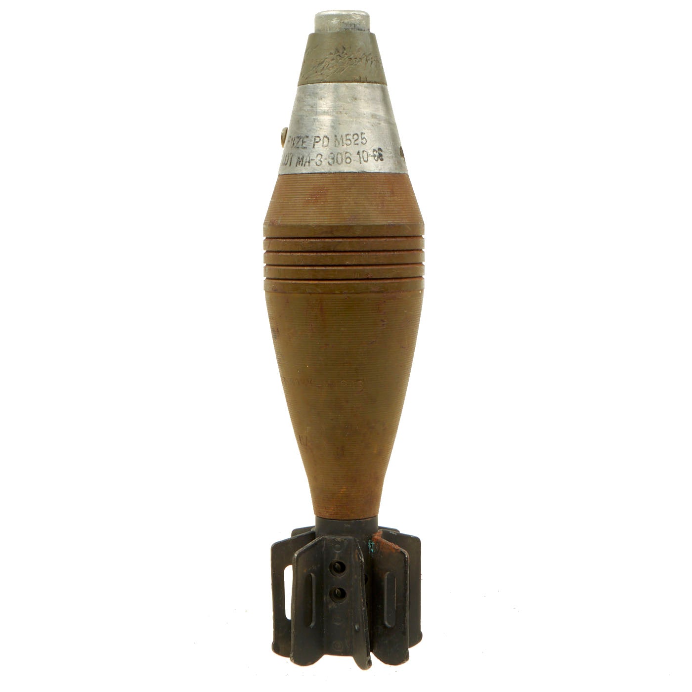 This is a hard to find 1973-Dated M49A3 Deactivated Mortar Round, for the U.S. 60mm M2 Mortar. This cartridge is fired in 60mm mortars M2 or M19 for use against personnel and materiel, providing both fragmentation and blast effect.