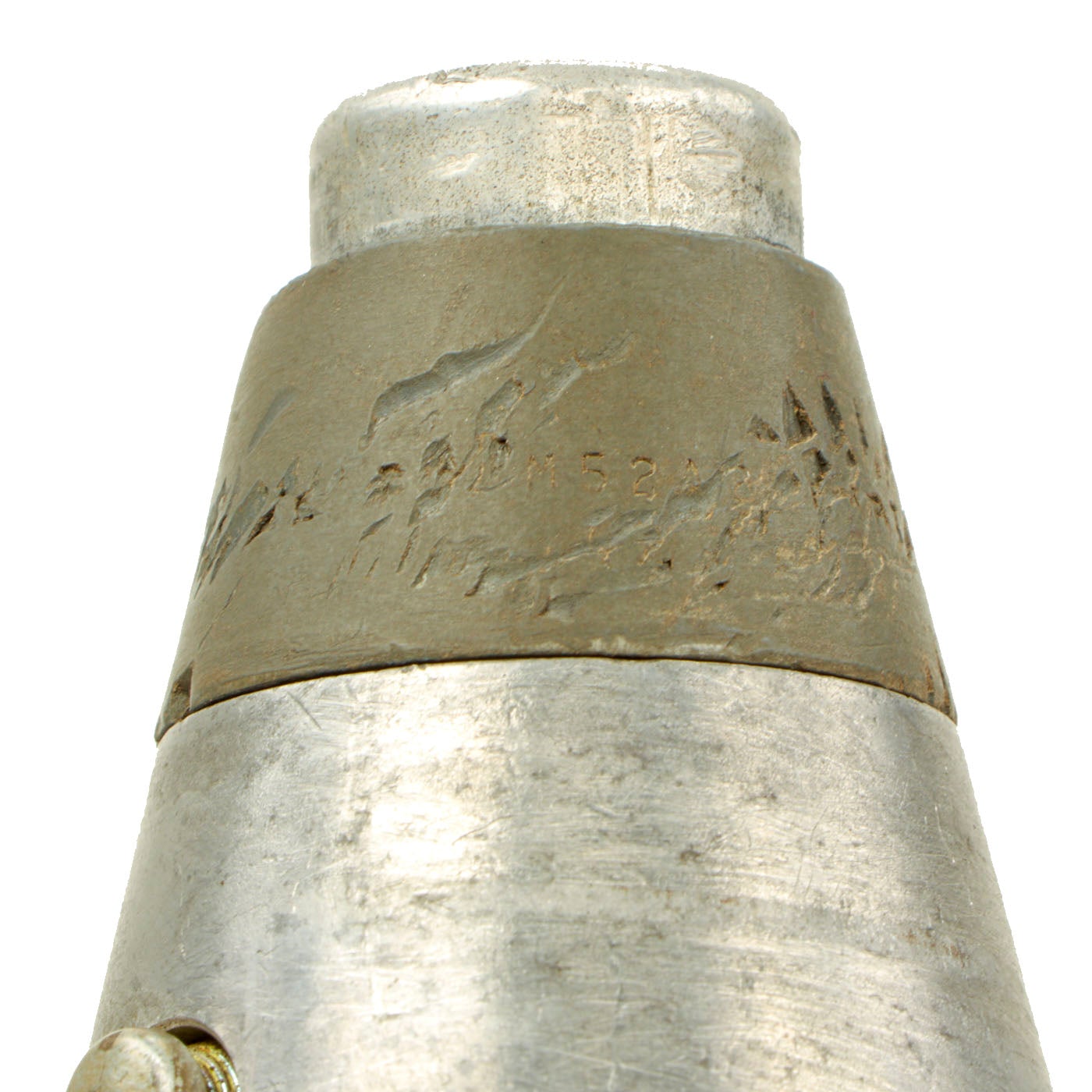 The OD Green paint is retained very well. Both the fuze and base screw off for inspecting the internal structure. The fuze also has the correct FUZE, PD, M525 marking on the side, as well as a date which was double stamped unfortunately and cannot be read properly. Even the fin assembly has a date which is 68.