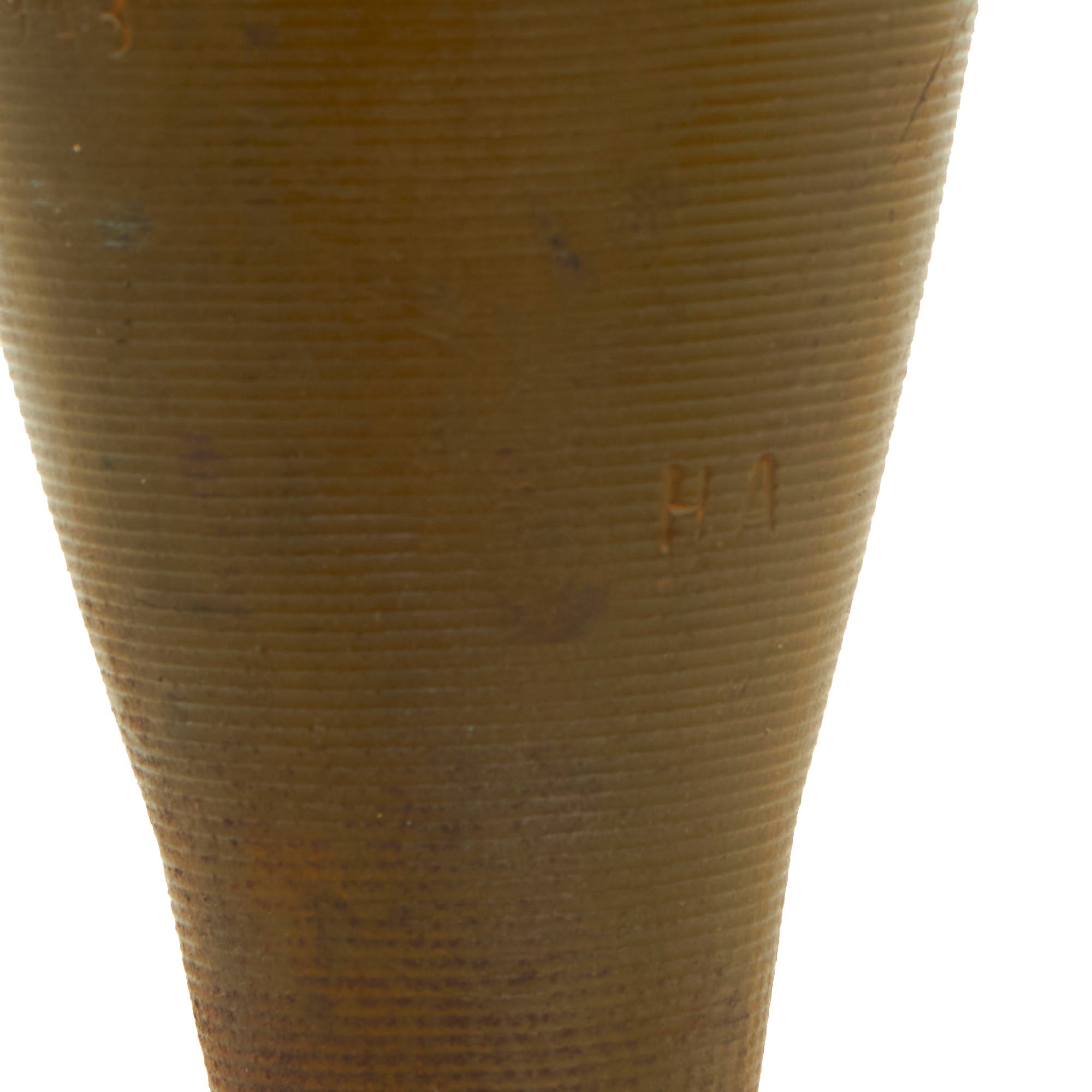 The OD Green paint is retained very well, and there are no stenciled markings. Most likely this example was made as an inert practice version, and was never filled with any type of explosive.