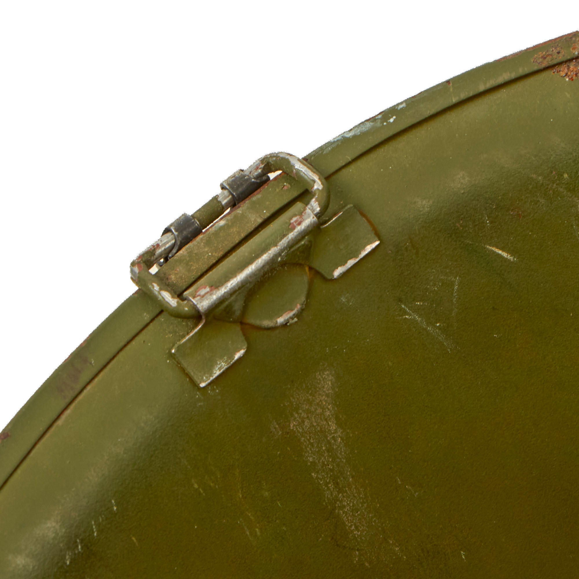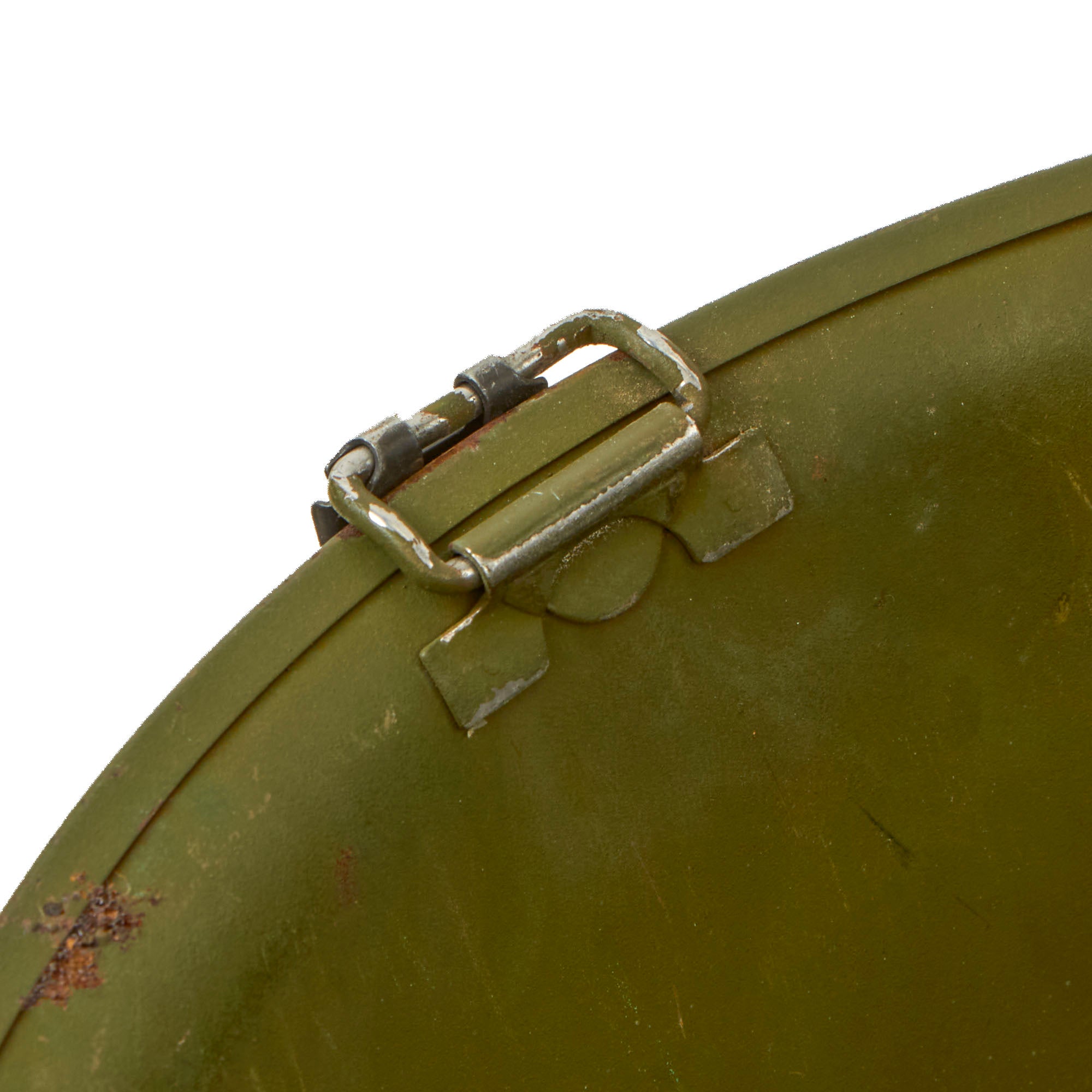 Vietnam War era M-1 helmet shells have a set of swivel (movable) chinstrap loops called bales and a manganese steel rim. These rims had non-magnetic qualities that reduced the chance of error readings when placed around certain sensitive equipment (such as a compass). In WWII the shells had Stainless Steel rims, however these would easily lose paint, and the shine produced without paint was a liability.