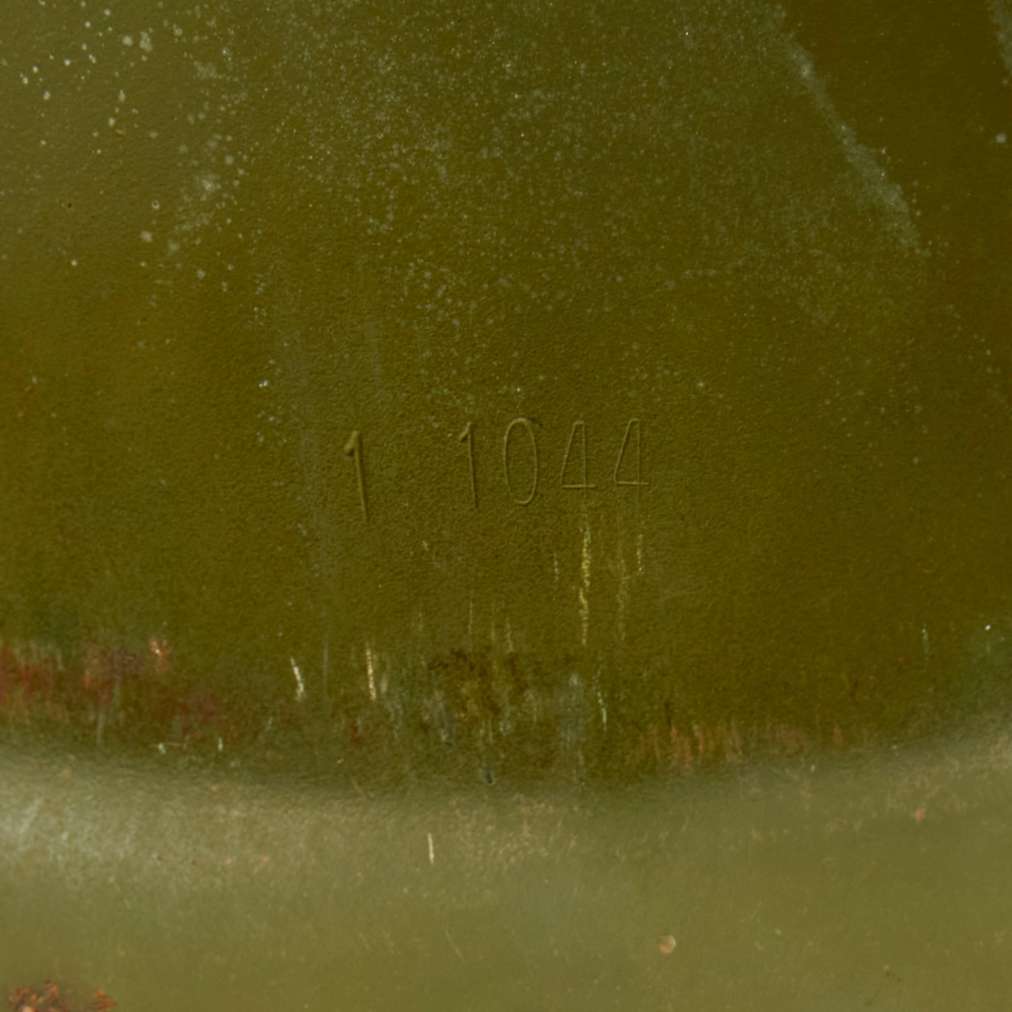 The helmet's heat lot code is visible, which appears to be I 1044, which indicates manufacture by Ingersoll Rand Products, who produced a total of 3,174,296 helmet shells between 1965-1968 during the Vietnam Period.
