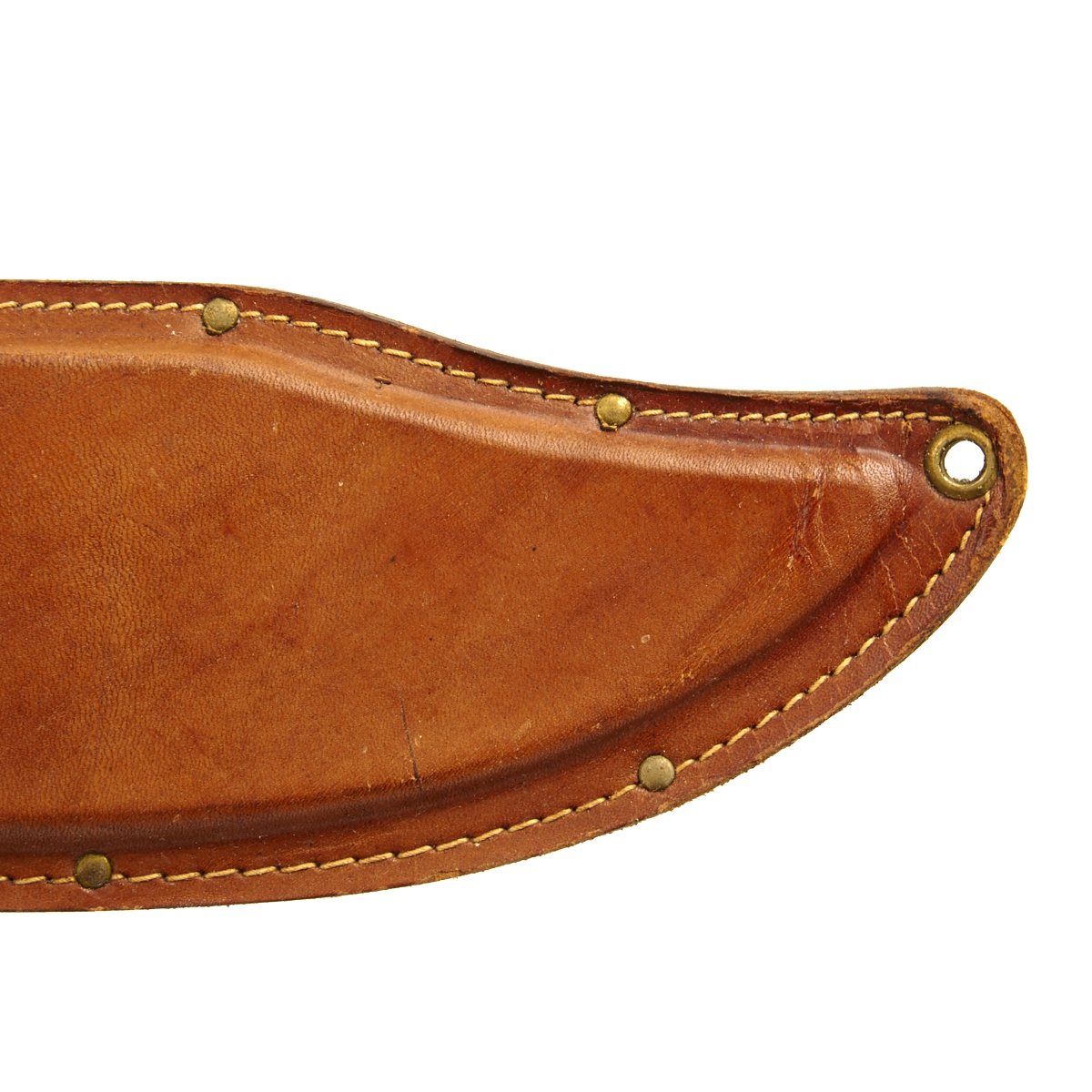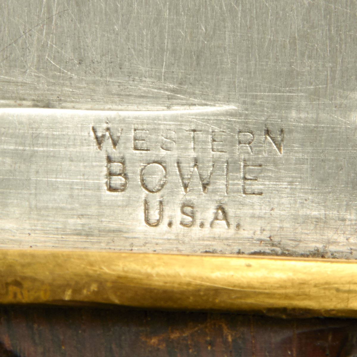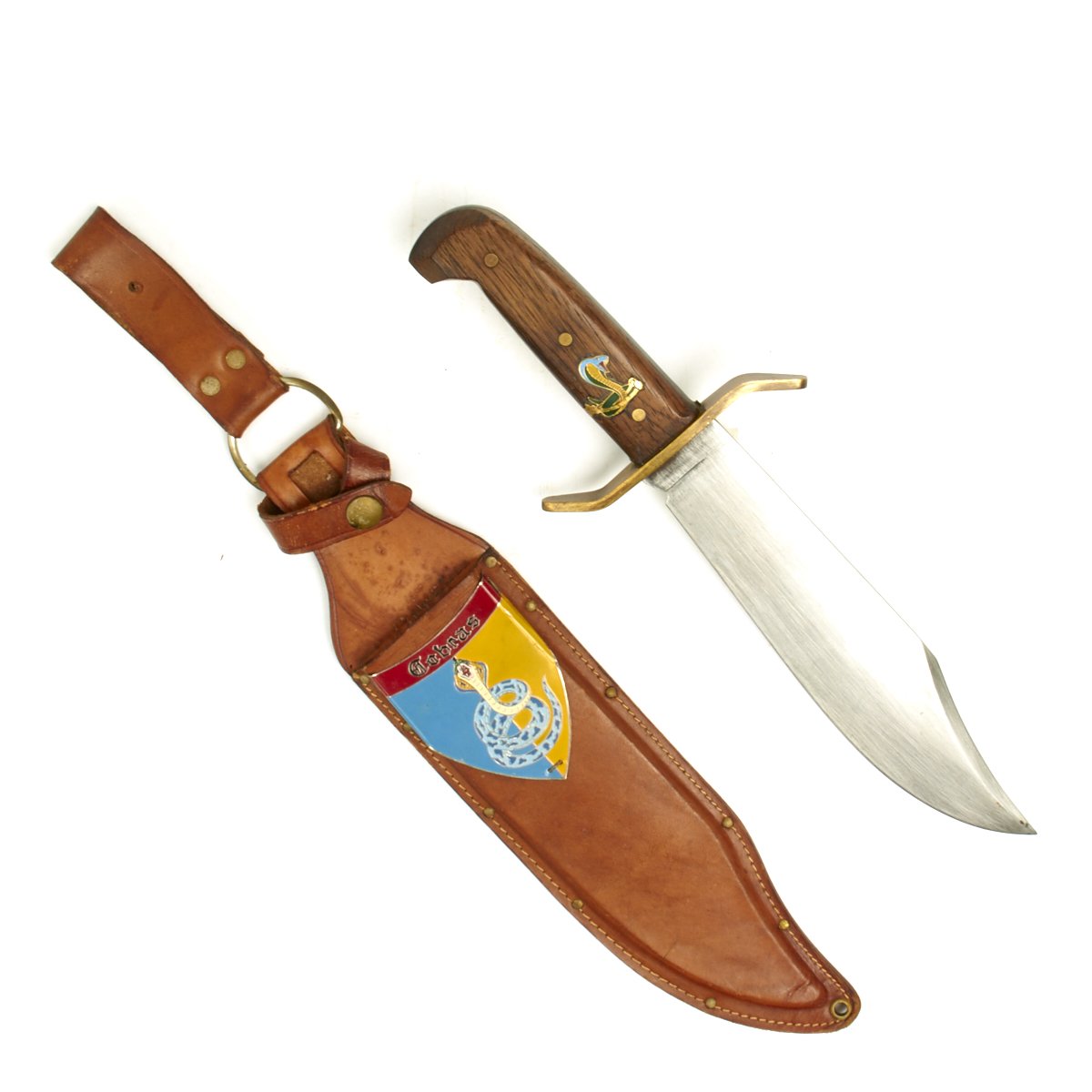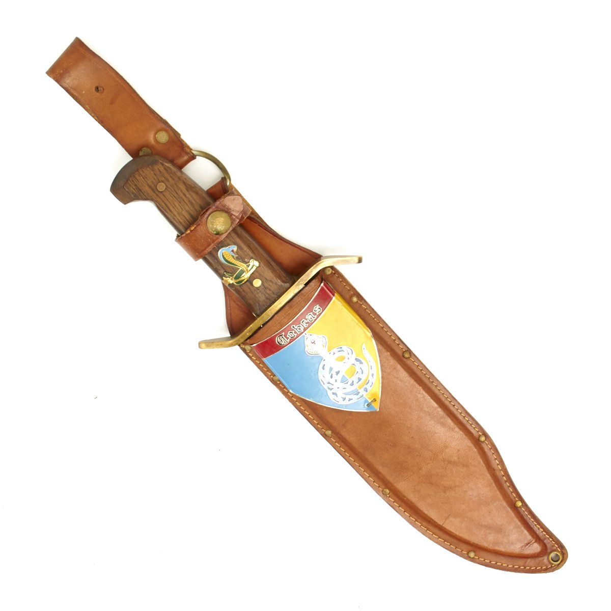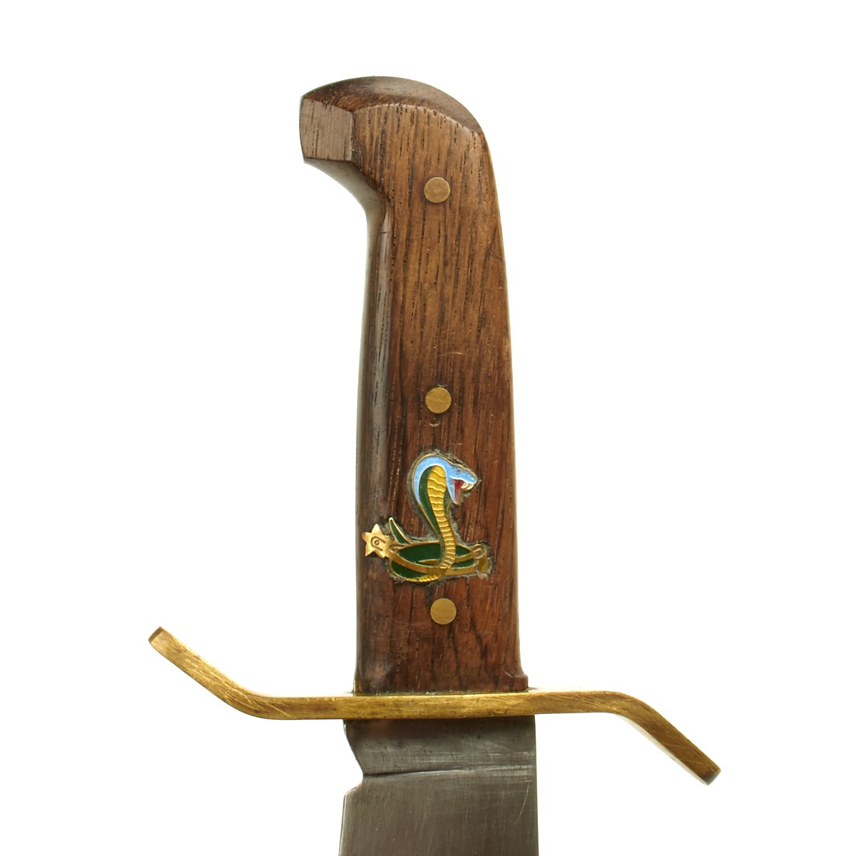 Original Western Bowie USA knife with COBRA with brass enamel insignia embedded in grip. 9.25 blade, 14.5 overall length.