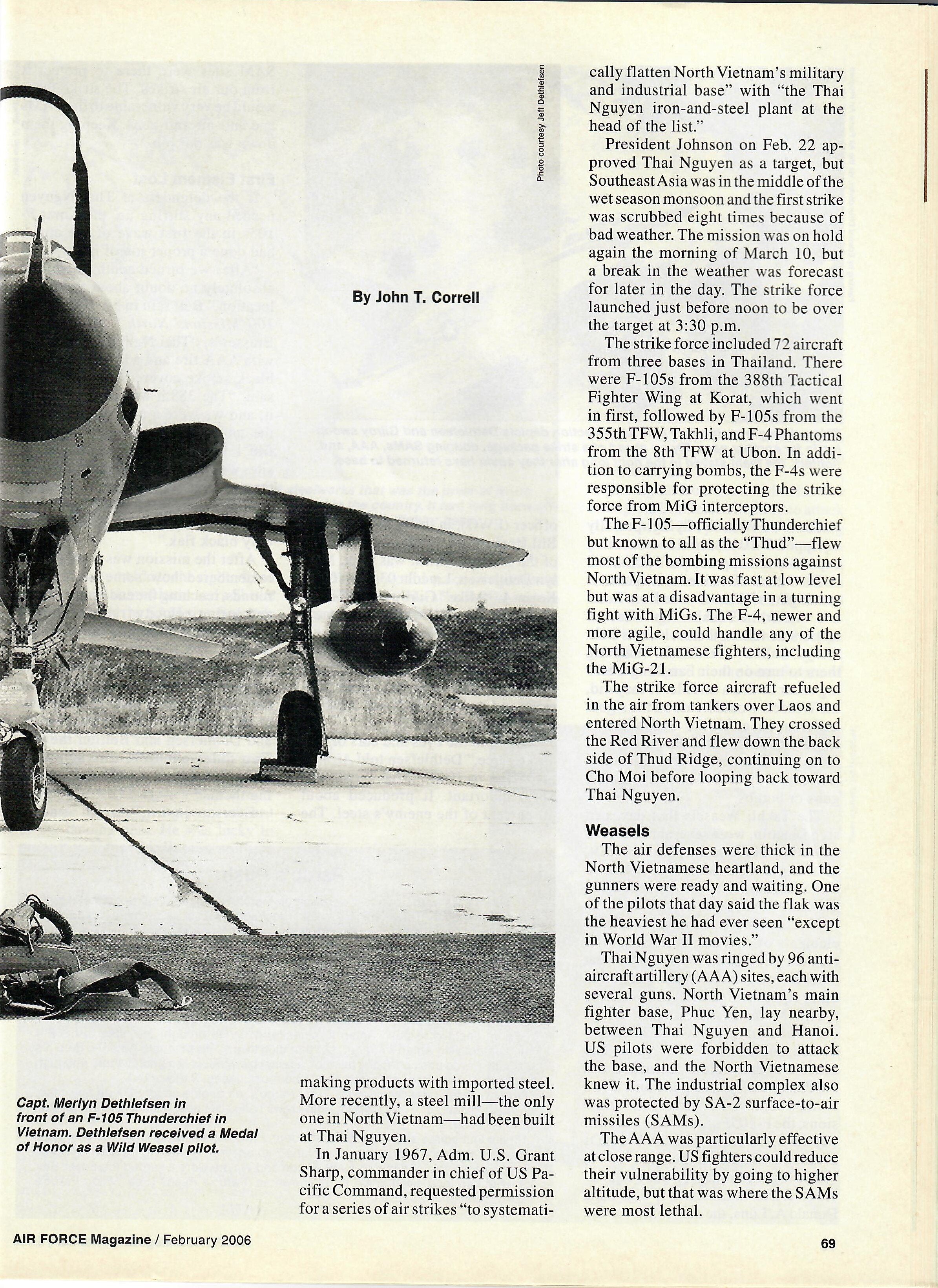 Their target was the area around the Thai Nguyen Steel Plant, a heavily defended industrial complex about 50 miles north of Hanoi in North Vietnam. The plant was important to the North Vietnamese war effort and had just been approved as a U.S. target.