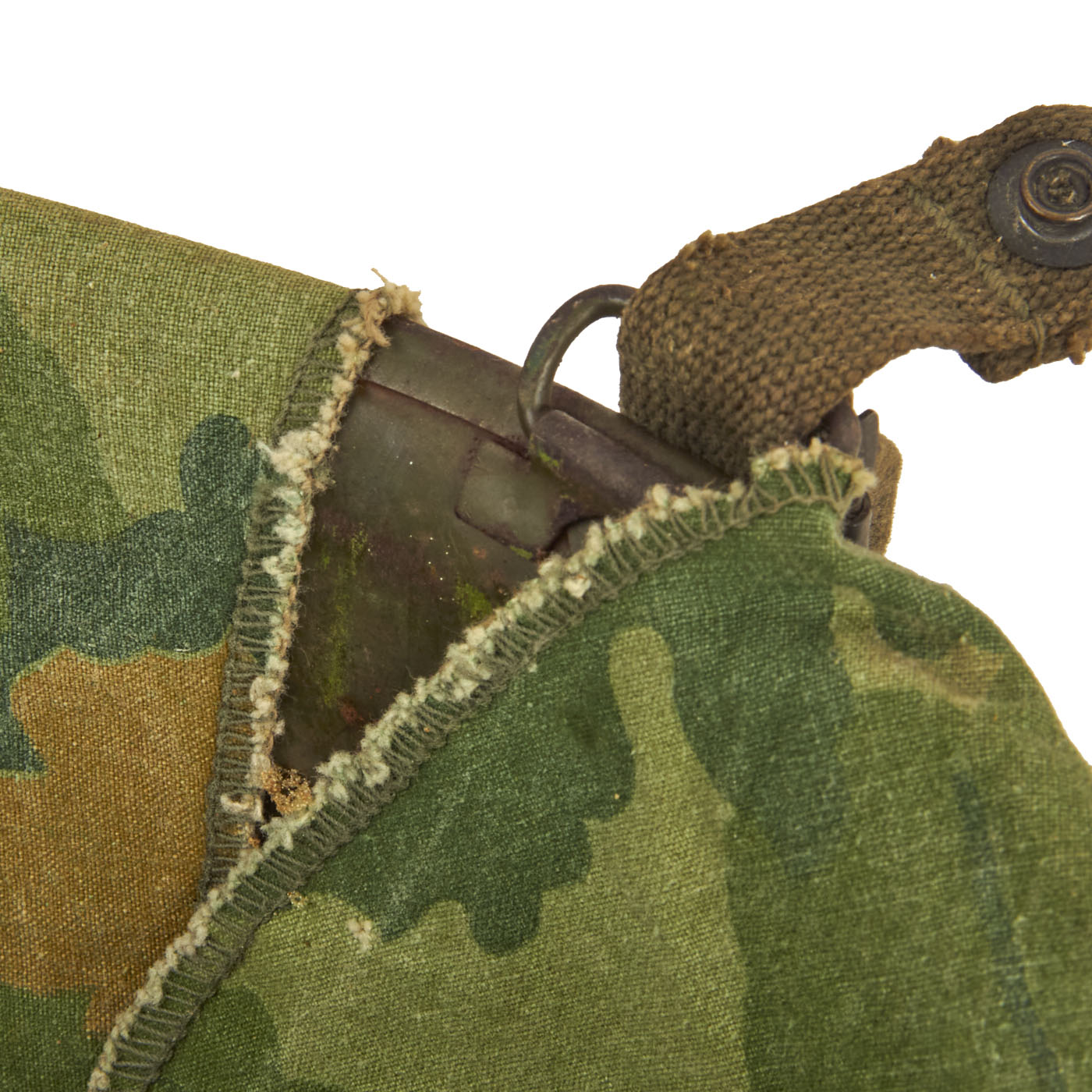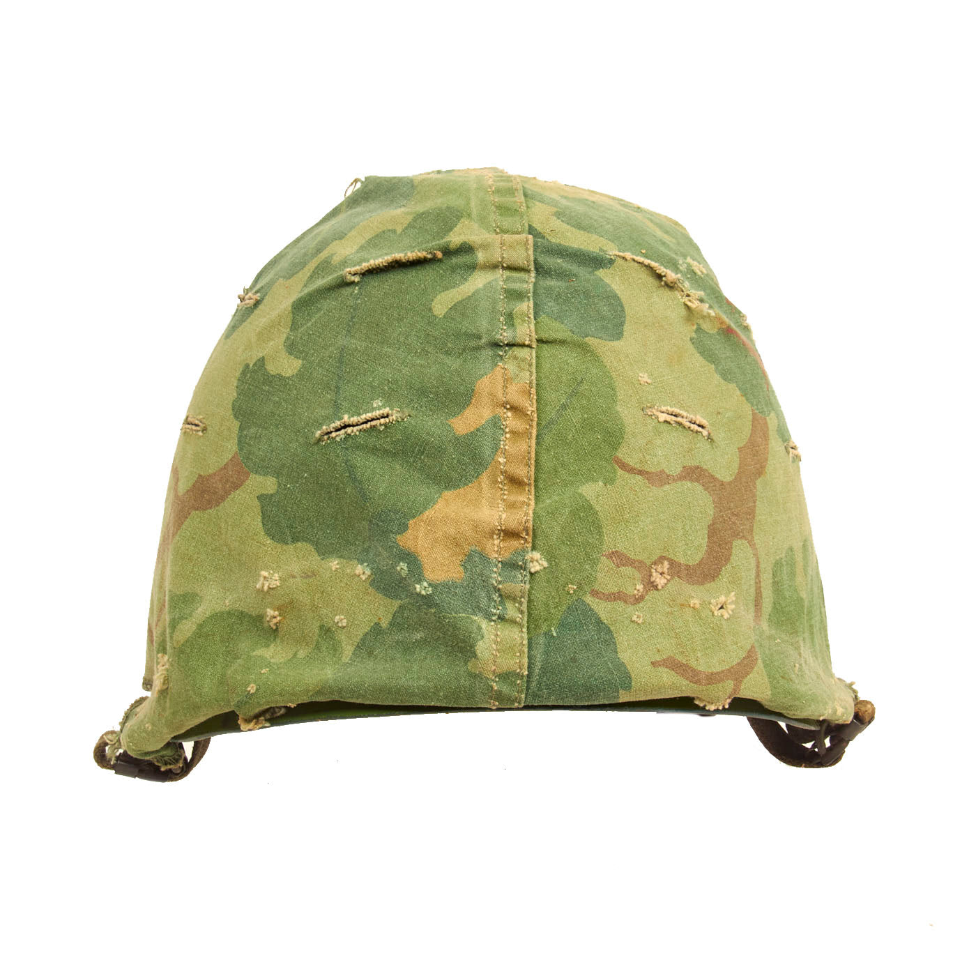 Vietnam War era M-1 helmet shells have a set of swivel (movable) chinstrap loops called bales and a manganese steel rim. These rims had non-magnetic qualities that reduced the chance of error readings when placed around certain sensitive equipment (such as a compass). In WWII the shells had Stainless Steel rims, however these would easily lose paint, and the shine produced without paint was a liability., needless to say.