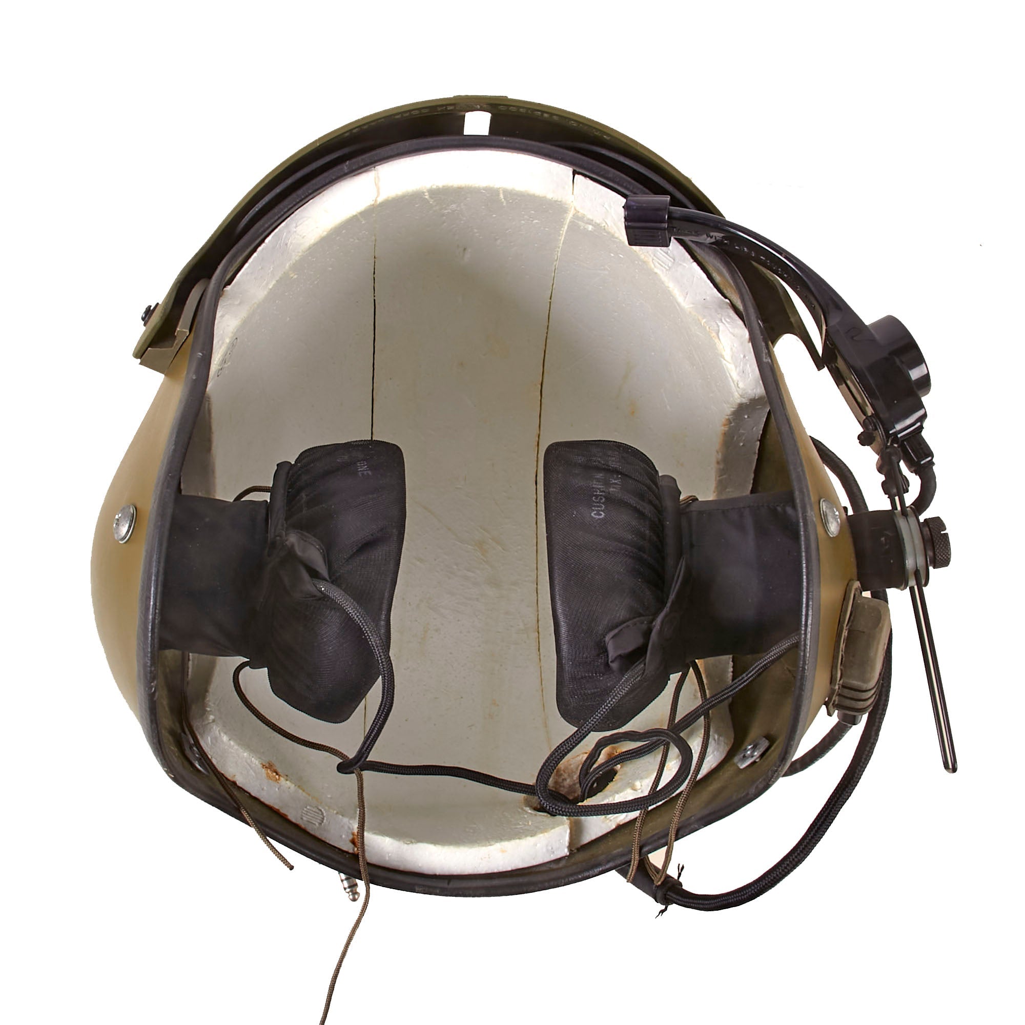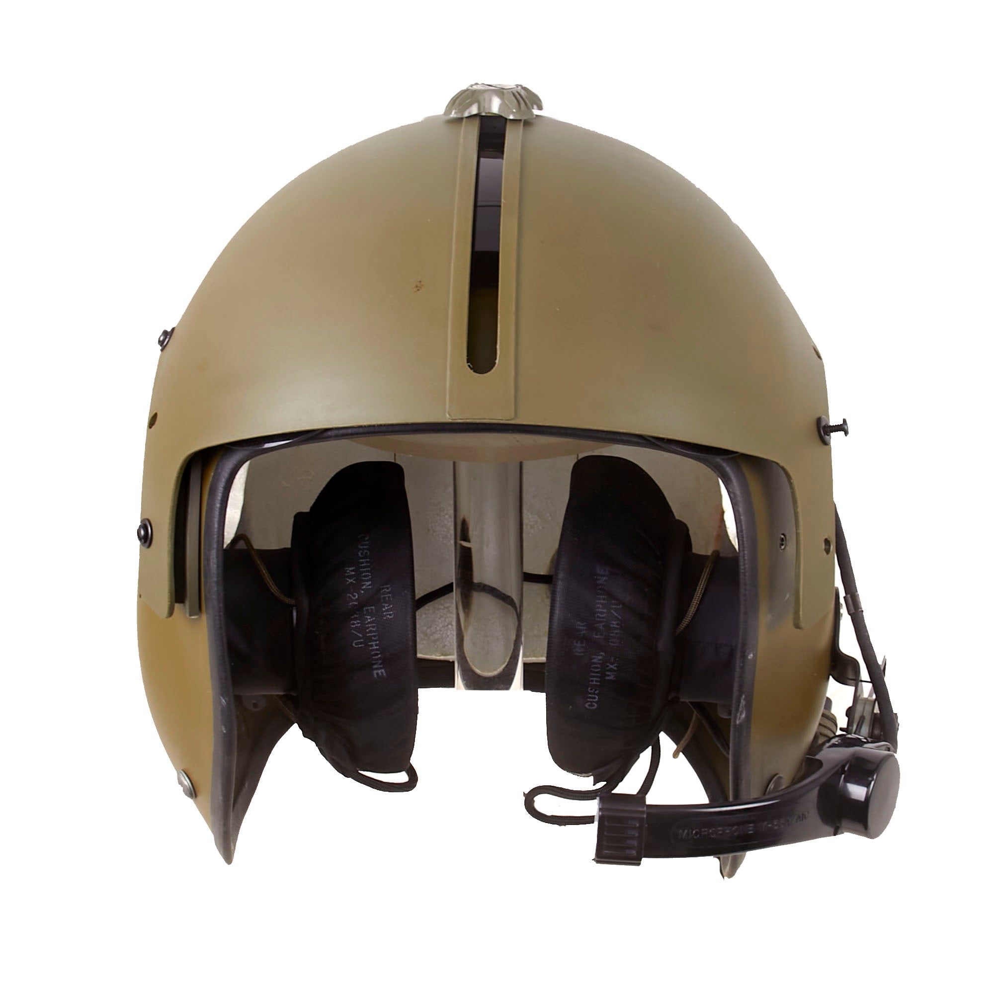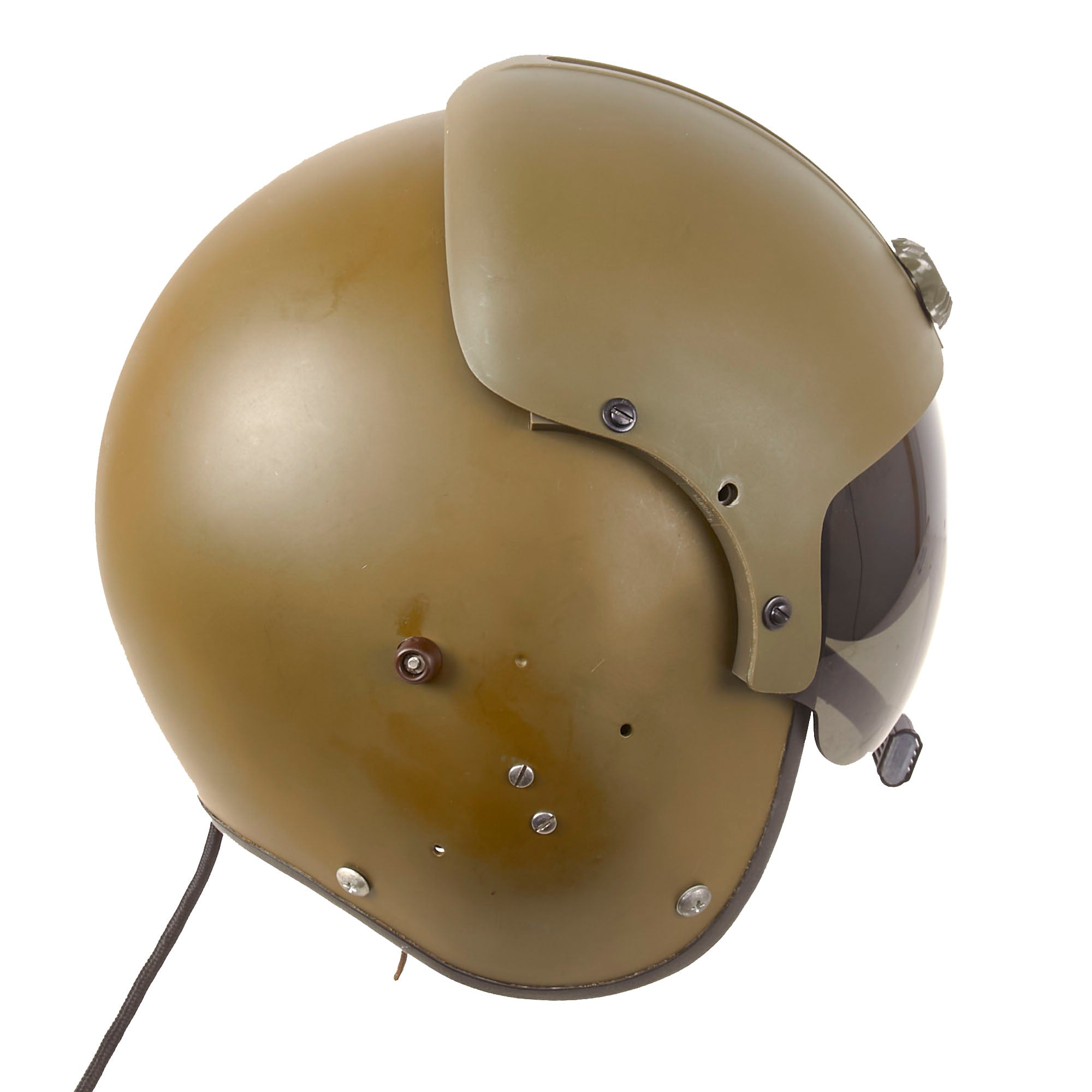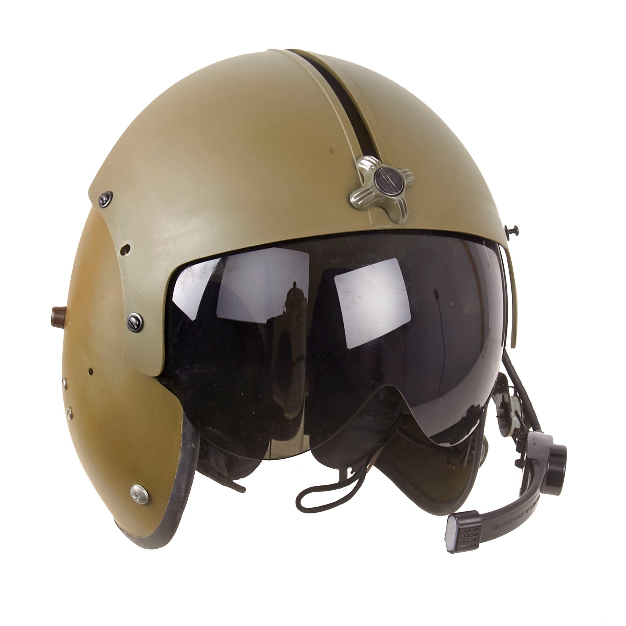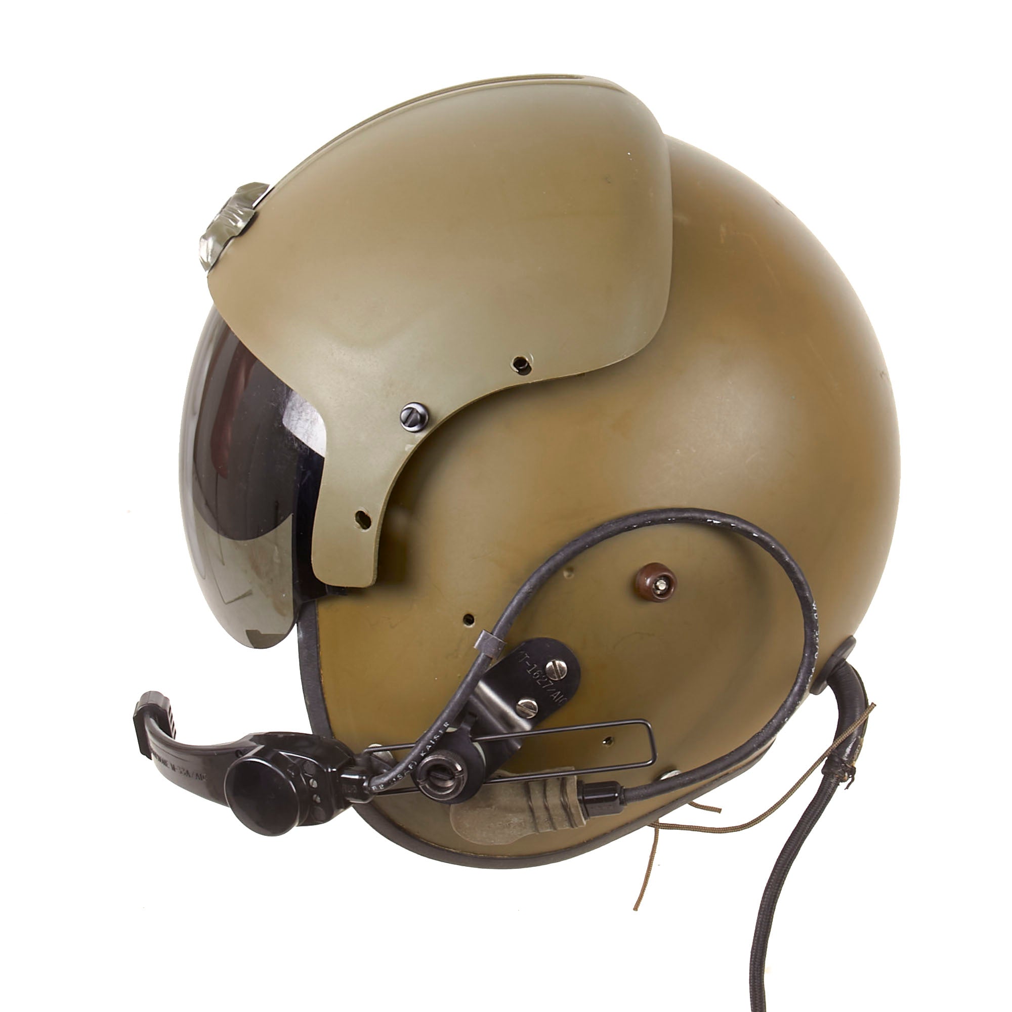 Original Item: Only One Available. This is a great unissued example of a Vietnam War APH-5 Flying Helmet, as used by all branches of service during the Vietnam War. This Helmet appears to be incomplete as all straps are missing and still with the original factory finish. Has a functional tinted visor as well as boom mic and ear padding. Size is a LARGE.
