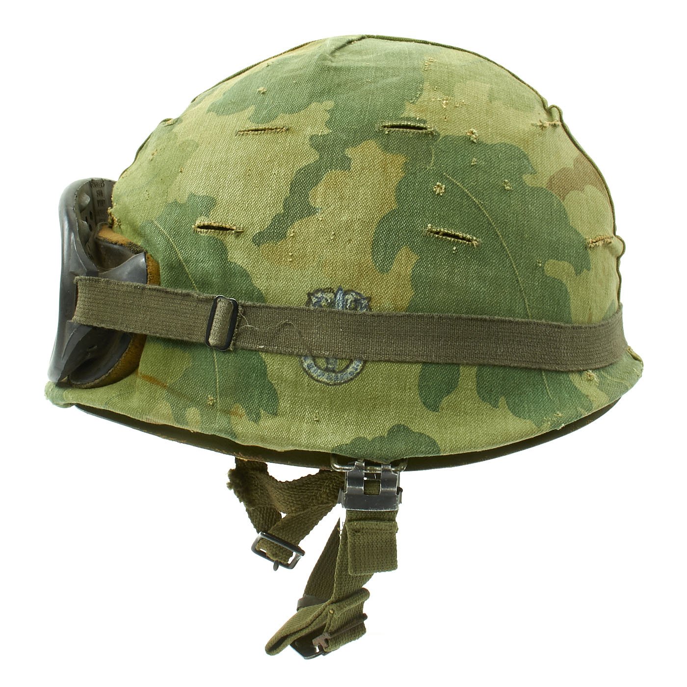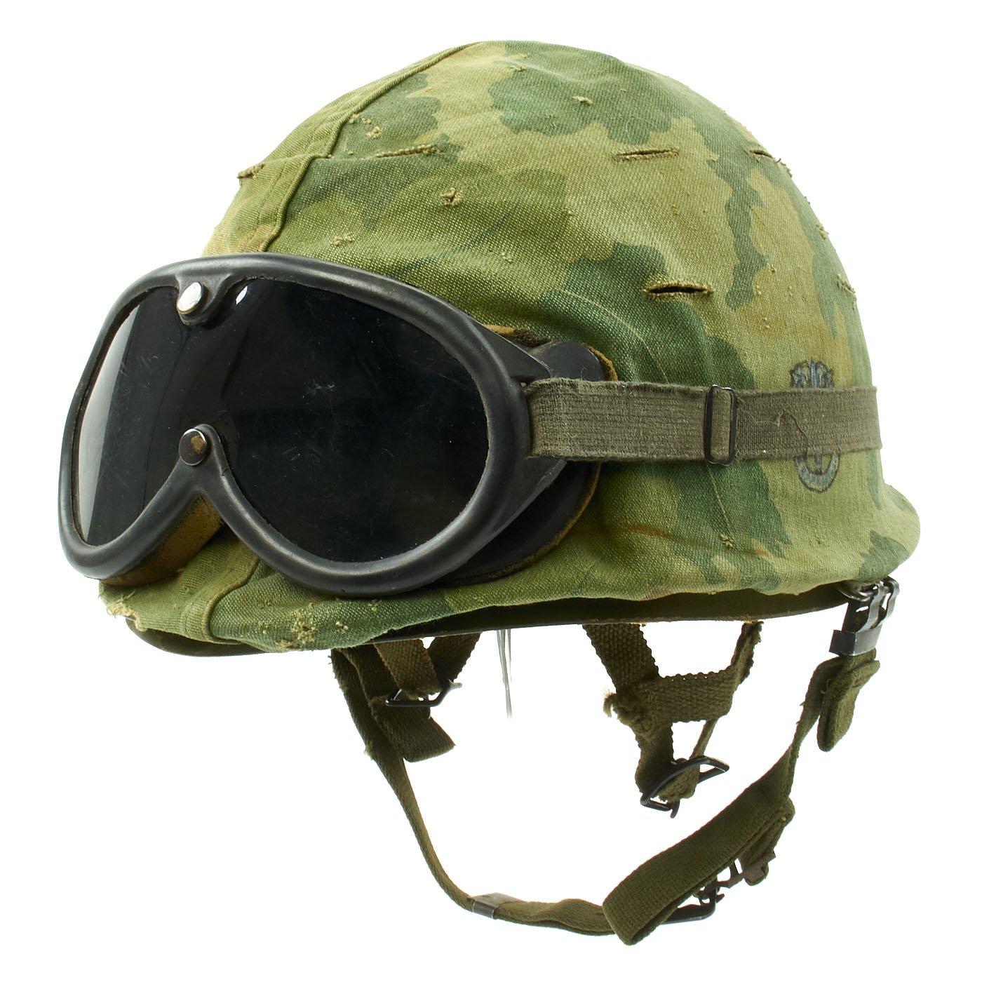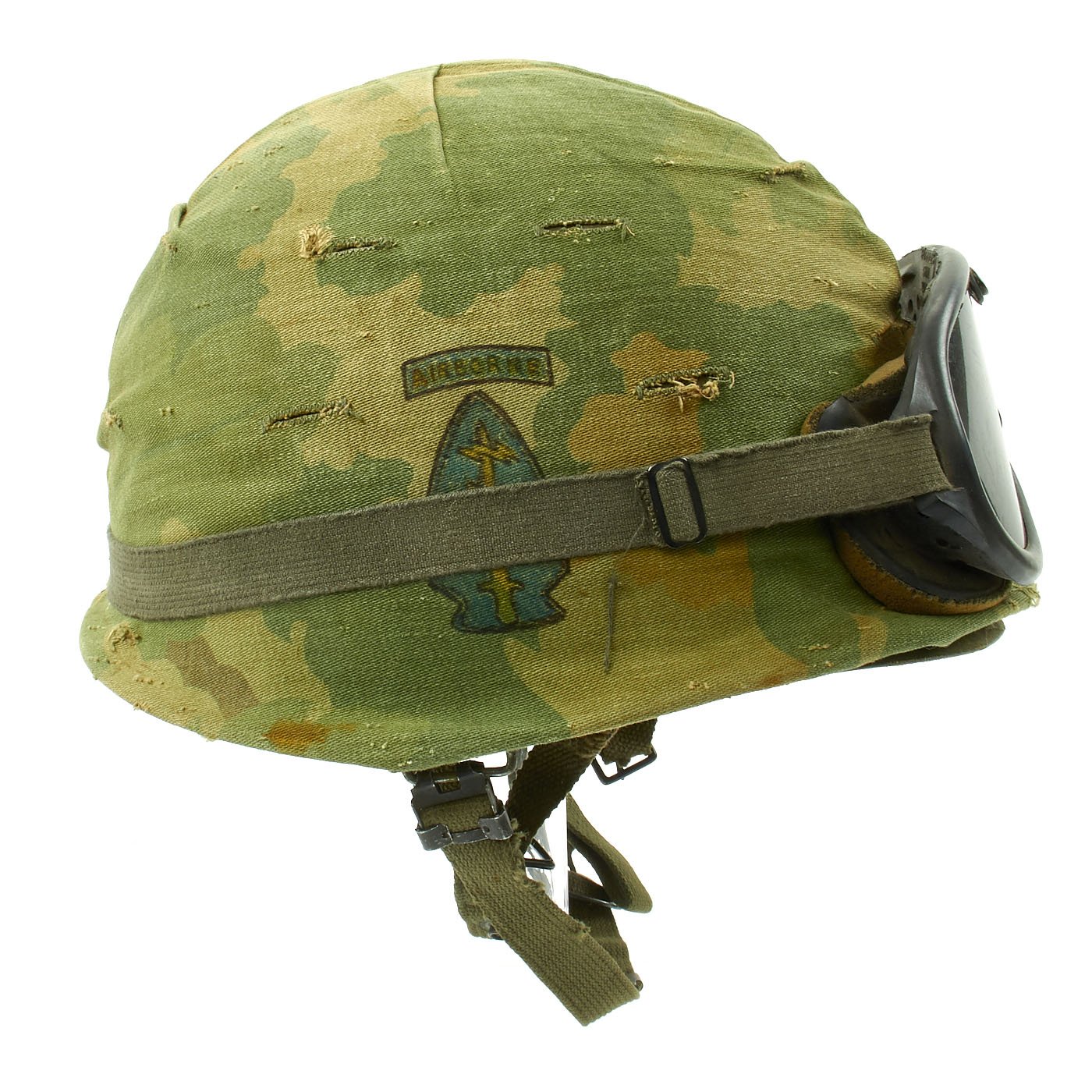 Original Item: Only One Available. The M1 helmet is a combat helmet that was used by the United States military from World War II until 1985, when it was succeeded by the PASGT helmet. For over forty years, the M1 was standard issue for the U.S. military. The M1 helmet has become an icon of the American military, with its design inspiring other militaries around the world. Many were also supplied to U.S. allies during the 50 years following WWII. This example is marked on the right side with the U.S. Army 1st Special Forces Command (Airborne) insignia, and on the left side with the Special Forces Distinctive Unit Insignia. The special forces were very active during the Vietnam war, however they were not a large group, so all of the items they used are quite rare.