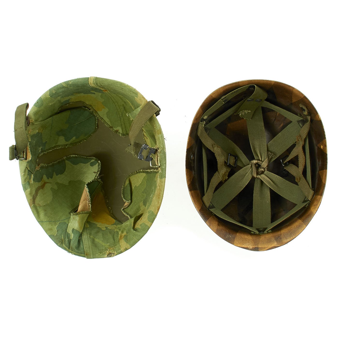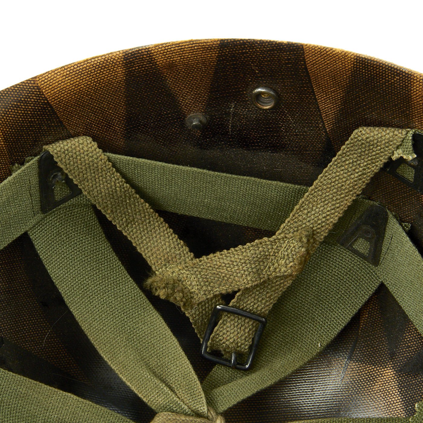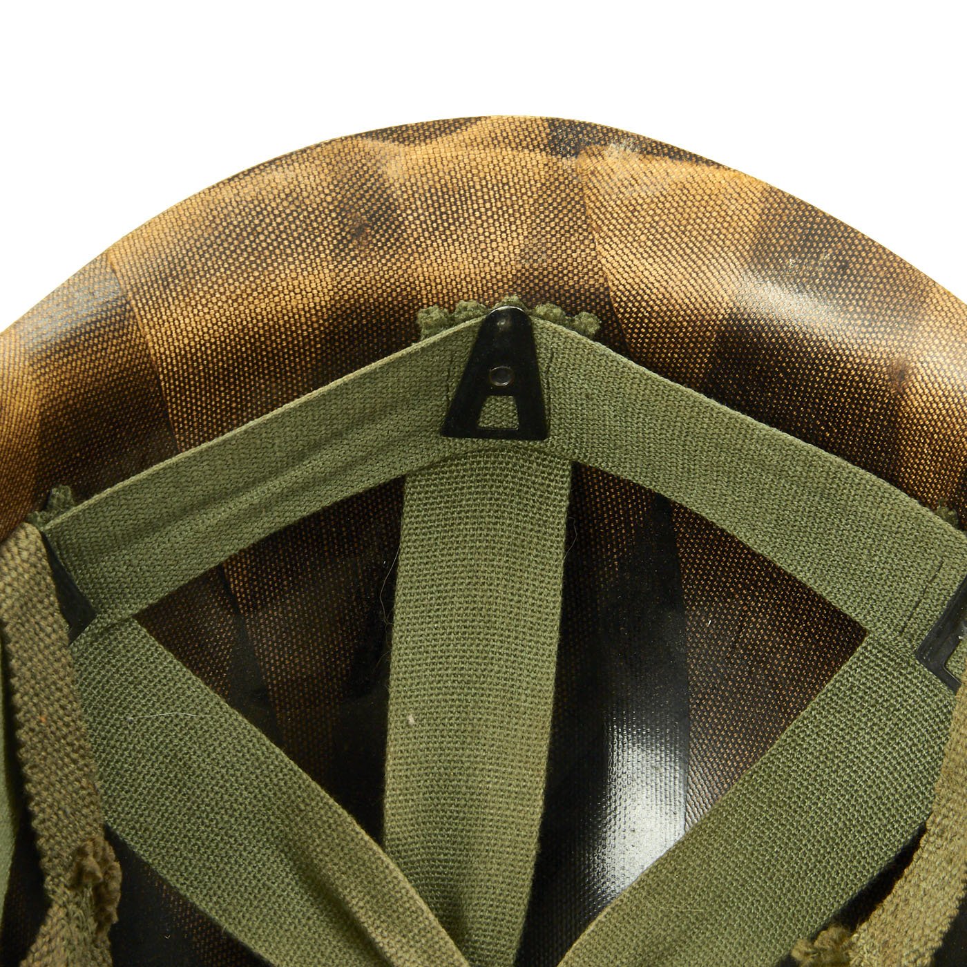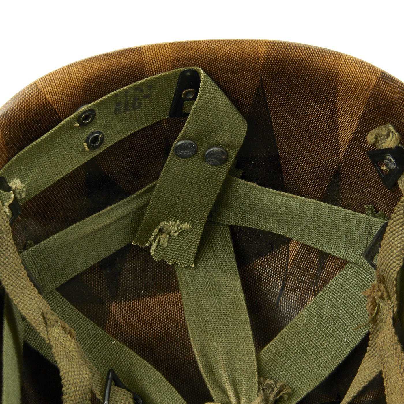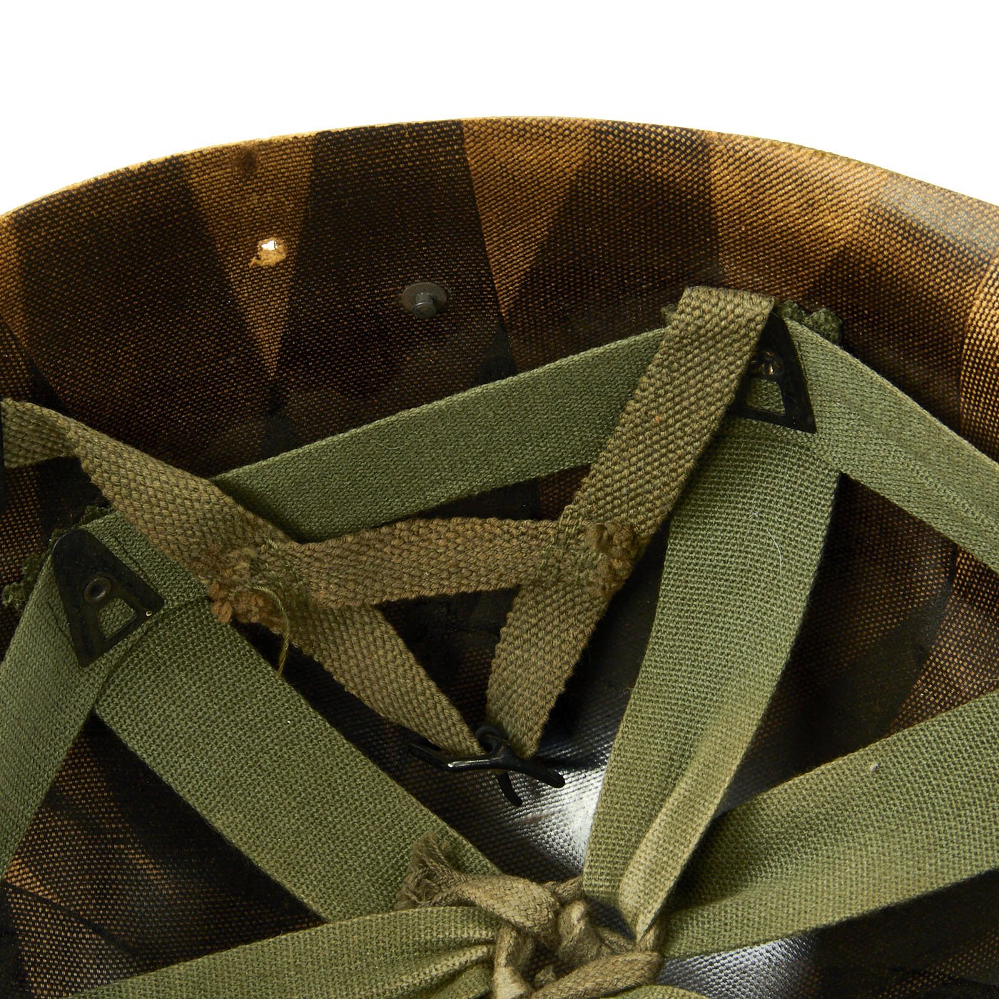 These shells were for the most part identical to late war manufactured helmets, and the only real way to identify them is with the heat lot code. The code on this helmet looks to be 1235 A, though it is not entirely clear. This could be a very late WWII issue shell, reissued for use in Vietnam, but without removing the interior paint, it would be impossible to tell.