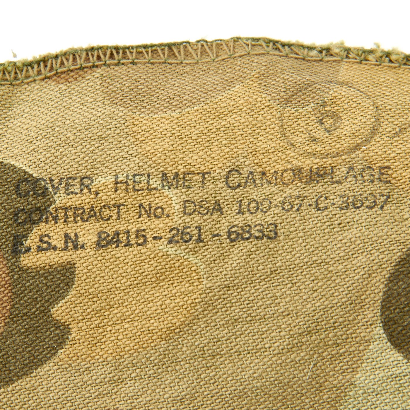 The camouflage cover is original and in very good condition. It has some stains and small holes around the edge, but is definitely solid, with the expected wear from use. It is marked on the underside of one of the flaps with the contract information: