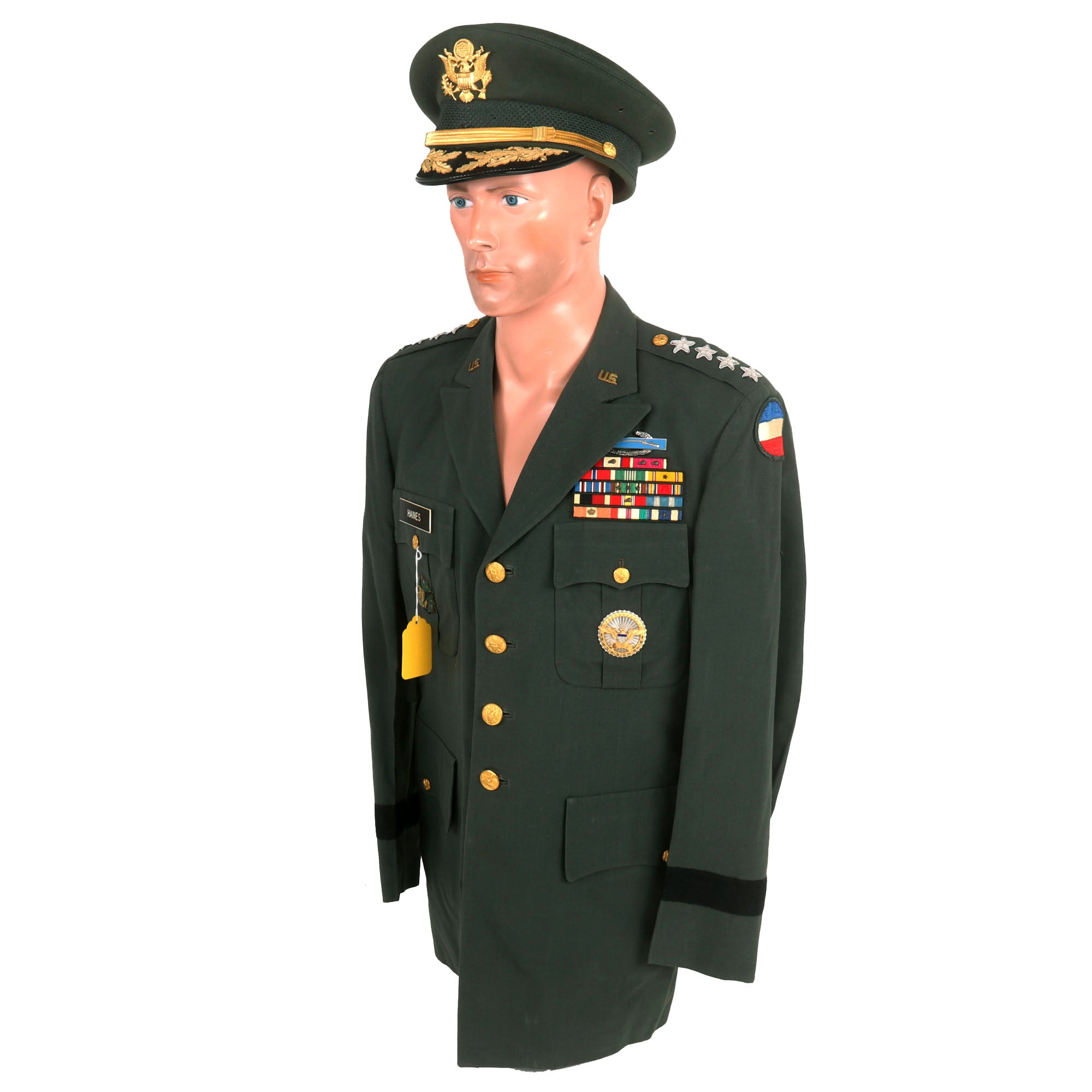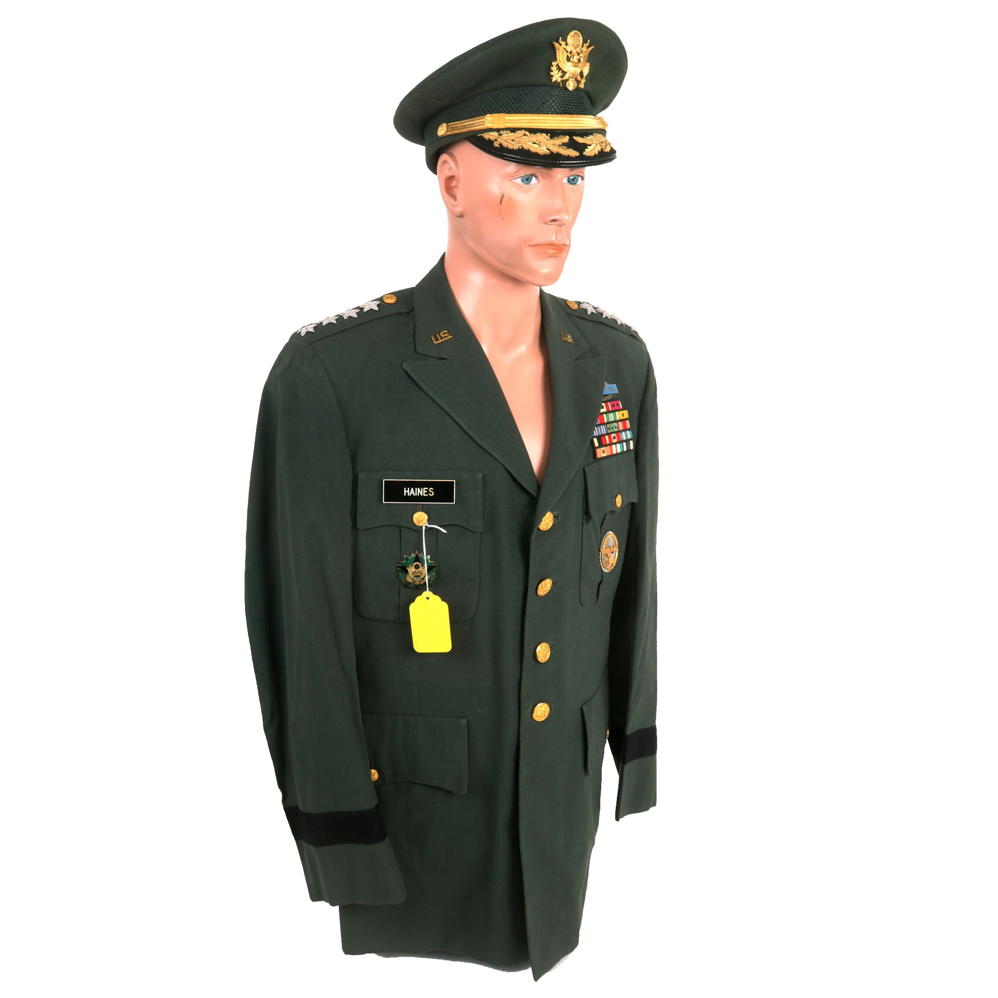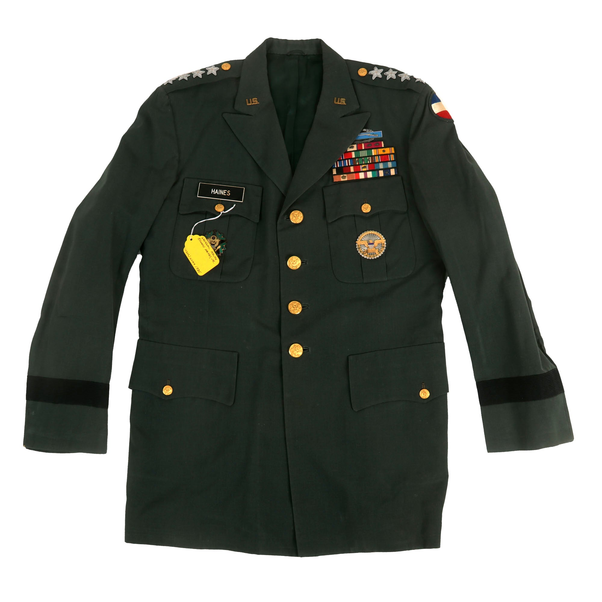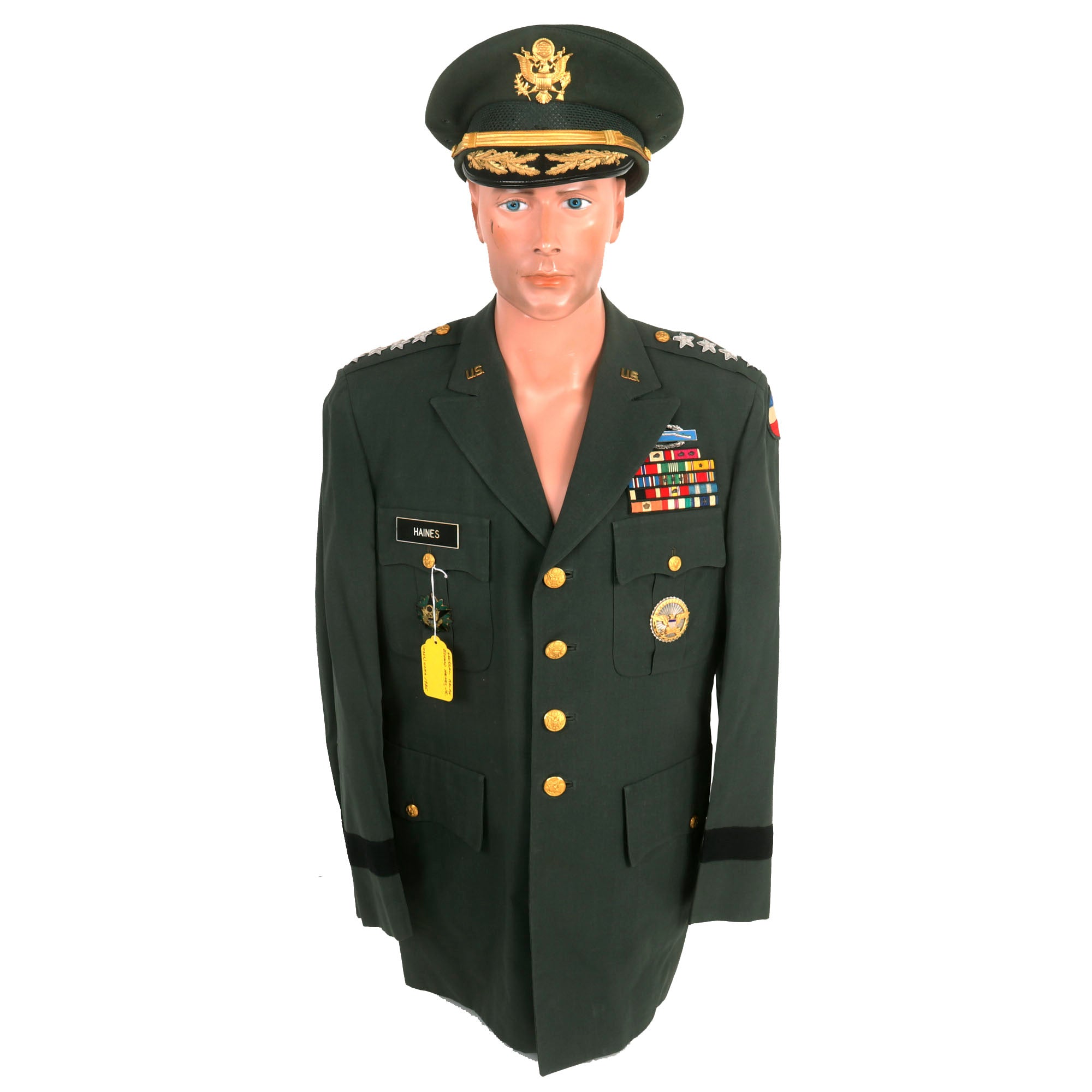 Original Items: Only One Set Available. This uniform set is of great historical significance. Despite appearing to be a standard General's Class-A uniform set, there are a few distinctive features that set it apart from others. The uniform belonged to Ralph E. Haines Jr. The uniform itself is in excellent condition and boasts impressive bullion direct-embroidered General's stars, making it truly stand out.