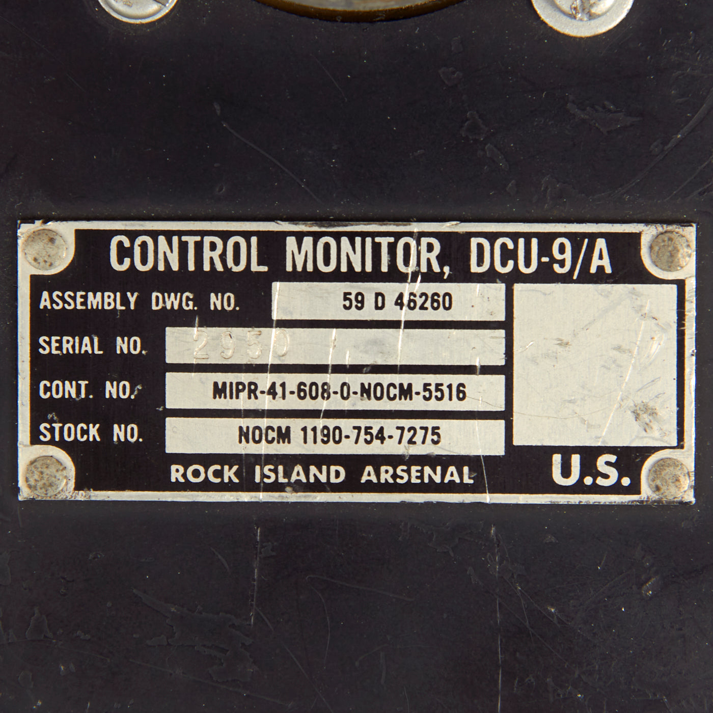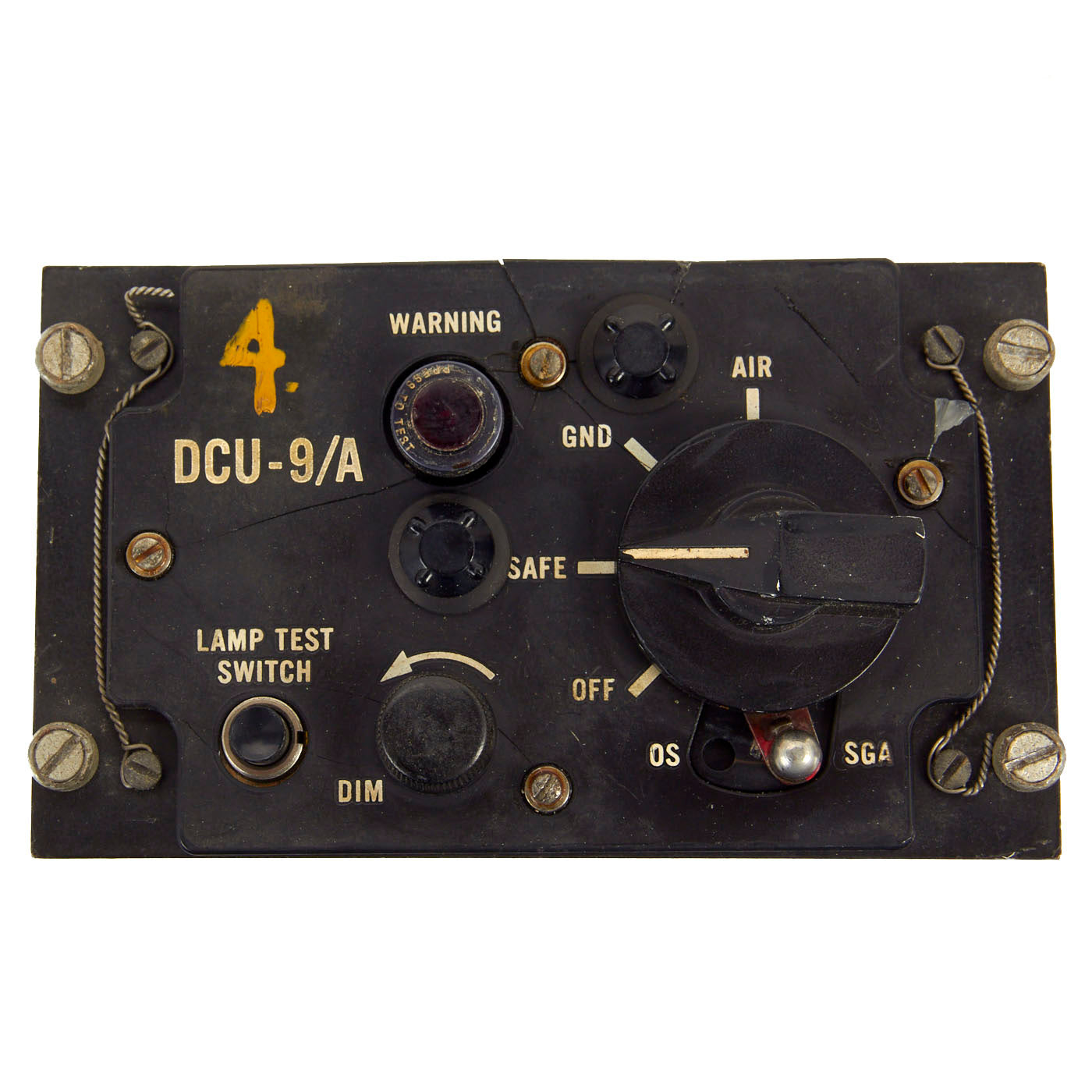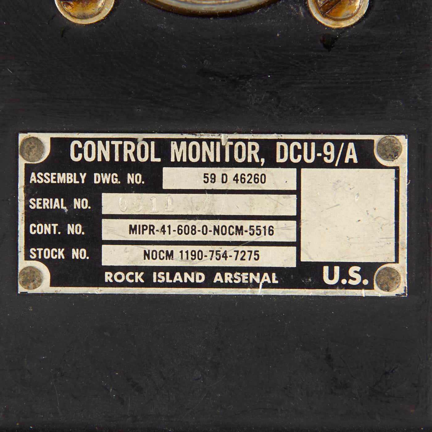 Original Items: Only One Group of 2 Available. This is a wonderful pair of identical Control Monitors manufactured by Rock Island Arsenal. The DCU-9/A controls and monitors the forward bomb bay and is used on all “test vehicles”. The DCU-9/A contains a Rotary Selector Switch and has the positions SAFE, GND, AIR and OFF, a Control Arm having the positions OS and SGA, a Warning Light, a Test Light, a Test Switch, a Dim COntrol and a Holding Relay. The DCU-9/A was located at the navigator’s station in the aircraft. In the B-52B and D aircraft used in these tests, the DCU-9/A is located at the weaponeer’s station because of test mission requirements. The DCU-9/A and its associated circuits are not affected by the special instrumentation installed in the aircraft for test drops.