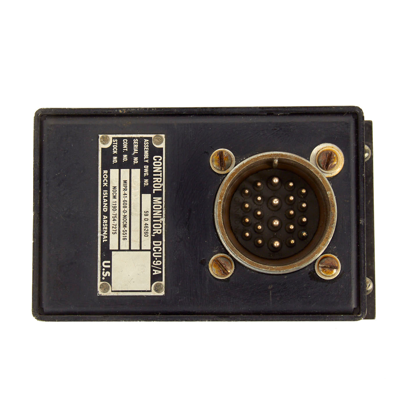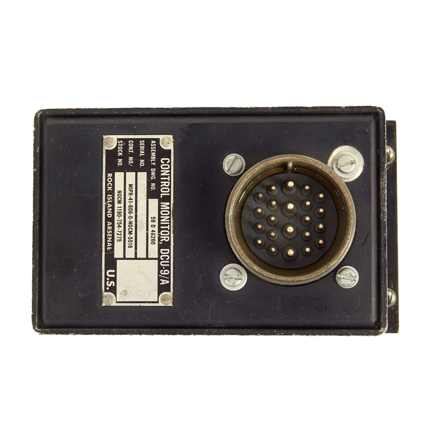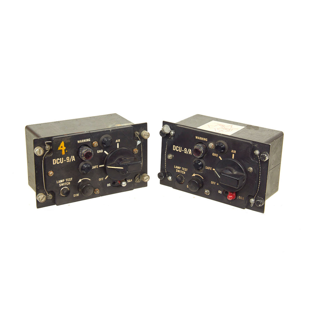 Original Items: Only One Group of 2 Available. This is a wonderful pair of identical Control Monitors manufactured by Rock Island Arsenal. The DCU-9/A controls and monitors the forward bomb bay and is used on all “test vehicles”. The DCU-9/A contains a Rotary Selector Switch and has the positions SAFE, GND, AIR and OFF, a Control Arm having the positions OS and SGA, a Warning Light, a Test Light, a Test Switch, a Dim COntrol and a Holding Relay. The DCU-9/A was located at the navigator’s station in the aircraft. In the B-52B and D aircraft used in these tests, the DCU-9/A is located at the weaponeer’s station because of test mission requirements. The DCU-9/A and its associated circuits are not affected by the special instrumentation installed in the aircraft for test drops.