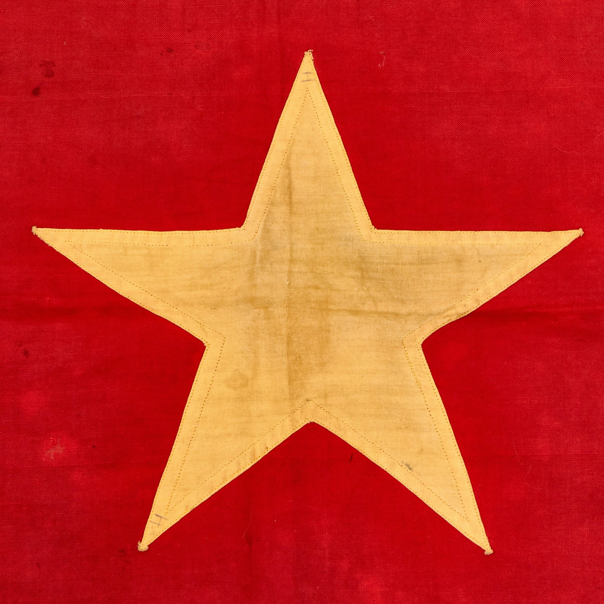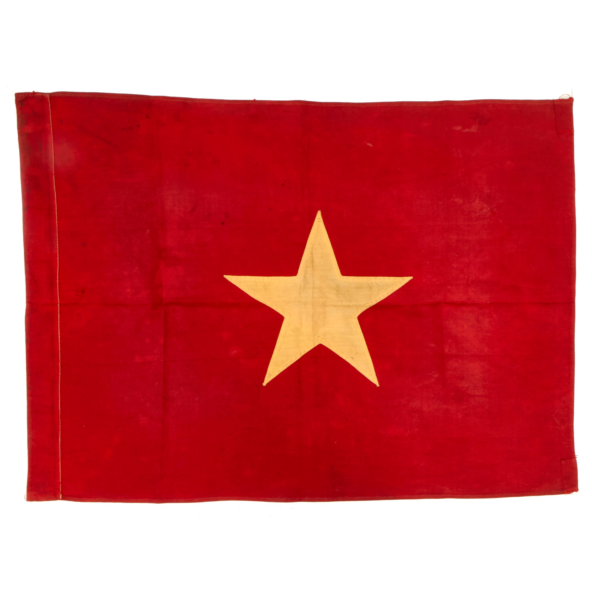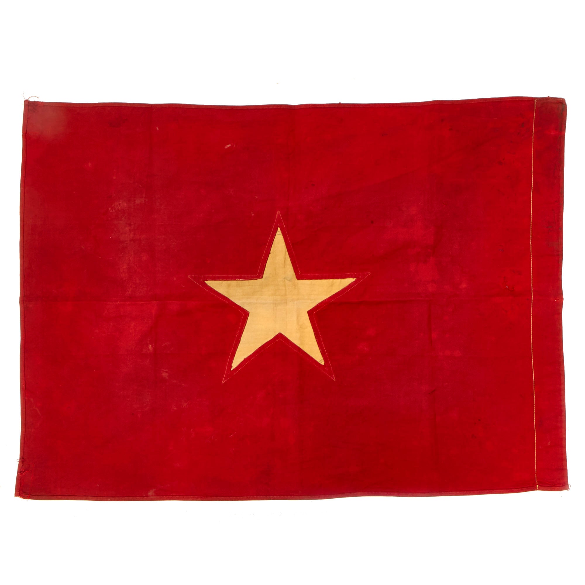 Original Item: Only One Available. This is a fantastic example of a multi-piece constructed NVA flag, brought home by an American soldier after his rotation in country. The flag itself has a beautiful, worn “combat” flown appearance, with all the proper signs of having “been there”.