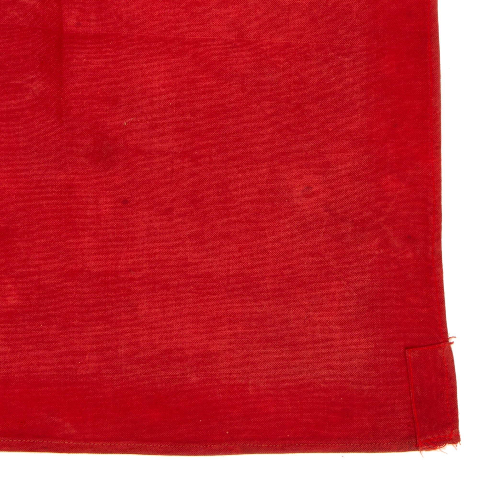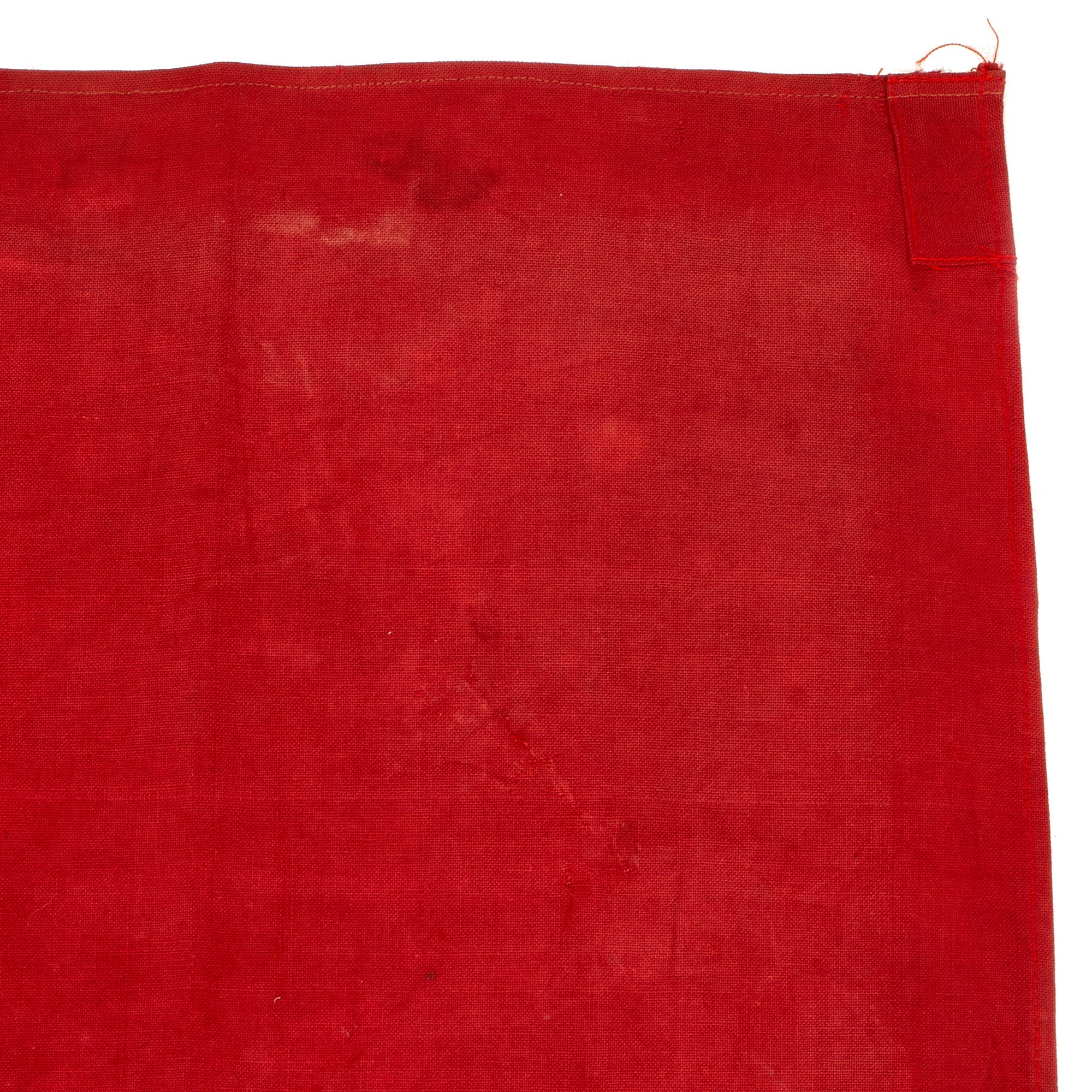 The flag measures 22” x 30” and is all red with a white star sewn into the center. The left side had a pocket for hoist and mounting purposes. The flag shows no signs of significant damage but there is fading to the colors.