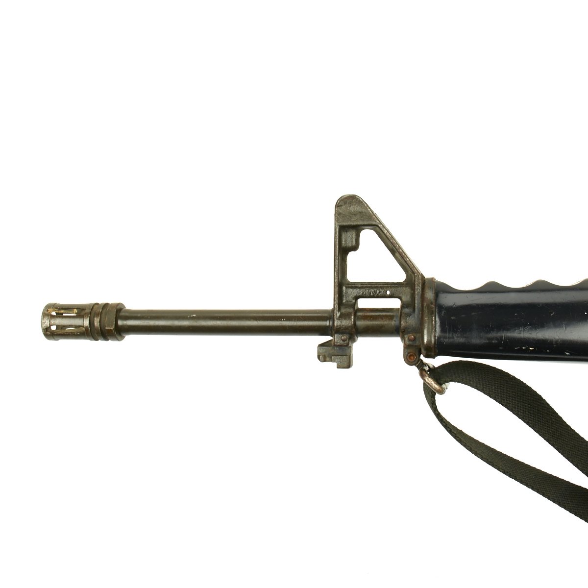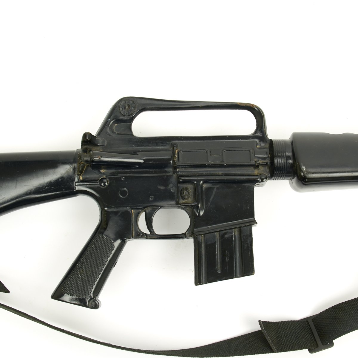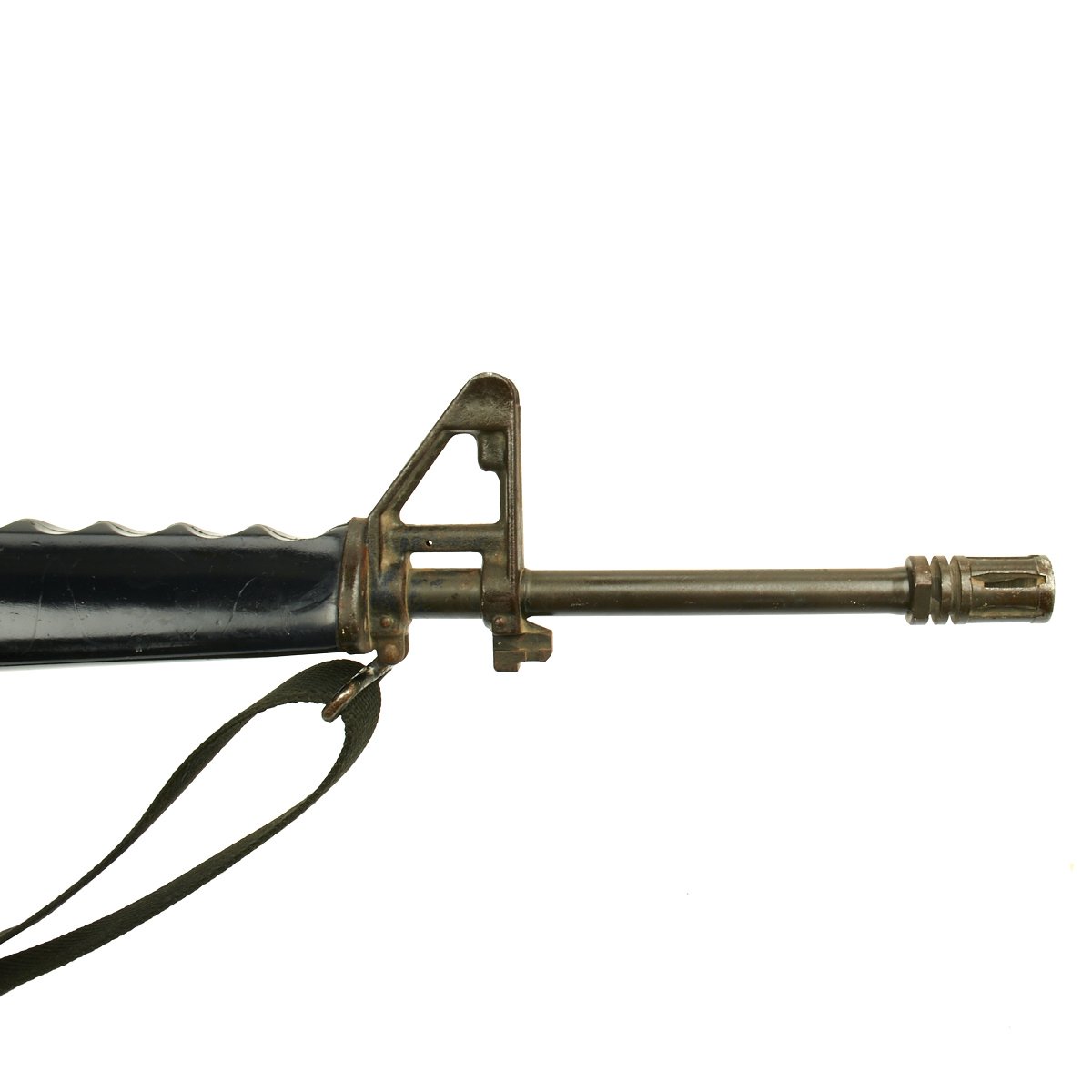 Original Item: Only One Available. Colt M16A1 Military issue non-functional RUBBER DUCK training and parade rifle. Features genuine M16 metal barrel, flash guard ,front sight, sling swivels, upper sight handle and all coated in rubber with resin construction.