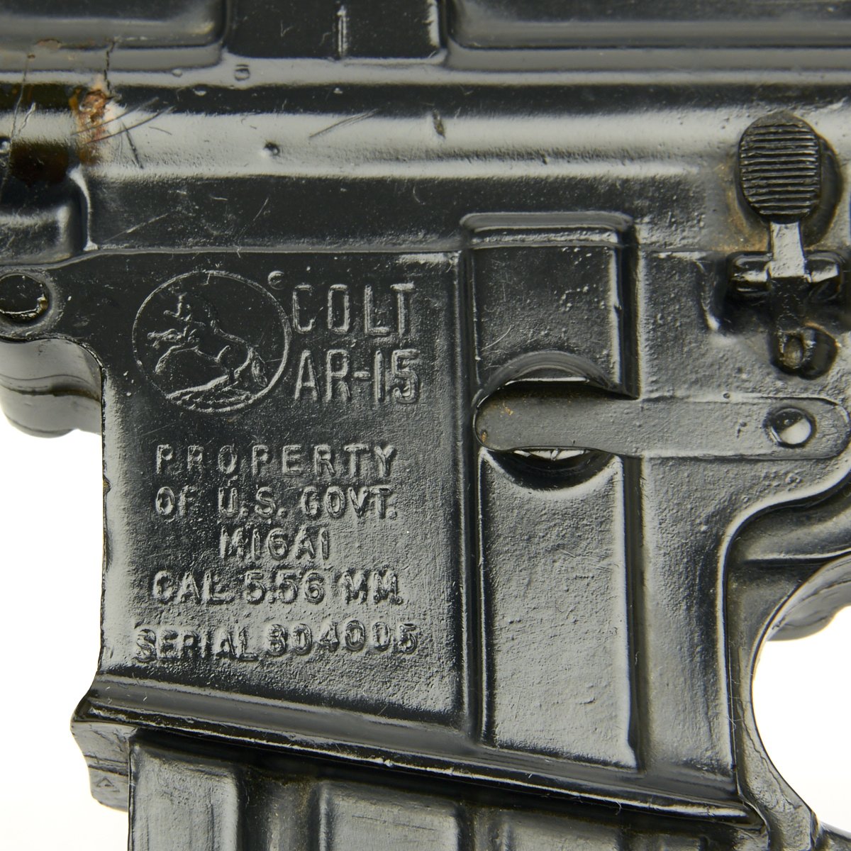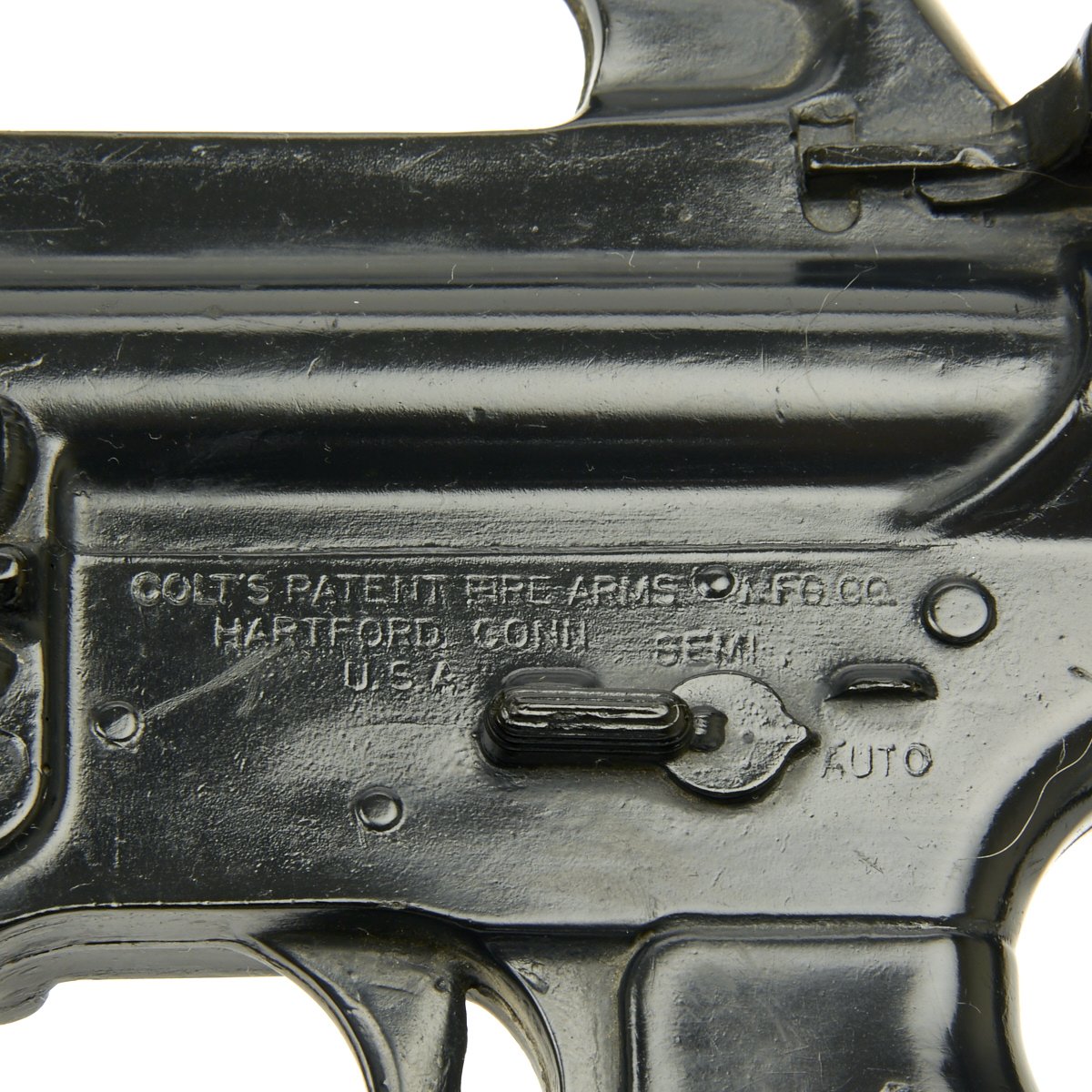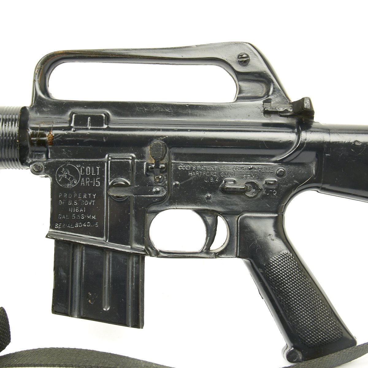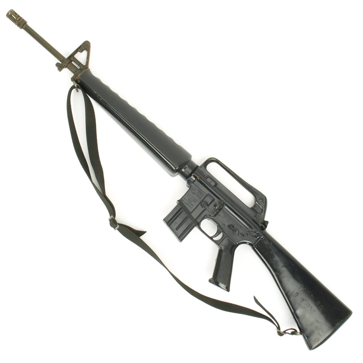 Original Item: Only One Available. Colt M16A1 Military issue non-functional RUBBER DUCK training and parade rifle. Features genuine M16 metal barrel, flash guard ,front sight, sling swivels, upper sight handle and all coated in rubber with resin construction.