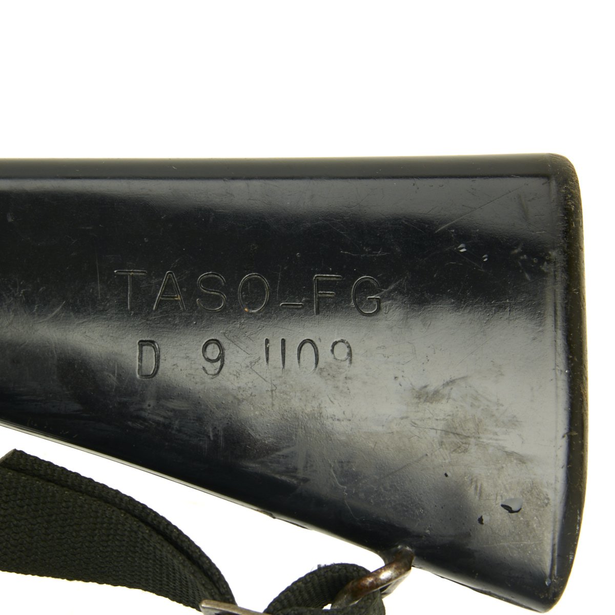 The military calls these rifles Rubber Ducks. This is an actual military issue trainer designed to be the correct weight and size of an M16. They are made from decommissioned M16 parts.