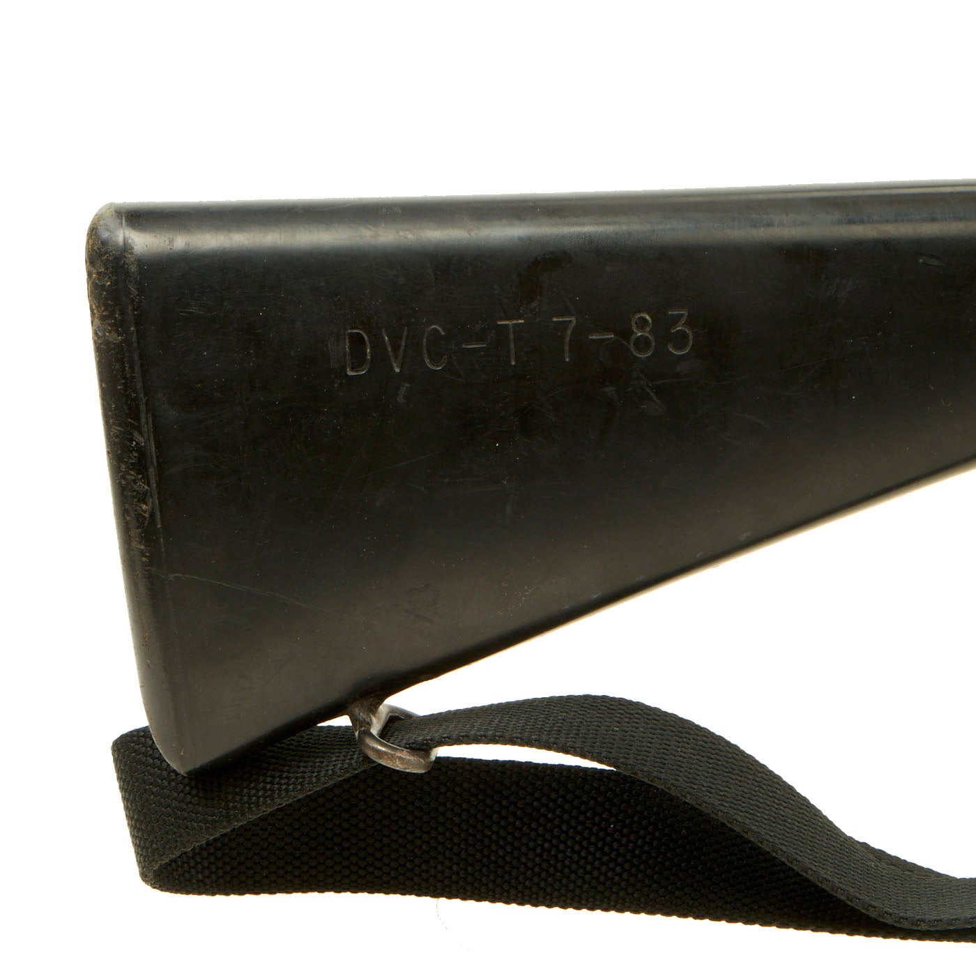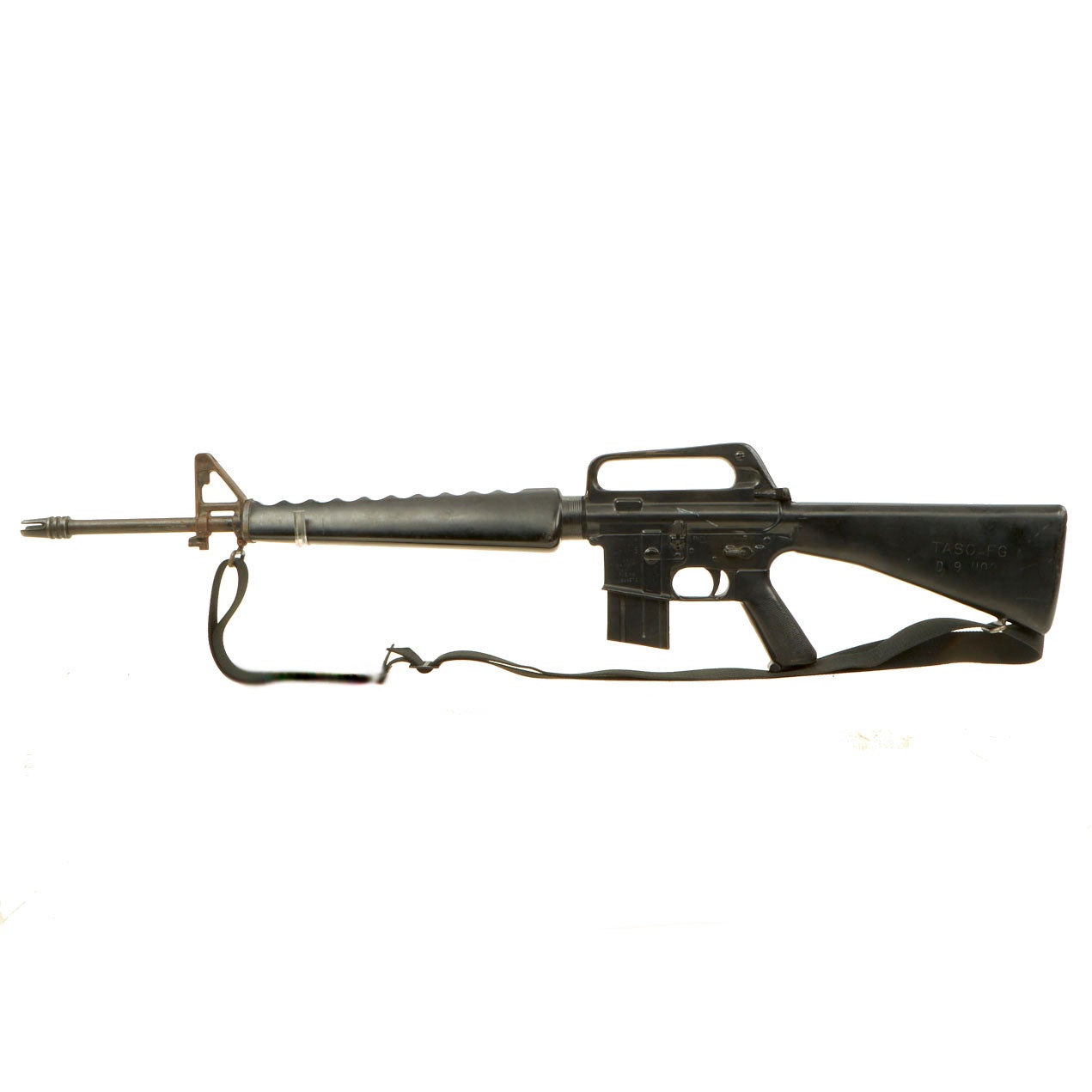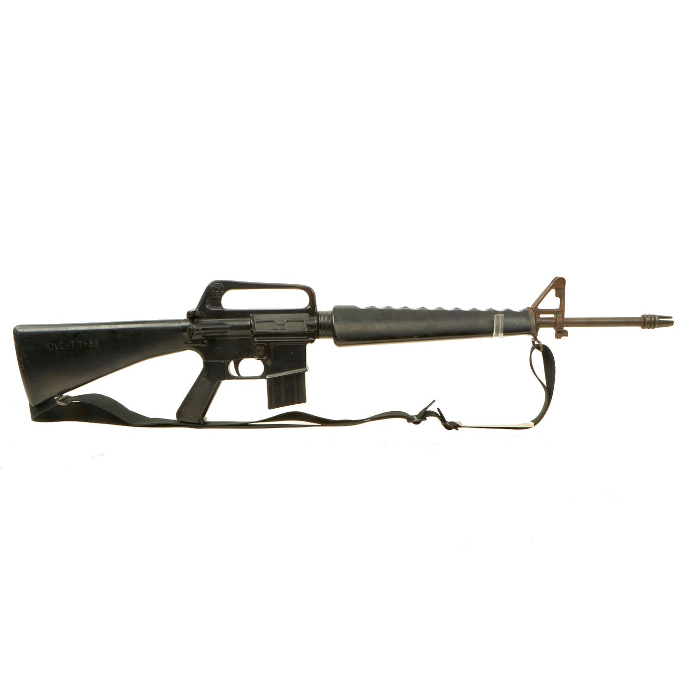 Original Item: Only One Available. This is a training rifle and it is impossible to convert it into a live round firing weapon. The M16 is completely solid with no moving parts. These trainers, affectionately referred to as “rubber ducks” in the United States Armed Services, were designed to withstand harsh conditions and to take a beating. After personally using one just like this in the Marine Corps, I can vouch for it feeling just like the real thing. The government didn’t want to risk damaging or losing actual service weapons, so they produced exact copies from actual decommissioned M16A1 parts. They would use real barrels, sling swivels and receivers. They would then cast these components in a resin/rubber coating, hence the name rubber duck. These rifles could now be swam with, dropped from helicopters, thrown off roofs etc and still be fine to train with. So don’t be surprised when you do come across one of these and it's a little beat up, just know that it helped in the training of young service men and women.