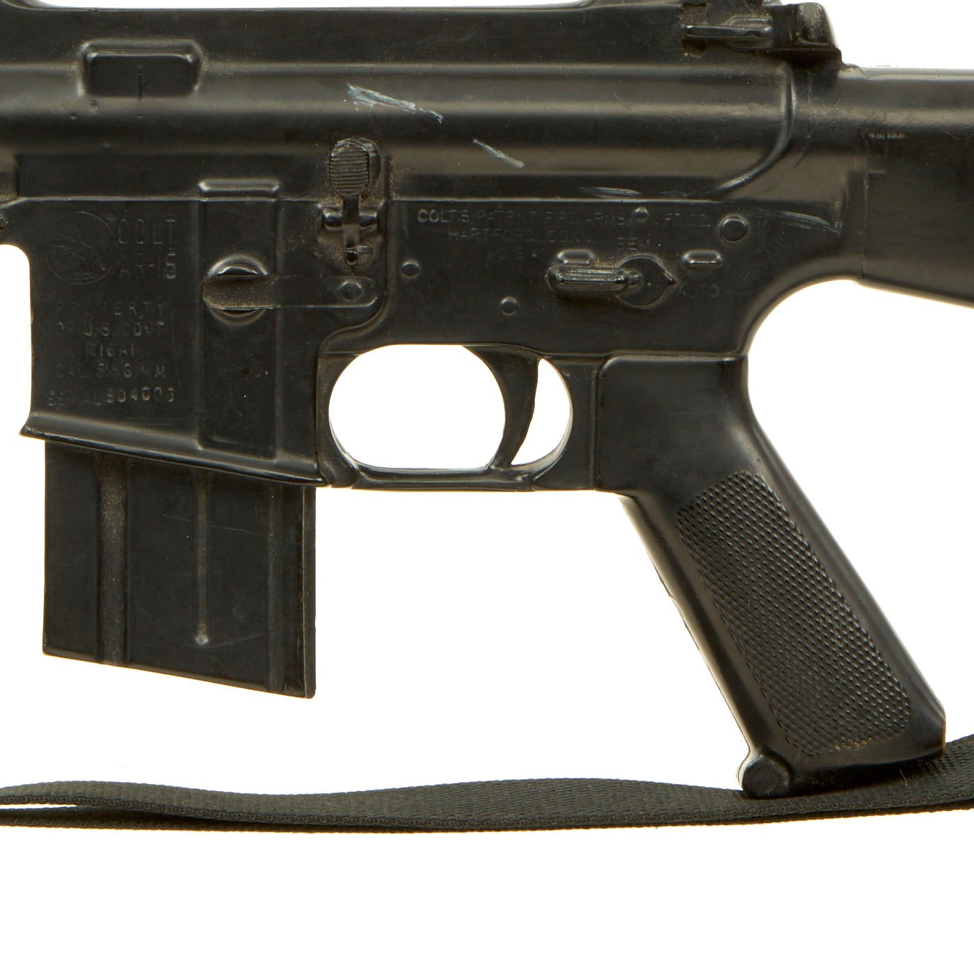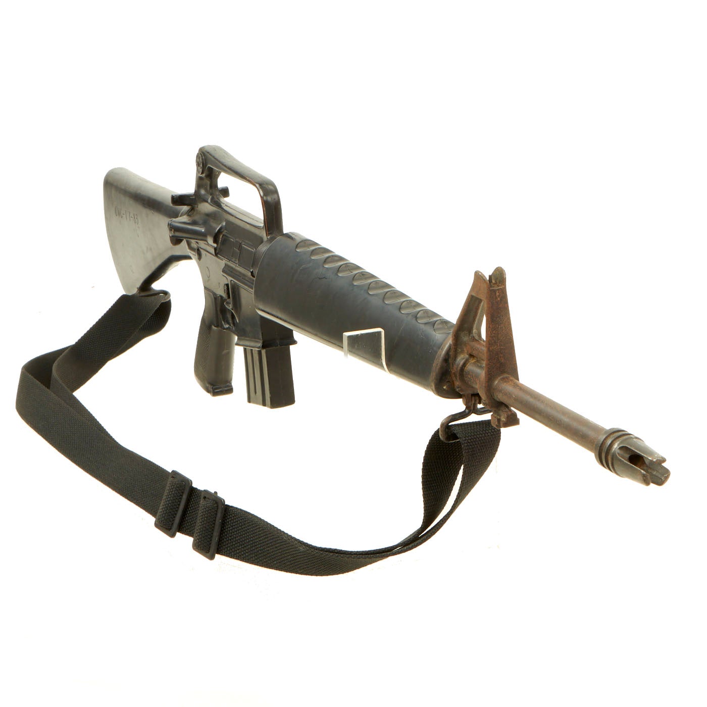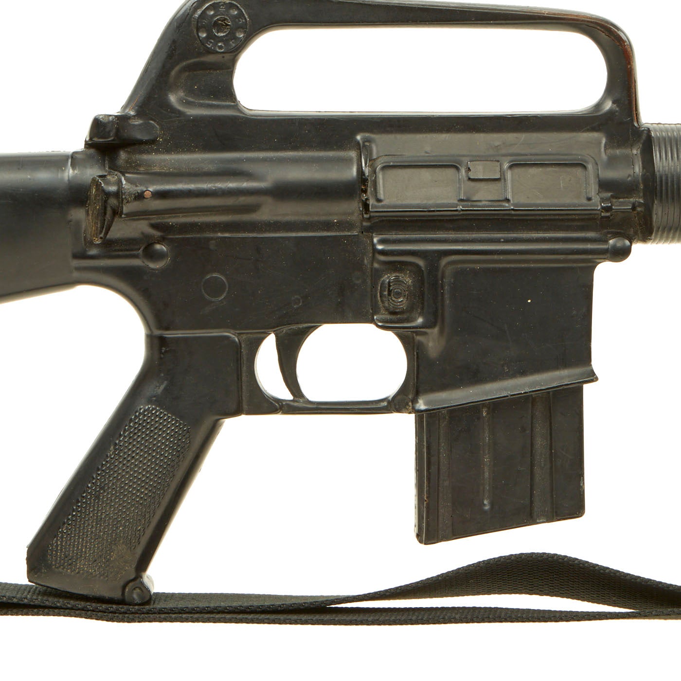 Original Item: Only One Available. This is a training rifle and it is impossible to convert it into a live round firing weapon. The M16 is completely solid with no moving parts. These trainers, affectionately referred to as “rubber ducks” in the United States Armed Services, were designed to withstand harsh conditions and to take a beating. After personally using one just like this in the Marine Corps, I can vouch for it feeling just like the real thing. The government didn’t want to risk damaging or losing actual service weapons, so they produced exact copies from actual decommissioned M16A1 parts. They would use real barrels, sling swivels and receivers. They would then cast these components in a resin/rubber coating, hence the name rubber duck. These rifles could now be swam with, dropped from helicopters, thrown off roofs etc and still be fine to train with. So don’t be surprised when you do come across one of these and it's a little beat up, just know that it helped in the training of young service men and women.