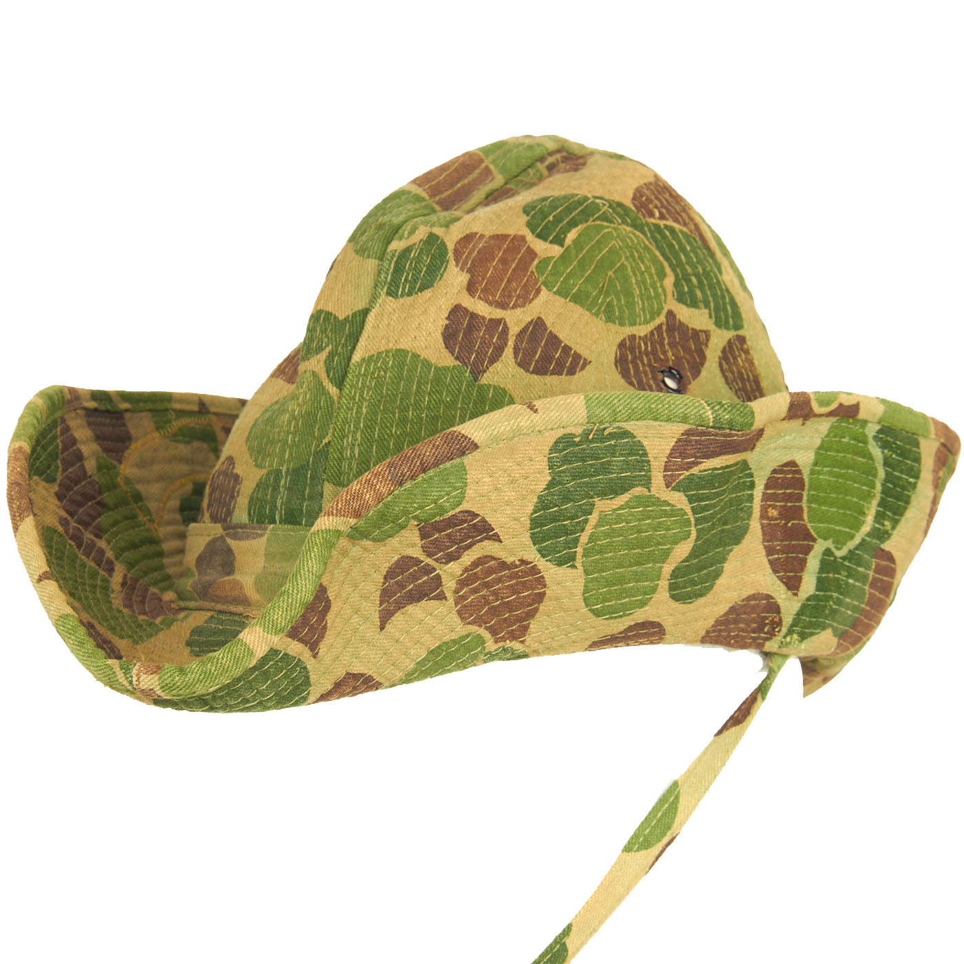 This particular example is in stunning condition, being made of classic “Duck Hunter” spot camouflage heavy material, with each side of the brim turned up but not secured. The interior features a sweatband made of a nylon type material and is unlined. The cap is roughly a size 7 ⅛, and displays beautifully! It appears to have accumulated very little wear from either wear or storage.