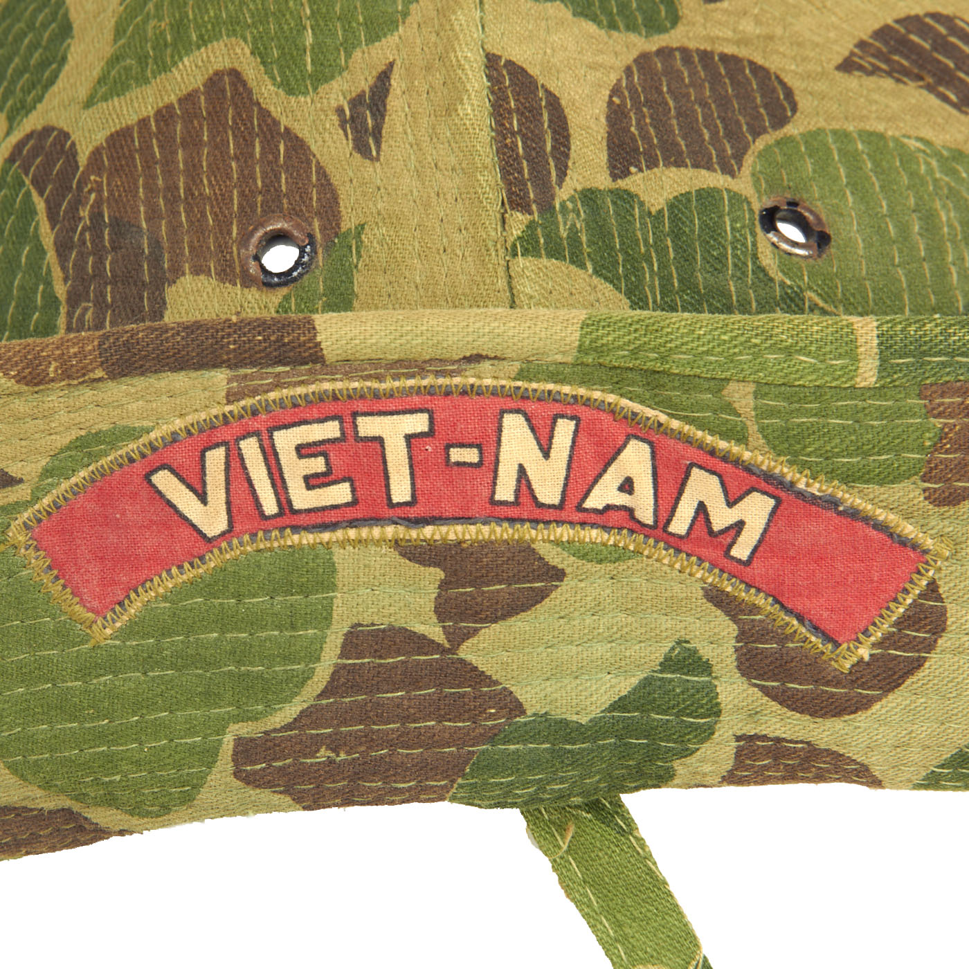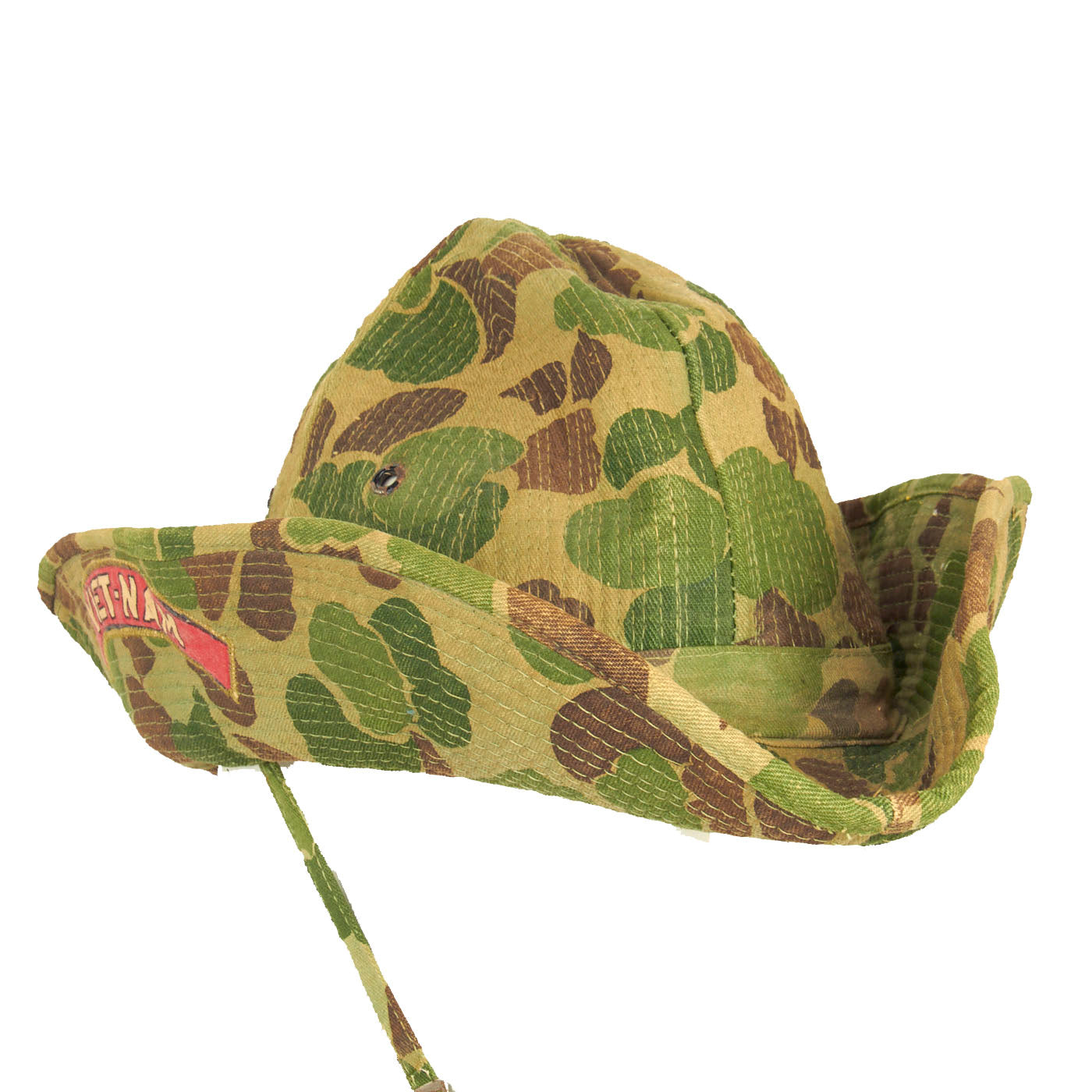 Original Item: Only One Available. This is a rare theater made Vietnam War bush hat. This style hat became popular with USGIs, specifically NCOs, who spent time in the wet hot conditions of Vietnam during the war. The VIET-NAM patch rocker is an original Vietnamese produced example.