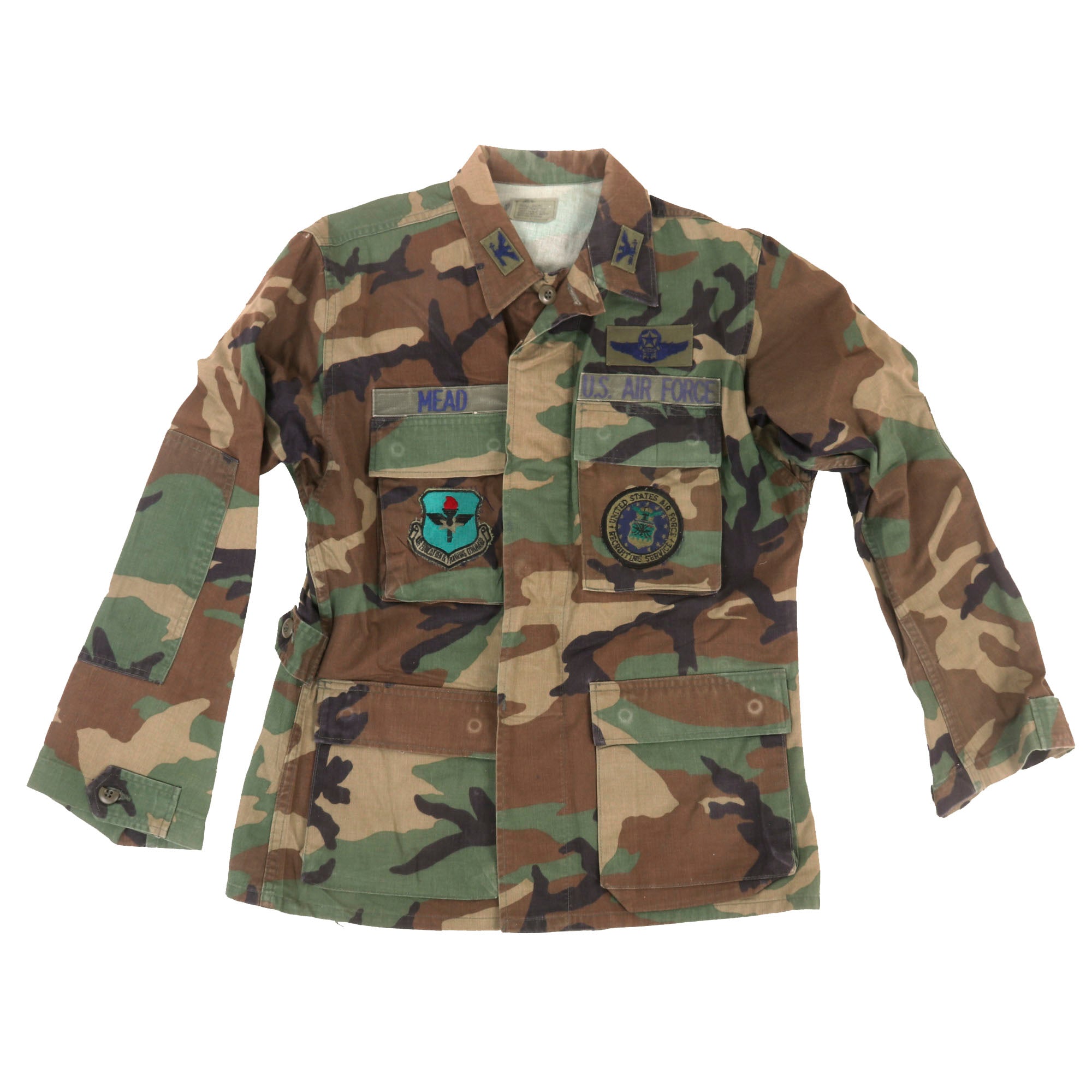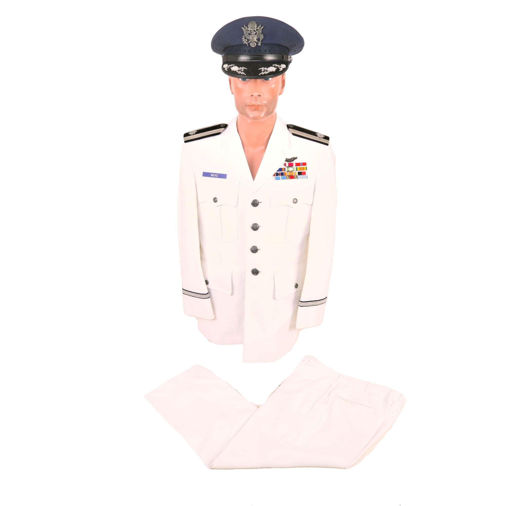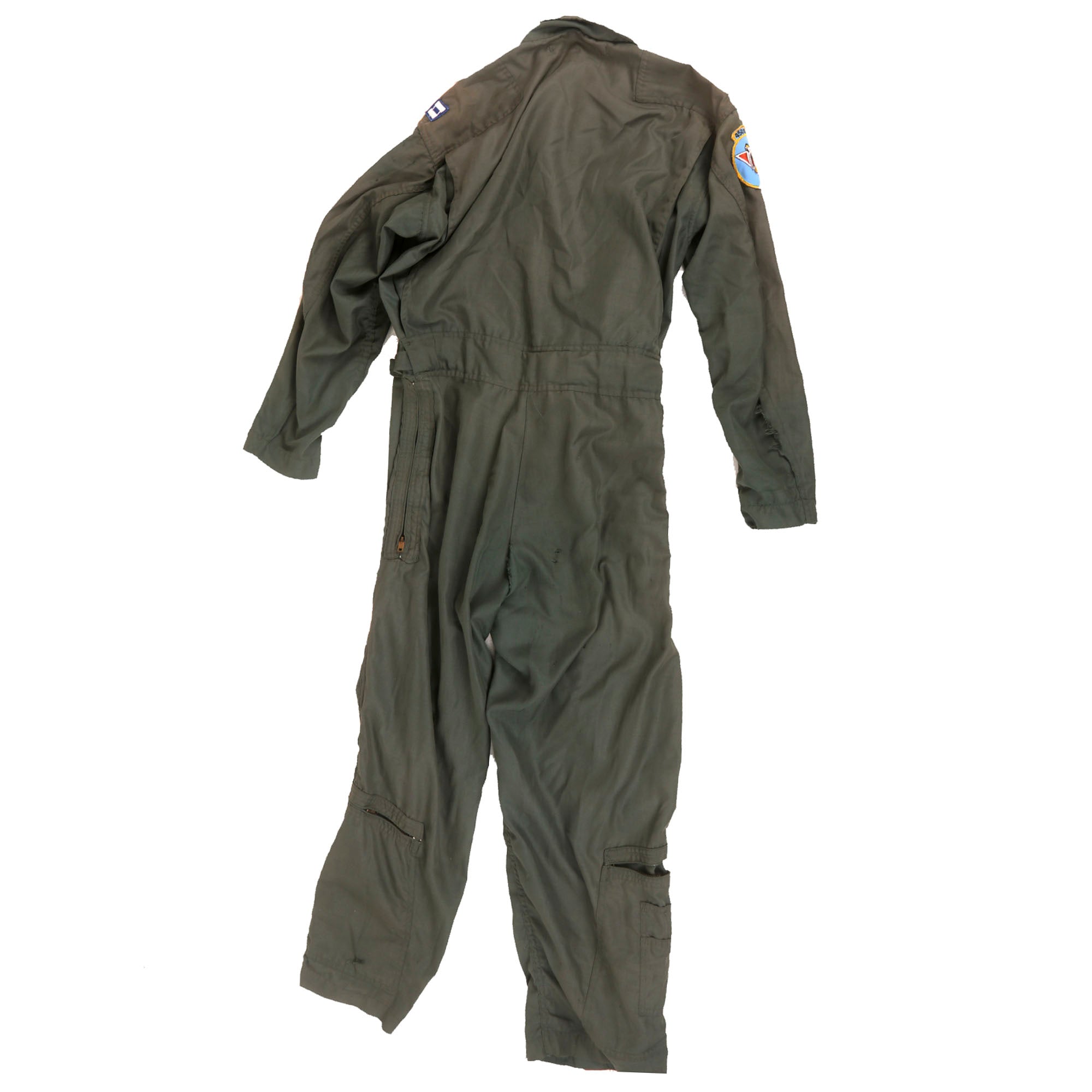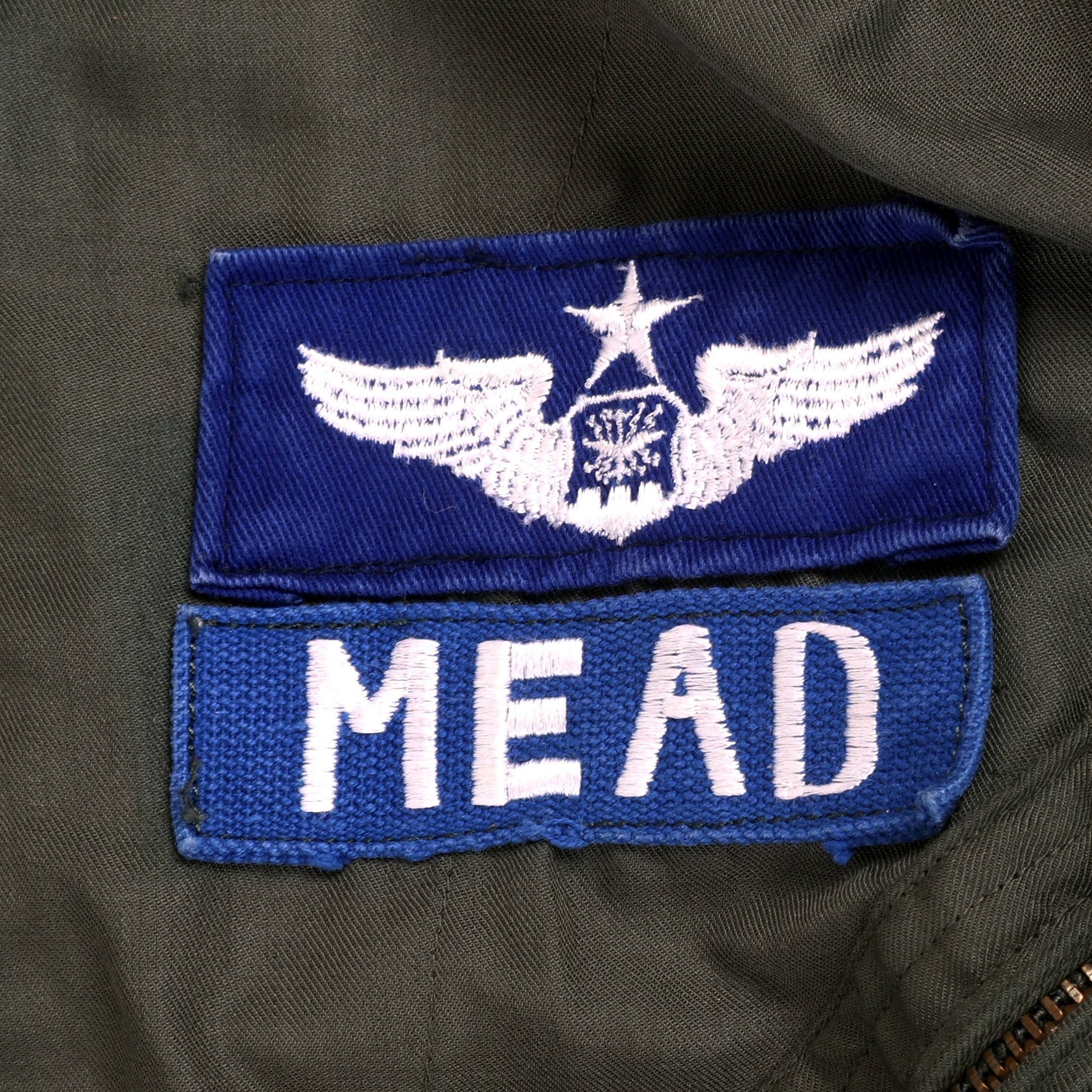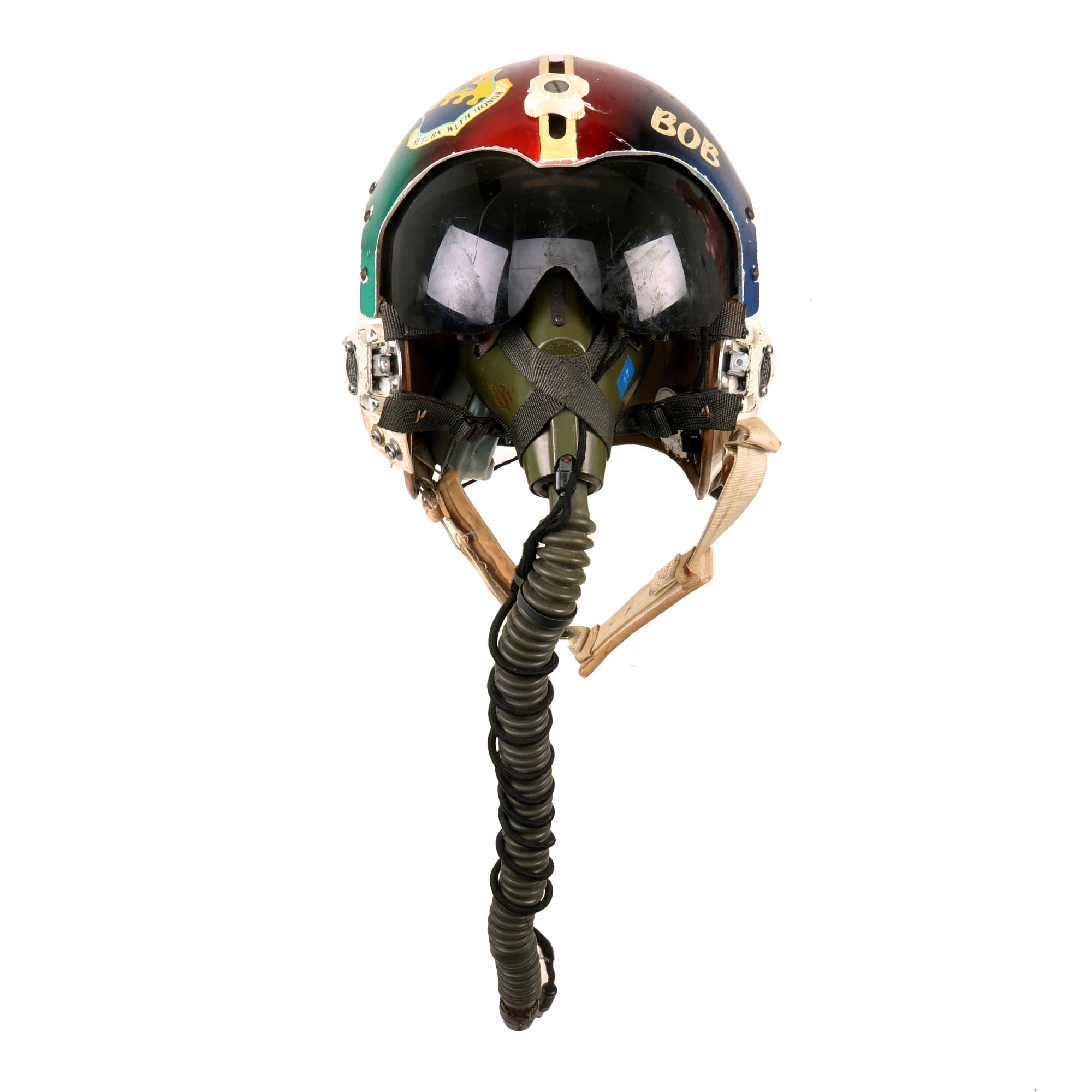 Original Items. One-of-a-Kind Grouping. This is the extensive uniform and flight helmet grouping of Robert Mead, a Master Navigator with more than 3,000 flying hours including over 670 combat hours flown from Da Nang Air Force Base in South Vietnam and 67 more missions flown over North Vietnam. He’s received numerous decorations including the Bronze Star, Meritorious Service Medal, Air Force Combat Action Medal, Air Force Outstanding Unit Award with one OLC, and the Air Medal with 10 OLCs.The grouping includes:- Mead’s white dress uniform with Lieutenant Colonel shoulder boards, his MEAD nametag, his pilot’s wings, and a 11-place ribbon bar with the Meritorious Service Medal, the Bronze Star, the Air Medal with 2 OLCs, the Republic of Vietnam Campaign Medal with bar, the Vietnam War medal, the Outstanding Unit Award with OLC, the WWII American Campaign medal, the Army of Occupation Medal, the Korean Service Medal, the WWII Victory Medal, and the United Nations Korean War Medal. Pants are also included.- Mead’s dress dinner jacket with Colonel’s shoulder boards, his mini pilot’s wings, and a 13-place mini-medal bar with the Bronze Star, the Air Force Combat Action Medal, the National Defense Medal, the Air Force Reserve medal, the Combat Readiness Medal, the Vietnam Service Medal, the Air Medal, the Meritorious Service Medal, the WWII American Campaign Medal, the Korean War UN Medal, the Army of Occupation Medal, the American Defense Medal, and the WWII Victory Medal.- Three of Mead’s flight suits from the Vietnam Period. The first of these has the Yankee Air Pirate, Linebacker II, and DCAL 1952-1975 McClellan patches. The shoulder has WOLF FAC and River Rate patches. The second has his Name Tag, cloth Master Navigator wings, and Air Training Command patch. The third flight suit has Captain’s bars, 308th Tactical Fighter Squadron patch, 31st Fighter Wing patch, 4100th Group (Provisional) patch, embroidered name and wings, and the River Rate patch on the sleeve. These are three fantastic flight suits detailing different parts of Mead’s Air Force service.- Mead’s Camouflage-covered HGU-26/P flight helmet with retained visor. The entire helmet is covered in strips of camouflage. The interior of this helmet is entirely empty, the lining, padding, and whatever else is entirely gone.- Mead’s white HGU-26/P flight helmet with attached oxygen mask and retained visor. This helmet has red/blue decaling on the front with the name BOB painted in white on one side, with the insignia of the 31st Fighter Wing on the other side. The mask is an MBU-5/P oxygen mask and is in good condition with the hose retained. The interior of this helmet is likewise missing most all of the padding besides one ear. Both helmets are missing most of their internals but still display well.- Mead’s 1990s era Camouflage jacket with Colonel ranks on the collars, Air Force Recruiting Service patch and Air Education & Training Command patch. This is likely the most recent uniform in the group.- Blank blue dress uniform and trousers.- Mead’s Dress cap made in Taipei with a calling card for K.S. Smiley Jr, Lt. Col., USAF. This may have belonged to a friend of Mead’s, it is the only piece of the group that is named to someone else. An overall lovely cap with thunder & lightening bullion work on the visor.- Mead’s issue “Cardigan” with Colonel shoulder boards, Citadel tag.- Two of Mead’s overseas caps with Colonel insignia.- One pair of dress shoes and one pair of black boots, both in good order.A 1994 newspaper article notes that Mead was awarded the Distinguished Flying Cross with one OLC, but his uniform does not show these awards. Considering some of these uniforms are from earlier in his service, it’s possible he was awarded the DFC at a later date.Mead attended Arms Academy and received his Bachelors from Boston University and Masters from Golden Gate University. He was commissioned a Lieutenant through Air Fore ROTC and entered active duty in 1968. Mead became a Master Navigator with more than 3,000 flying hours including over 670 combat hours flown from Da Nang Air Force Base in South Vietnam and 67 more missions flown over North Vietnam. After serving as an undergraduate instructor at Mather AFB, XO for the Deputy Chief of Staff for plans in the Directorate of of Wartime Augmentation at Ramstein Air Base in Germany, and instructor weapons systems officers at Moody Air Force Base, he assumed command of the Recruiting Squadron, Gunter Air Force Station. He assumed command of the 360 USAF Recruiting Group, Air Training Command, Hanscom AFB in 1991.This is a fantastic & extensive Vietnam War flight grouping, ready for further research and display.Approximate Measurements:-Blue Jacket #1