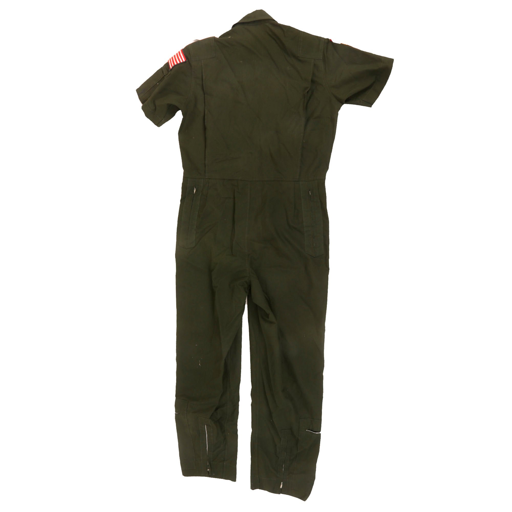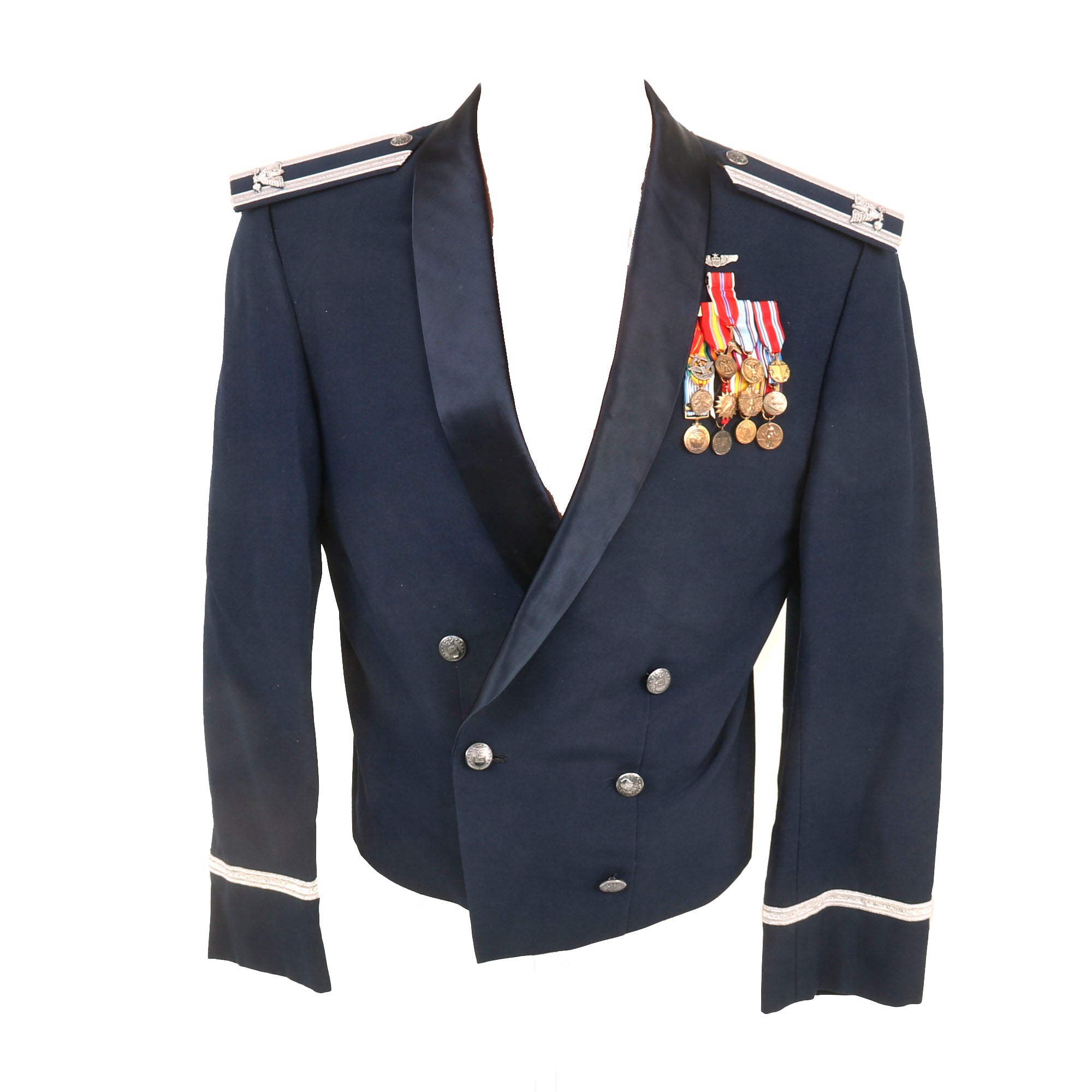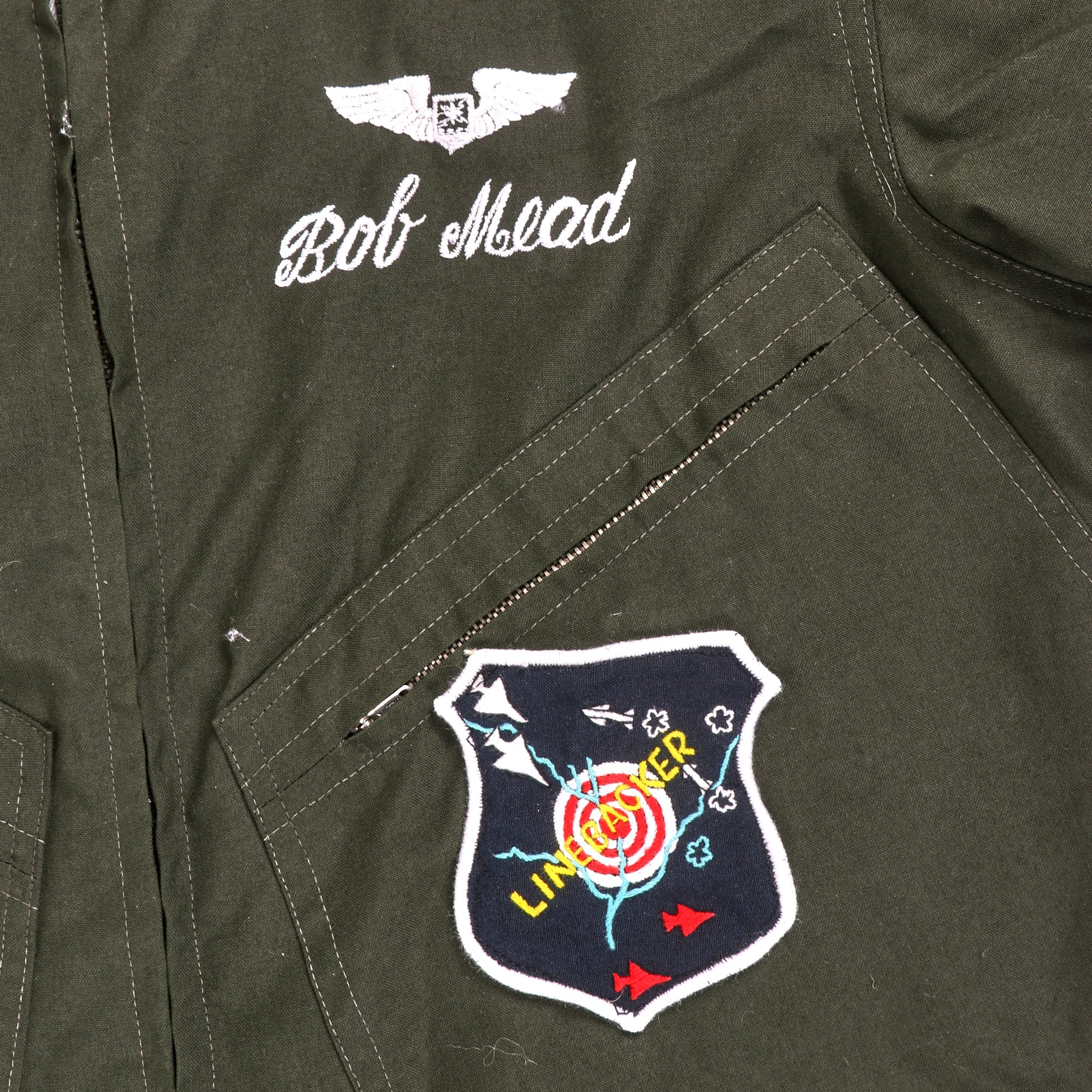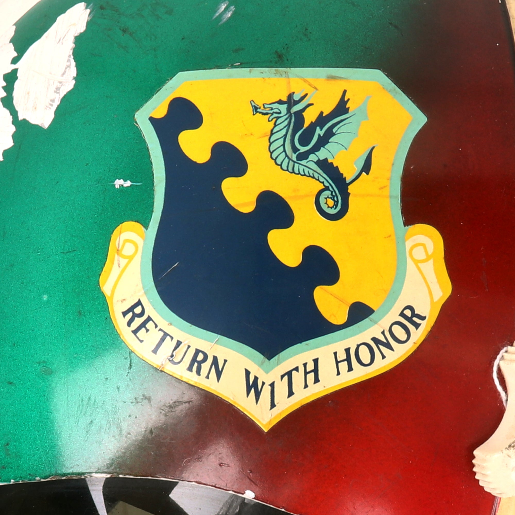 Original Items. One-of-a-Kind Grouping. This is the extensive uniform and flight helmet grouping of Robert Mead, a Master Navigator with more than 3,000 flying hours including over 670 combat hours flown from Da Nang Air Force Base in South Vietnam and 67 more missions flown over North Vietnam. He’s received numerous decorations including the Bronze Star, Meritorious Service Medal, Air Force Combat Action Medal, Air Force Outstanding Unit Award with one OLC, and the Air Medal with 10 OLCs.The grouping includes:- Mead’s white dress uniform with Lieutenant Colonel shoulder boards, his MEAD nametag, his pilot’s wings, and a 11-place ribbon bar with the Meritorious Service Medal, the Bronze Star, the Air Medal with 2 OLCs, the Republic of Vietnam Campaign Medal with bar, the Vietnam War medal, the Outstanding Unit Award with OLC, the WWII American Campaign medal, the Army of Occupation Medal, the Korean Service Medal, the WWII Victory Medal, and the United Nations Korean War Medal. Pants are also included.- Mead’s dress dinner jacket with Colonel’s shoulder boards, his mini pilot’s wings, and a 13-place mini-medal bar with the Bronze Star, the Air Force Combat Action Medal, the National Defense Medal, the Air Force Reserve medal, the Combat Readiness Medal, the Vietnam Service Medal, the Air Medal, the Meritorious Service Medal, the WWII American Campaign Medal, the Korean War UN Medal, the Army of Occupation Medal, the American Defense Medal, and the WWII Victory Medal.- Three of Mead’s flight suits from the Vietnam Period. The first of these has the Yankee Air Pirate, Linebacker II, and DCAL 1952-1975 McClellan patches. The shoulder has WOLF FAC and River Rate patches. The second has his Name Tag, cloth Master Navigator wings, and Air Training Command patch. The third flight suit has Captain’s bars, 308th Tactical Fighter Squadron patch, 31st Fighter Wing patch, 4100th Group (Provisional) patch, embroidered name and wings, and the River Rate patch on the sleeve. These are three fantastic flight suits detailing different parts of Mead’s Air Force service.- Mead’s Camouflage-covered HGU-26/P flight helmet with retained visor. The entire helmet is covered in strips of camouflage. The interior of this helmet is entirely empty, the lining, padding, and whatever else is entirely gone.- Mead’s white HGU-26/P flight helmet with attached oxygen mask and retained visor. This helmet has red/blue decaling on the front with the name BOB painted in white on one side, with the insignia of the 31st Fighter Wing on the other side. The mask is an MBU-5/P oxygen mask and is in good condition with the hose retained. The interior of this helmet is likewise missing most all of the padding besides one ear. Both helmets are missing most of their internals but still display well.- Mead’s 1990s era Camouflage jacket with Colonel ranks on the collars, Air Force Recruiting Service patch and Air Education & Training Command patch. This is likely the most recent uniform in the group.- Blank blue dress uniform and trousers.- Mead’s Dress cap made in Taipei with a calling card for K.S. Smiley Jr, Lt. Col., USAF. This may have belonged to a friend of Mead’s, it is the only piece of the group that is named to someone else. An overall lovely cap with thunder & lightening bullion work on the visor.- Mead’s issue “Cardigan” with Colonel shoulder boards, Citadel tag.- Two of Mead’s overseas caps with Colonel insignia.- One pair of dress shoes and one pair of black boots, both in good order.A 1994 newspaper article notes that Mead was awarded the Distinguished Flying Cross with one OLC, but his uniform does not show these awards. Considering some of these uniforms are from earlier in his service, it’s possible he was awarded the DFC at a later date.Mead attended Arms Academy and received his Bachelors from Boston University and Masters from Golden Gate University. He was commissioned a Lieutenant through Air Fore ROTC and entered active duty in 1968. Mead became a Master Navigator with more than 3,000 flying hours including over 670 combat hours flown from Da Nang Air Force Base in South Vietnam and 67 more missions flown over North Vietnam. After serving as an undergraduate instructor at Mather AFB, XO for the Deputy Chief of Staff for plans in the Directorate of of Wartime Augmentation at Ramstein Air Base in Germany, and instructor weapons systems officers at Moody Air Force Base, he assumed command of the Recruiting Squadron, Gunter Air Force Station. He assumed command of the 360 USAF Recruiting Group, Air Training Command, Hanscom AFB in 1991.This is a fantastic & extensive Vietnam War flight grouping, ready for further research and display.Approximate Measurements:-Blue Jacket #1