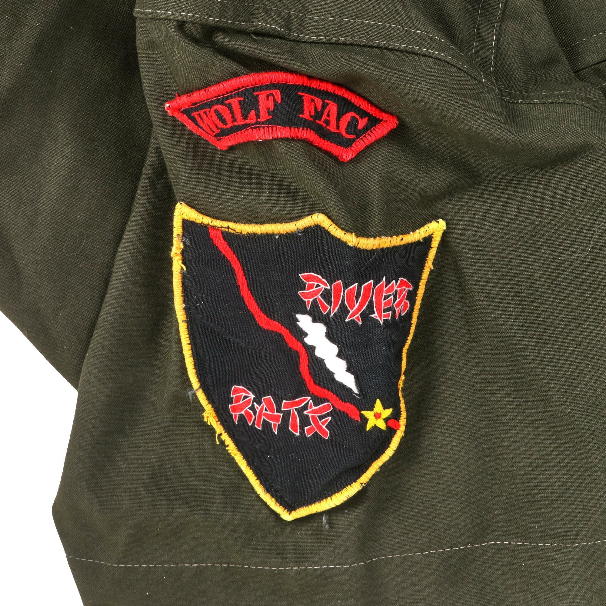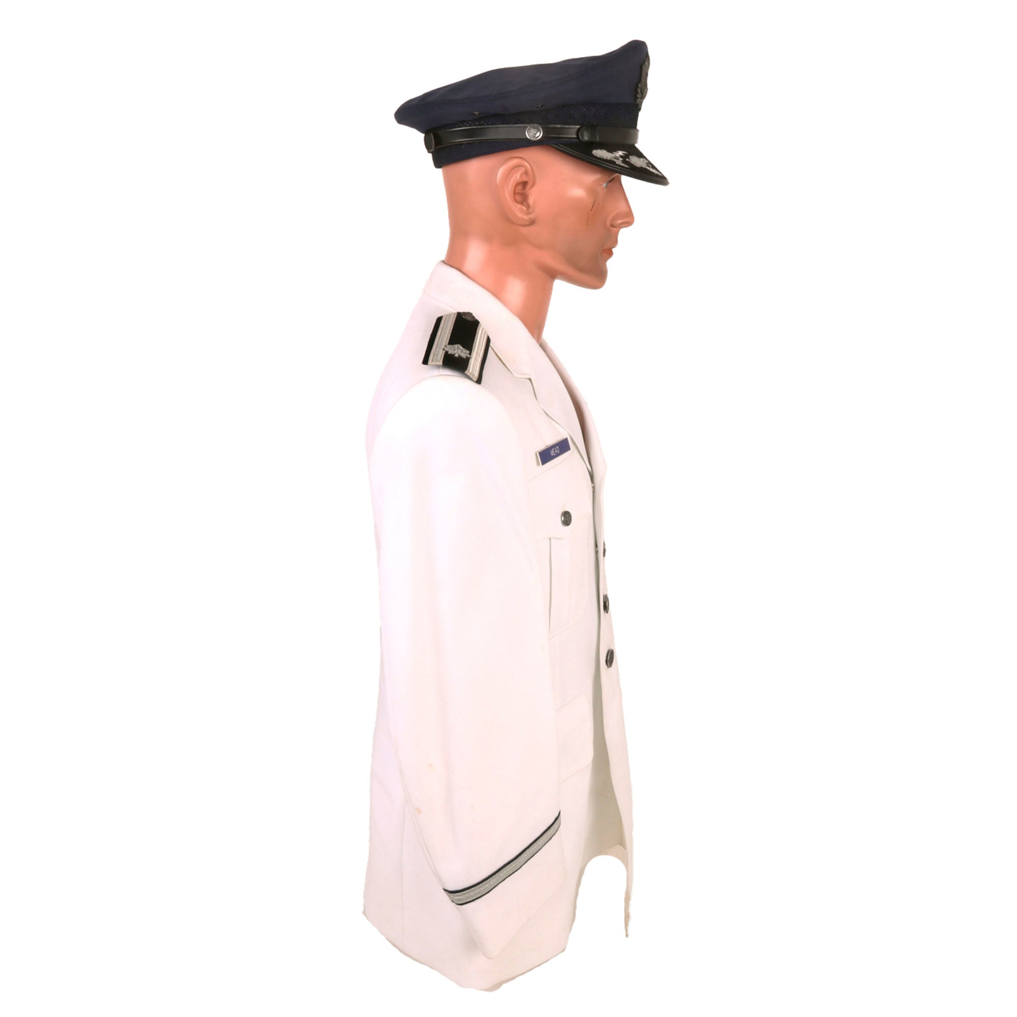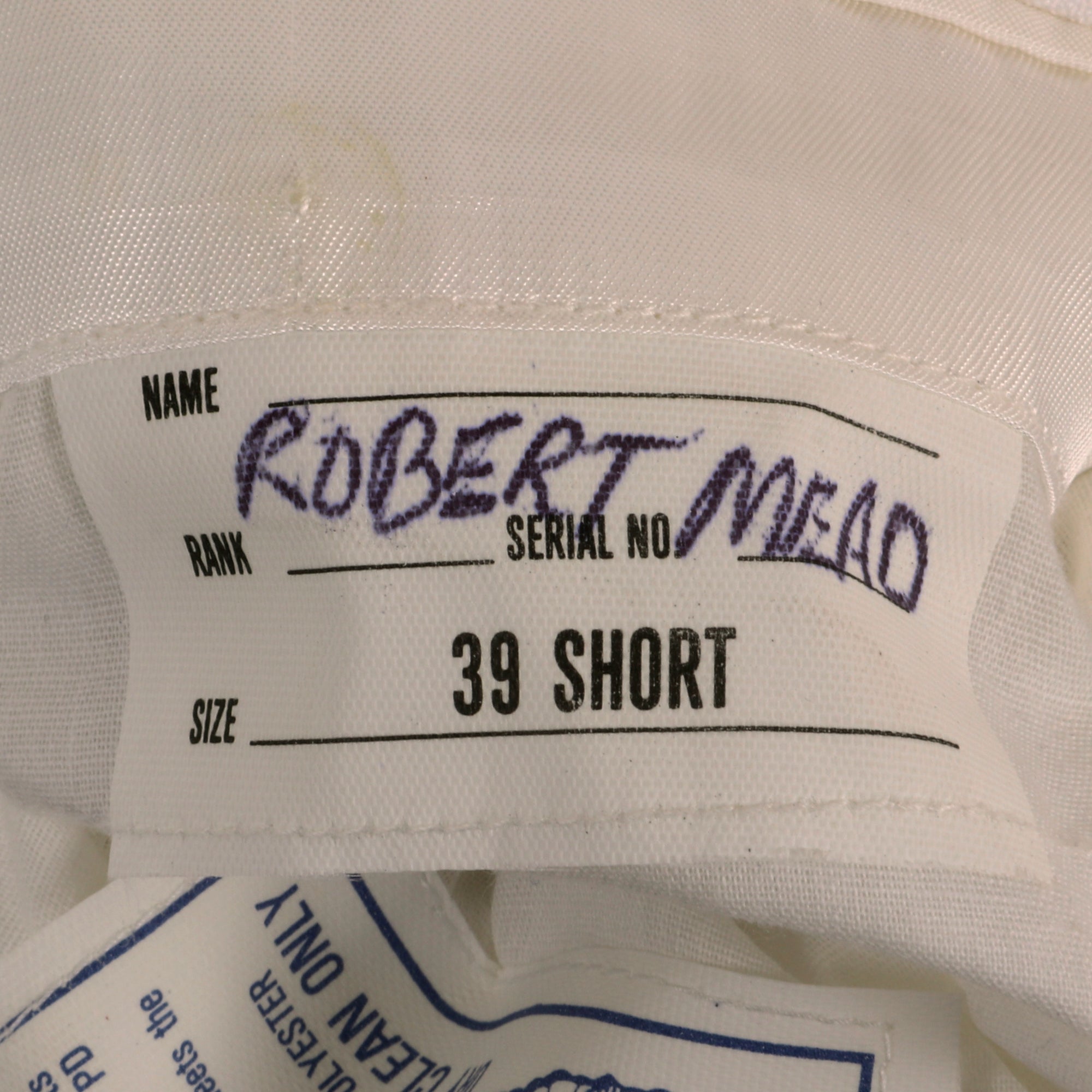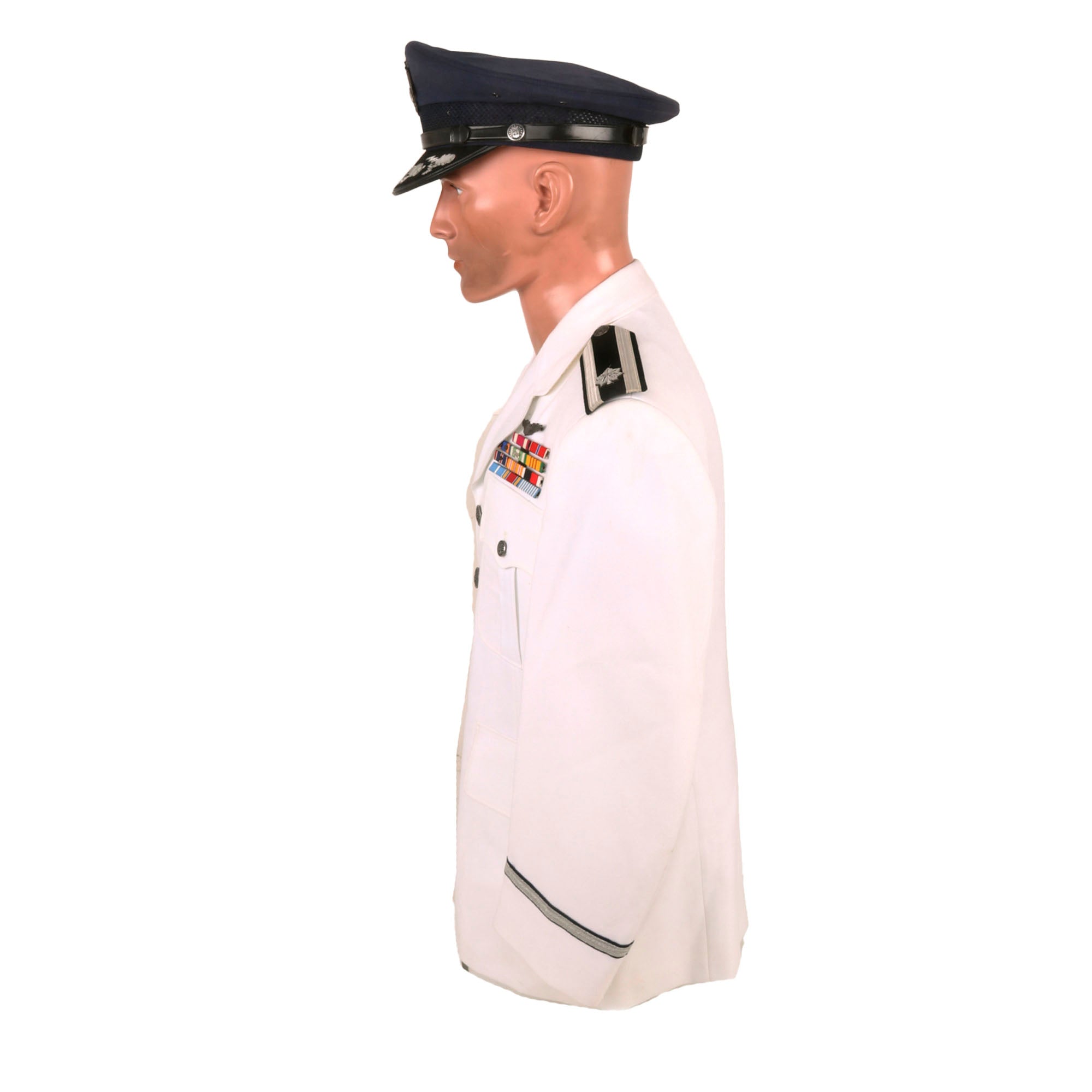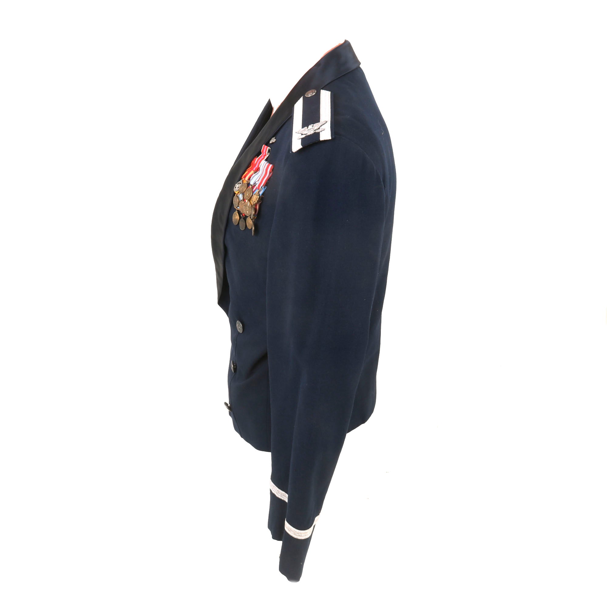 Original Items. One-of-a-Kind Grouping. This is the extensive uniform and flight helmet grouping of Robert Mead, a Master Navigator with more than 3,000 flying hours including over 670 combat hours flown from Da Nang Air Force Base in South Vietnam and 67 more missions flown over North Vietnam. He’s received numerous decorations including the Bronze Star, Meritorious Service Medal, Air Force Combat Action Medal, Air Force Outstanding Unit Award with one OLC, and the Air Medal with 10 OLCs.The grouping includes:- Mead’s white dress uniform with Lieutenant Colonel shoulder boards, his MEAD nametag, his pilot’s wings, and a 11-place ribbon bar with the Meritorious Service Medal, the Bronze Star, the Air Medal with 2 OLCs, the Republic of Vietnam Campaign Medal with bar, the Vietnam War medal, the Outstanding Unit Award with OLC, the WWII American Campaign medal, the Army of Occupation Medal, the Korean Service Medal, the WWII Victory Medal, and the United Nations Korean War Medal. Pants are also included.- Mead’s dress dinner jacket with Colonel’s shoulder boards, his mini pilot’s wings, and a 13-place mini-medal bar with the Bronze Star, the Air Force Combat Action Medal, the National Defense Medal, the Air Force Reserve medal, the Combat Readiness Medal, the Vietnam Service Medal, the Air Medal, the Meritorious Service Medal, the WWII American Campaign Medal, the Korean War UN Medal, the Army of Occupation Medal, the American Defense Medal, and the WWII Victory Medal.- Three of Mead’s flight suits from the Vietnam Period. The first of these has the Yankee Air Pirate, Linebacker II, and DCAL 1952-1975 McClellan patches. The shoulder has WOLF FAC and River Rate patches. The second has his Name Tag, cloth Master Navigator wings, and Air Training Command patch. The third flight suit has Captain’s bars, 308th Tactical Fighter Squadron patch, 31st Fighter Wing patch, 4100th Group (Provisional) patch, embroidered name and wings, and the River Rate patch on the sleeve. These are three fantastic flight suits detailing different parts of Mead’s Air Force service.- Mead’s Camouflage-covered HGU-26/P flight helmet with retained visor. The entire helmet is covered in strips of camouflage. The interior of this helmet is entirely empty, the lining, padding, and whatever else is entirely gone.- Mead’s white HGU-26/P flight helmet with attached oxygen mask and retained visor. This helmet has red/blue decaling on the front with the name BOB painted in white on one side, with the insignia of the 31st Fighter Wing on the other side. The mask is an MBU-5/P oxygen mask and is in good condition with the hose retained. The interior of this helmet is likewise missing most all of the padding besides one ear. Both helmets are missing most of their internals but still display well.- Mead’s 1990s era Camouflage jacket with Colonel ranks on the collars, Air Force Recruiting Service patch and Air Education & Training Command patch. This is likely the most recent uniform in the group.- Blank blue dress uniform and trousers.- Mead’s Dress cap made in Taipei with a calling card for K.S. Smiley Jr, Lt. Col., USAF. This may have belonged to a friend of Mead’s, it is the only piece of the group that is named to someone else. An overall lovely cap with thunder & lightening bullion work on the visor.- Mead’s issue “Cardigan” with Colonel shoulder boards, Citadel tag.- Two of Mead’s overseas caps with Colonel insignia.- One pair of dress shoes and one pair of black boots, both in good order.A 1994 newspaper article notes that Mead was awarded the Distinguished Flying Cross with one OLC, but his uniform does not show these awards. Considering some of these uniforms are from earlier in his service, it’s possible he was awarded the DFC at a later date.Mead attended Arms Academy and received his Bachelors from Boston University and Masters from Golden Gate University. He was commissioned a Lieutenant through Air Fore ROTC and entered active duty in 1968. Mead became a Master Navigator with more than 3,000 flying hours including over 670 combat hours flown from Da Nang Air Force Base in South Vietnam and 67 more missions flown over North Vietnam. After serving as an undergraduate instructor at Mather AFB, XO for the Deputy Chief of Staff for plans in the Directorate of of Wartime Augmentation at Ramstein Air Base in Germany, and instructor weapons systems officers at Moody Air Force Base, he assumed command of the Recruiting Squadron, Gunter Air Force Station. He assumed command of the 360 USAF Recruiting Group, Air Training Command, Hanscom AFB in 1991.This is a fantastic & extensive Vietnam War flight grouping, ready for further research and display.Approximate Measurements:-Blue Jacket #1