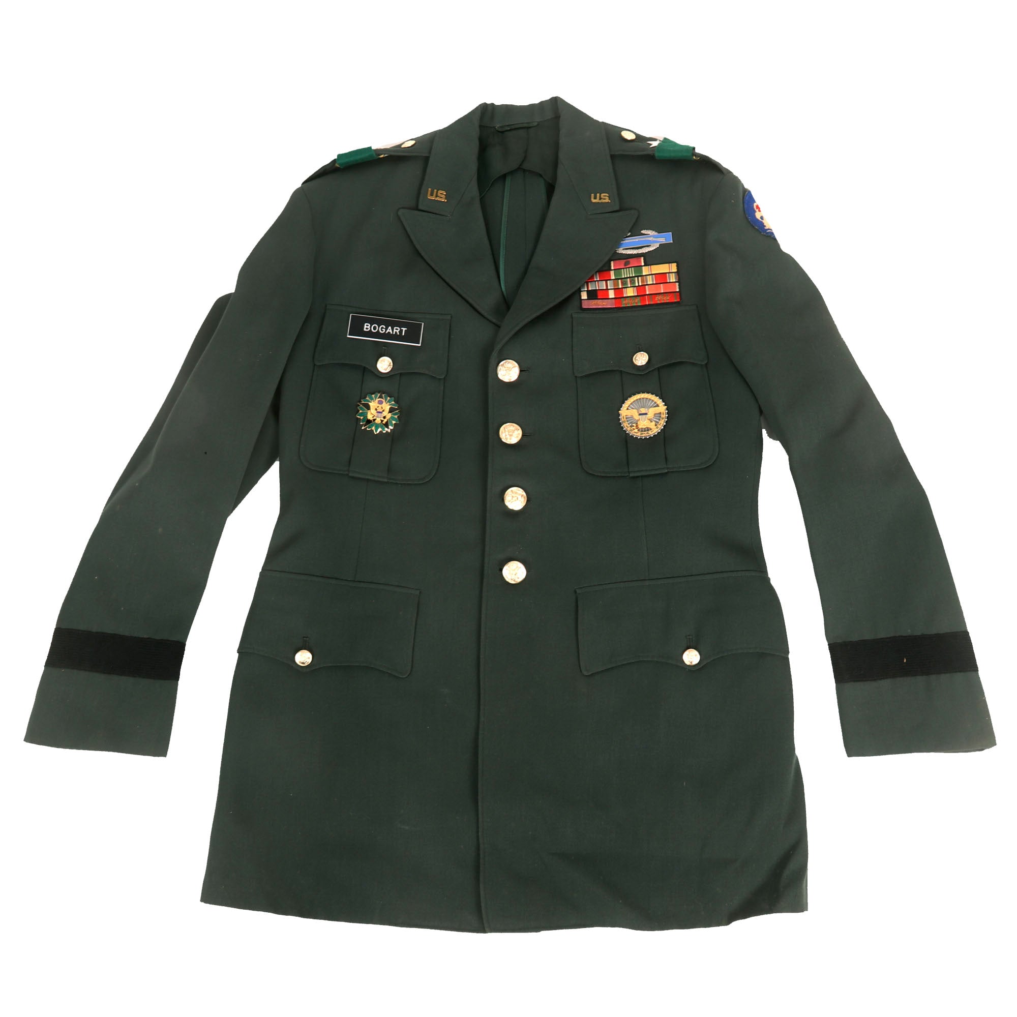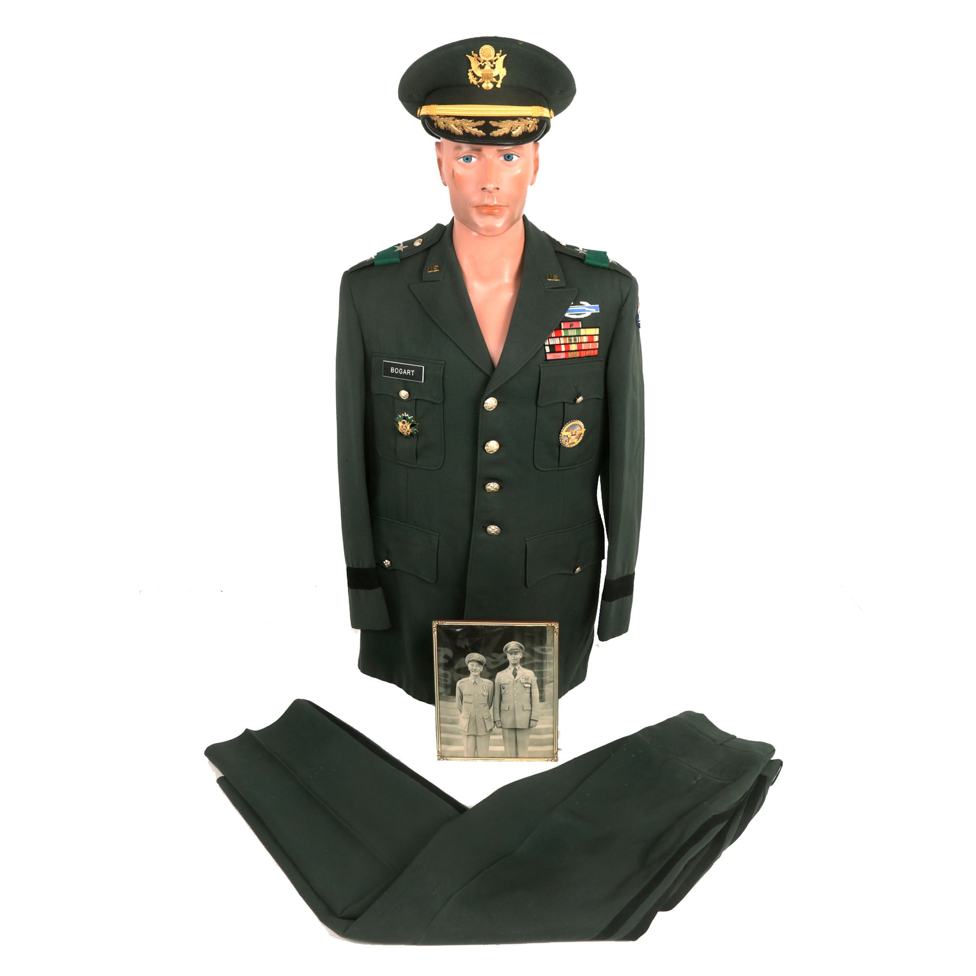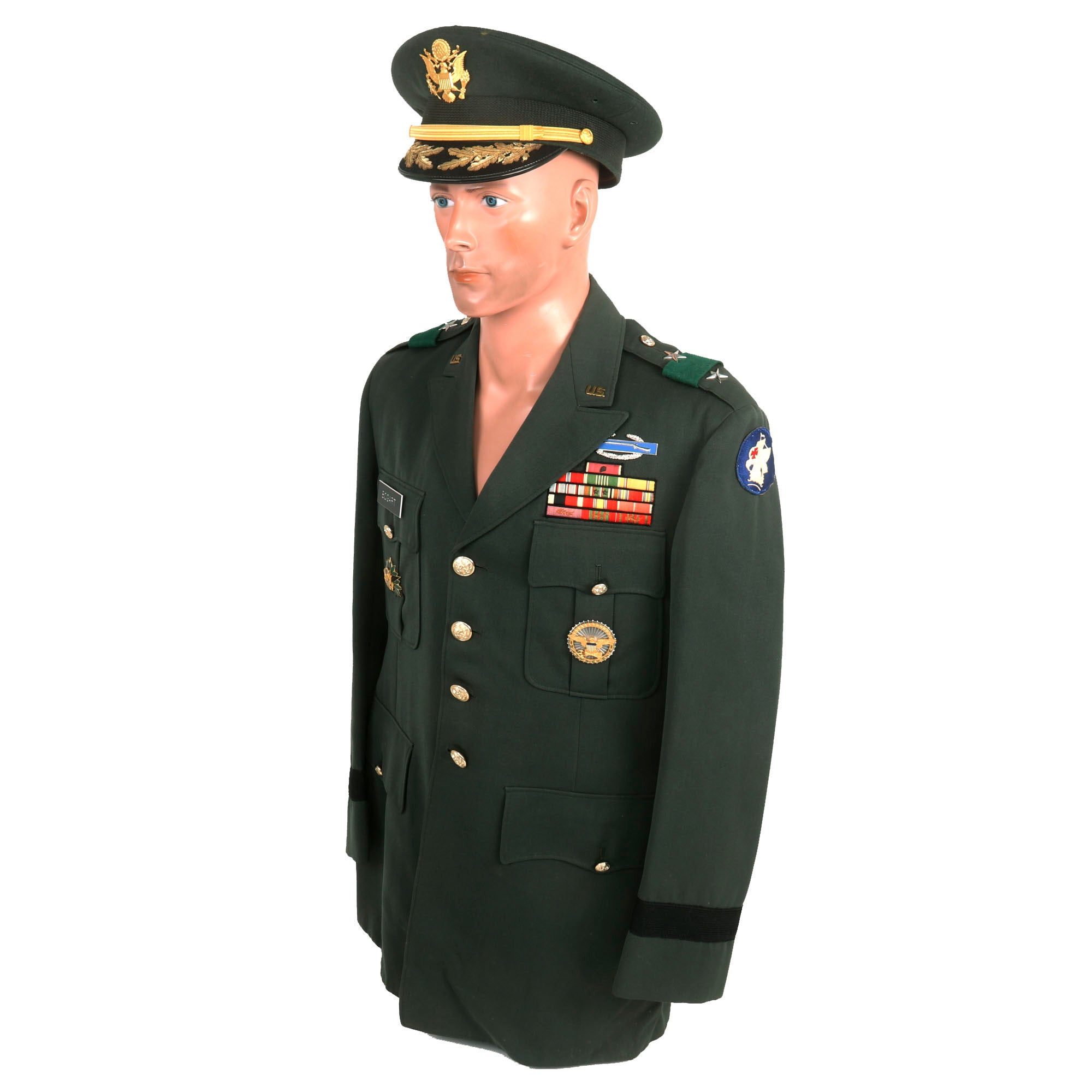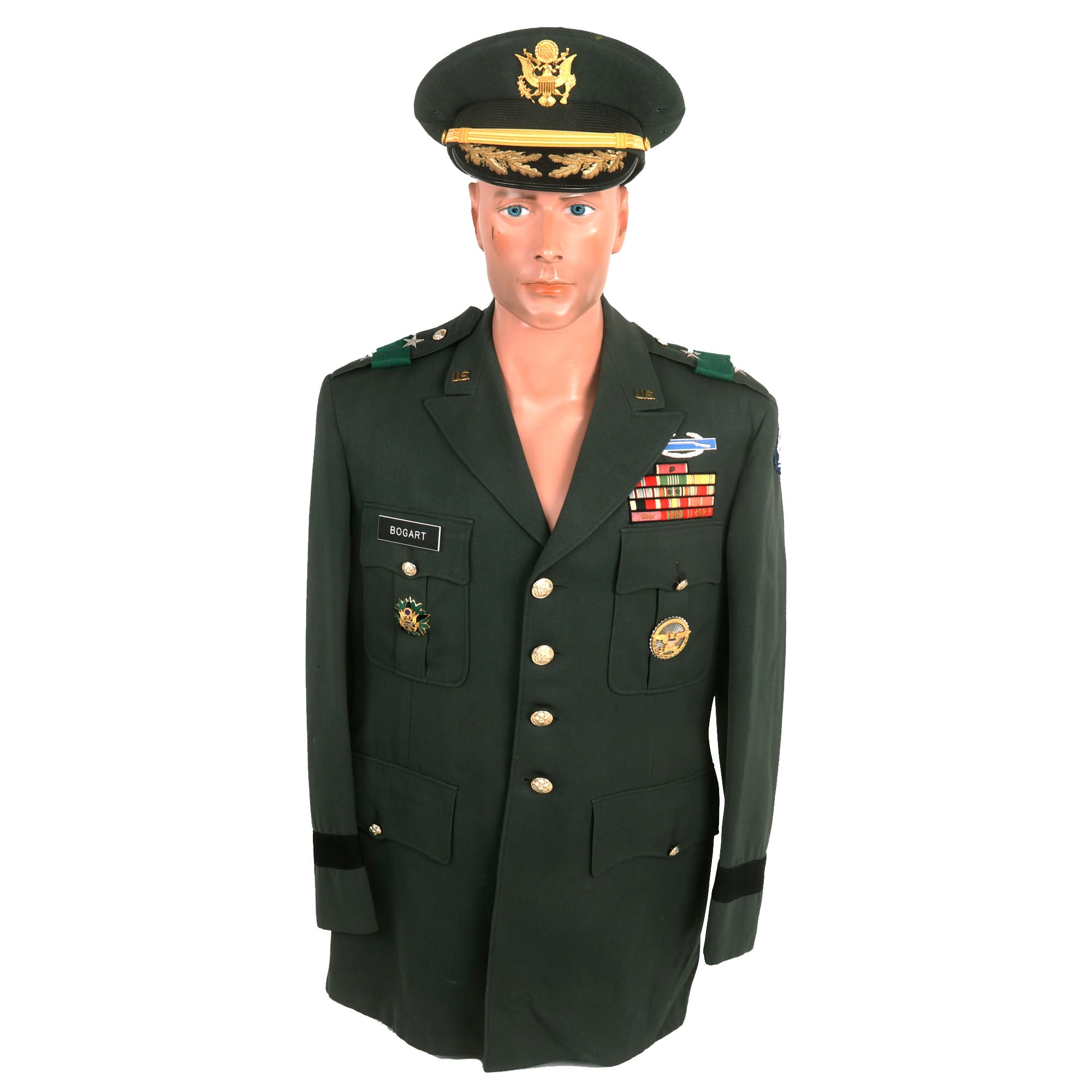 Original Items: Only One Set Available. This uniform set is not only appealing to the eye but is also of great historical significance. Despite appearing to be a standard Major-General's Class-A uniform set, there are a few distinctive features that set it apart from others. The uniform belonged to Major General Theodore F. Bogart, who at this time was Commander, U.S. Southern Command. The uniform itself is in excellent condition and boasts impressive devices and a “theater made” ribbon rack, making it truly stand out.