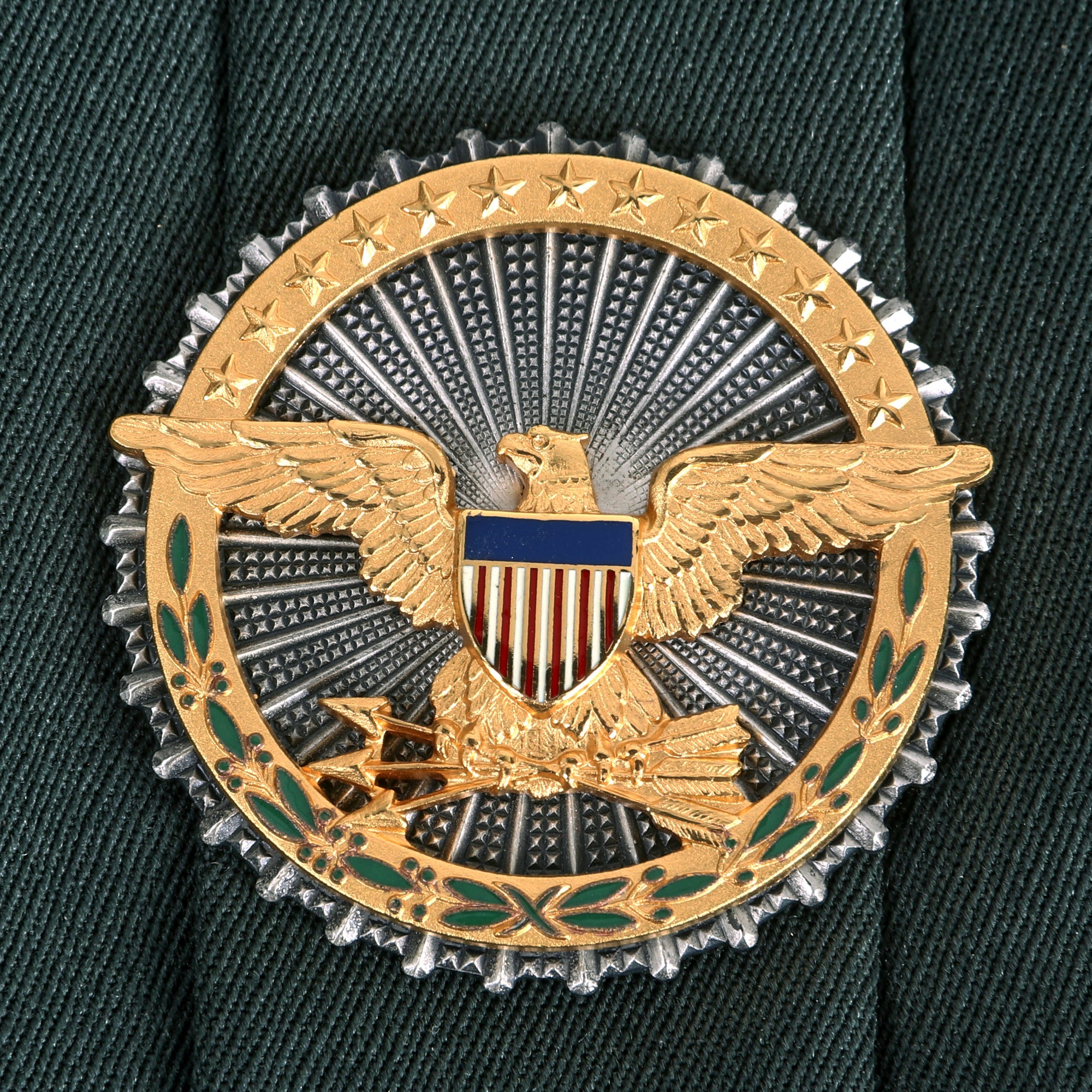The jacket boasts several unique features that set it apart from other military jackets. The obvious General star devices on the epaulets are particularly noteworthy, as they indicate the 2nd highest rank possible in the US Army and are just beautiful. A medal ribbon bar is also present on the jacket, which would have been used to display the General's various military honors and awards, which all appear to be correct and present.