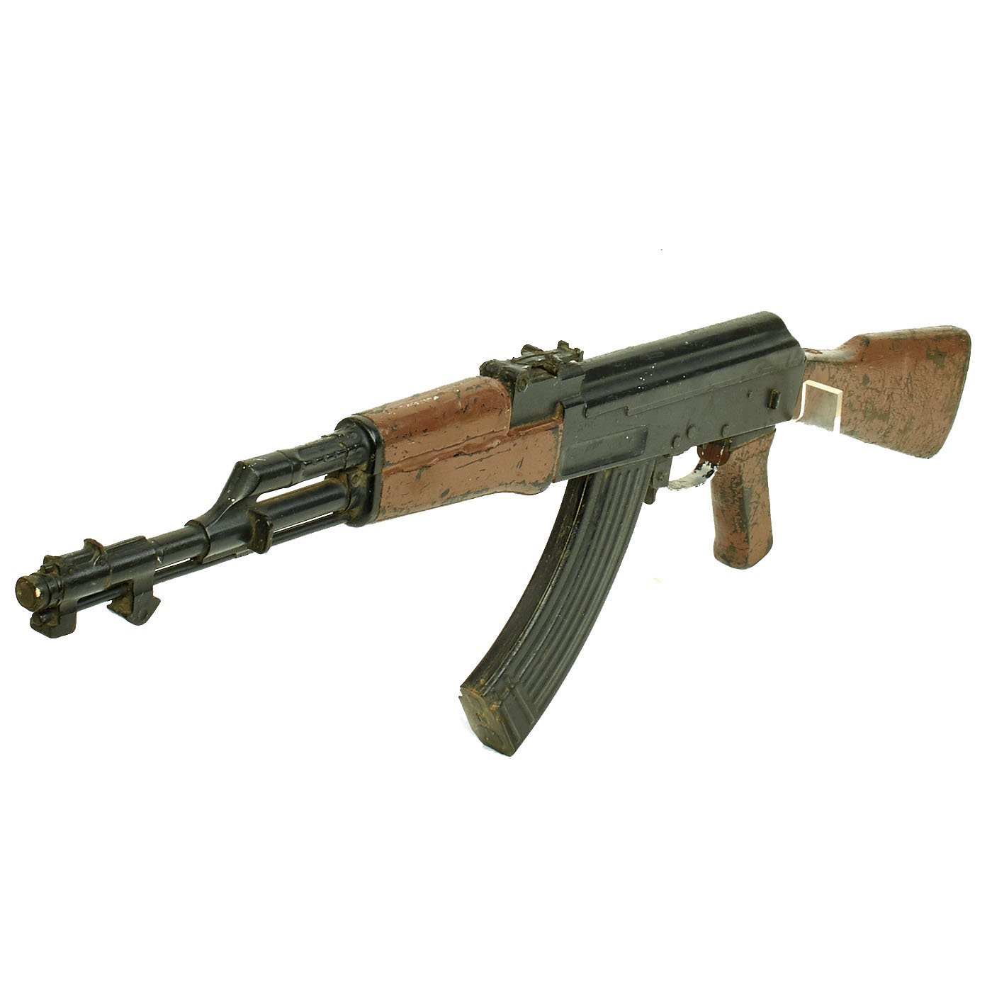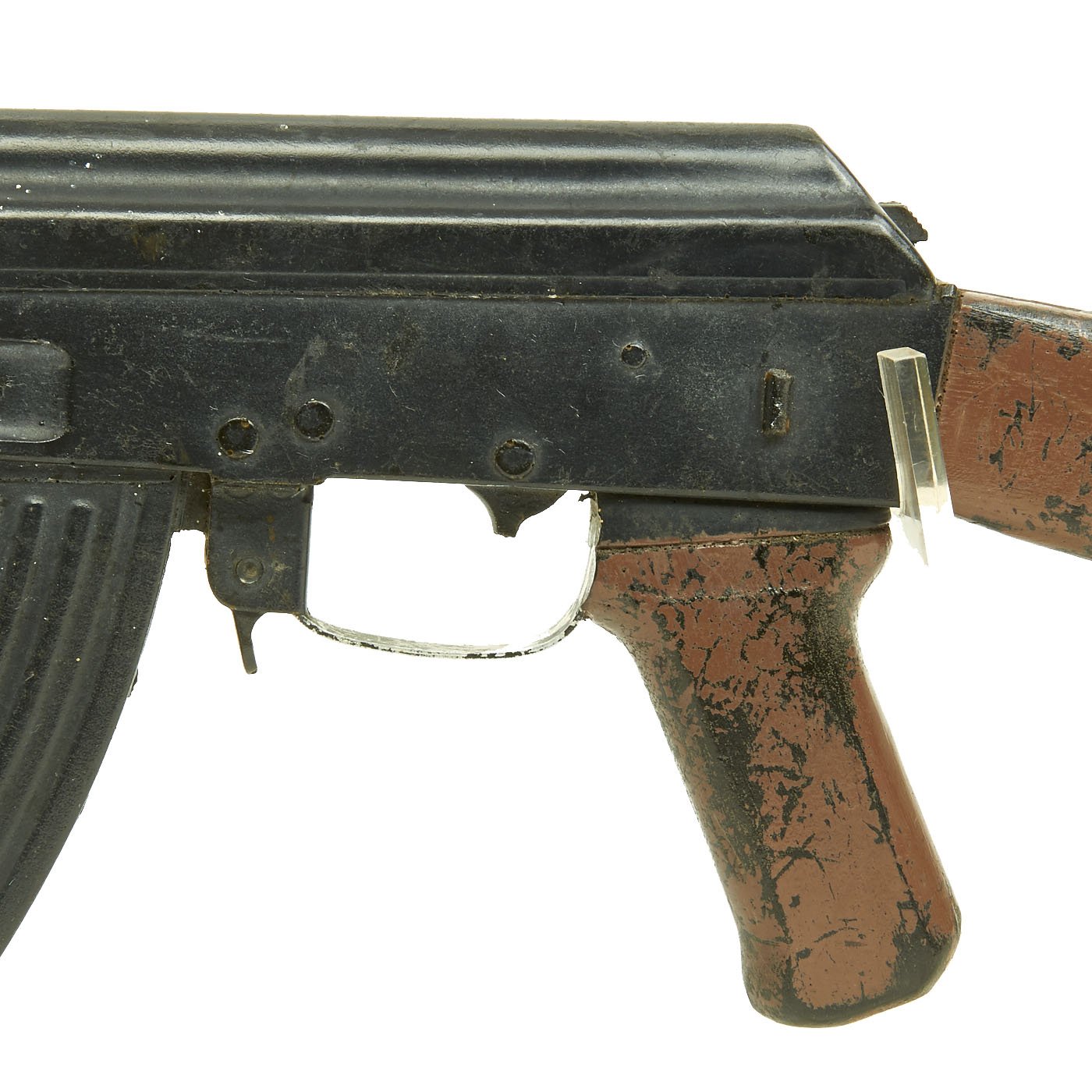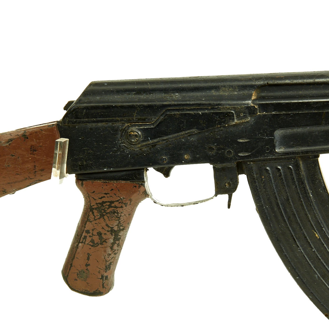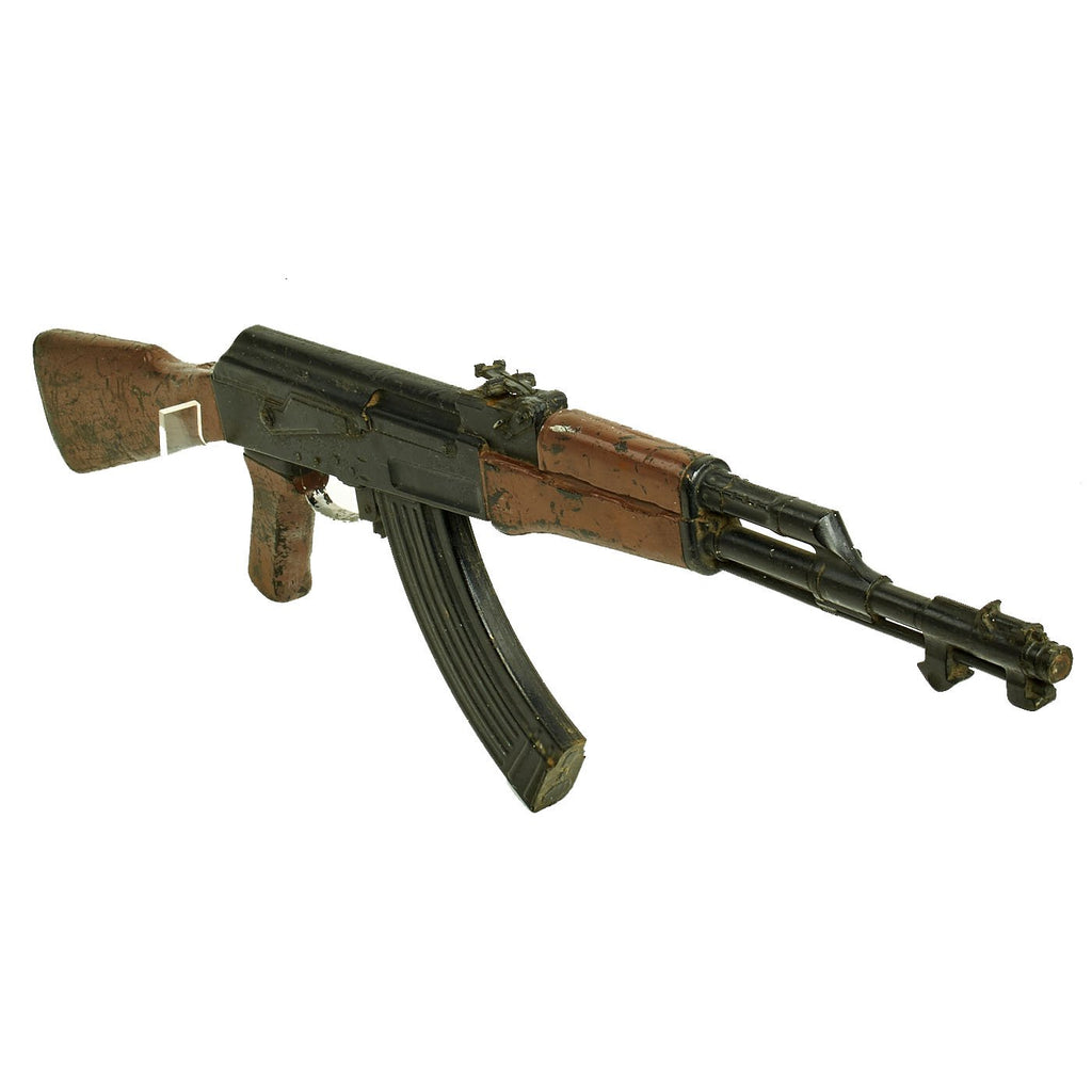 Original Item: Only One Available. This is 1960s Cold War / Vietnam War Era U.S. military issue AK-47 training replica rifle. The military calls these rifles Rubber Ducks. This is full size, true to weight, non-firing replica made of hard rubber, molded from an original. The side of the "receiver" is marked with 66 in a triangle, next to 五六式 11064272. The Chinese numbers and markings indicate this is definitely molded from a Chinese example, and they were the major supplier of AK-47s to the NVA and Vietcong.