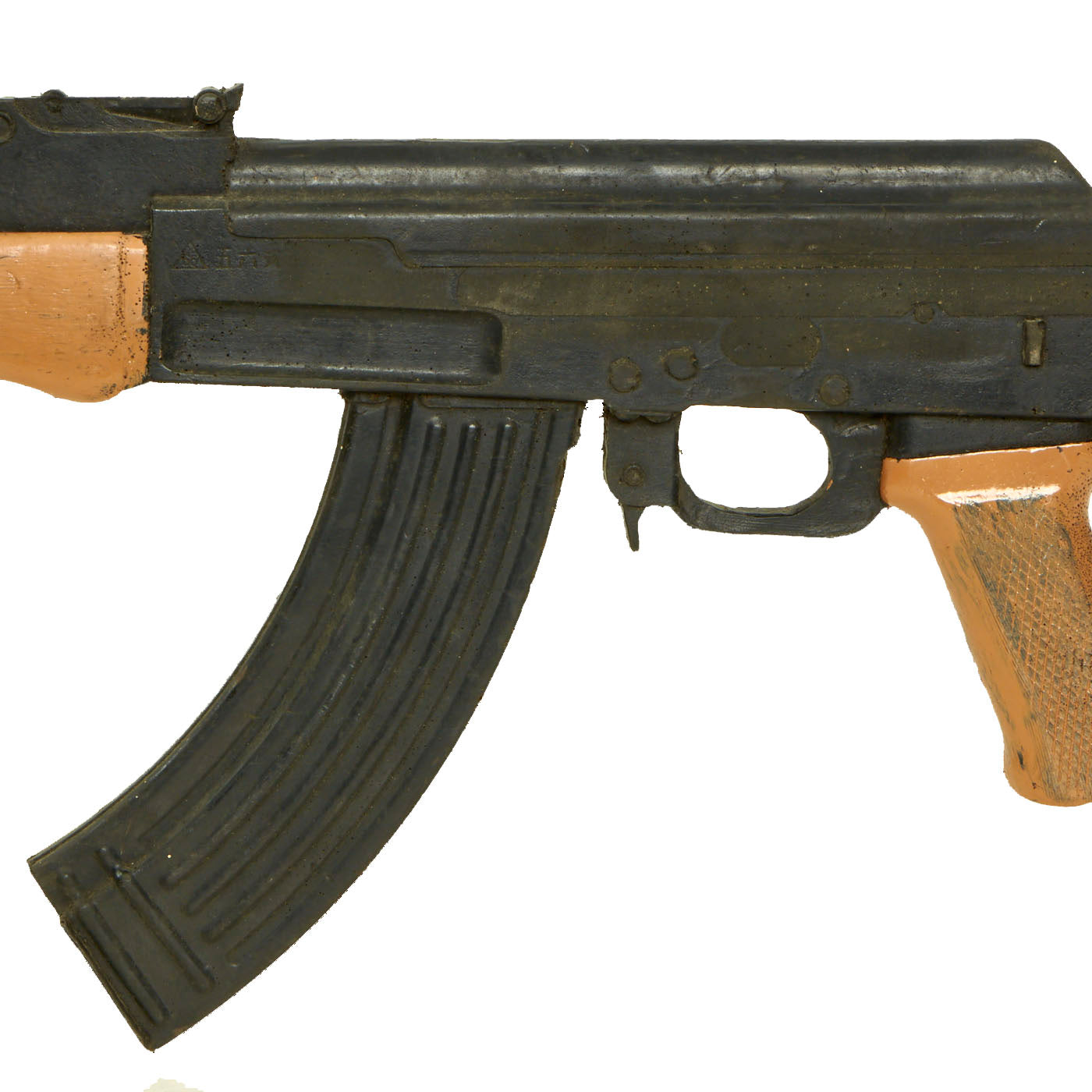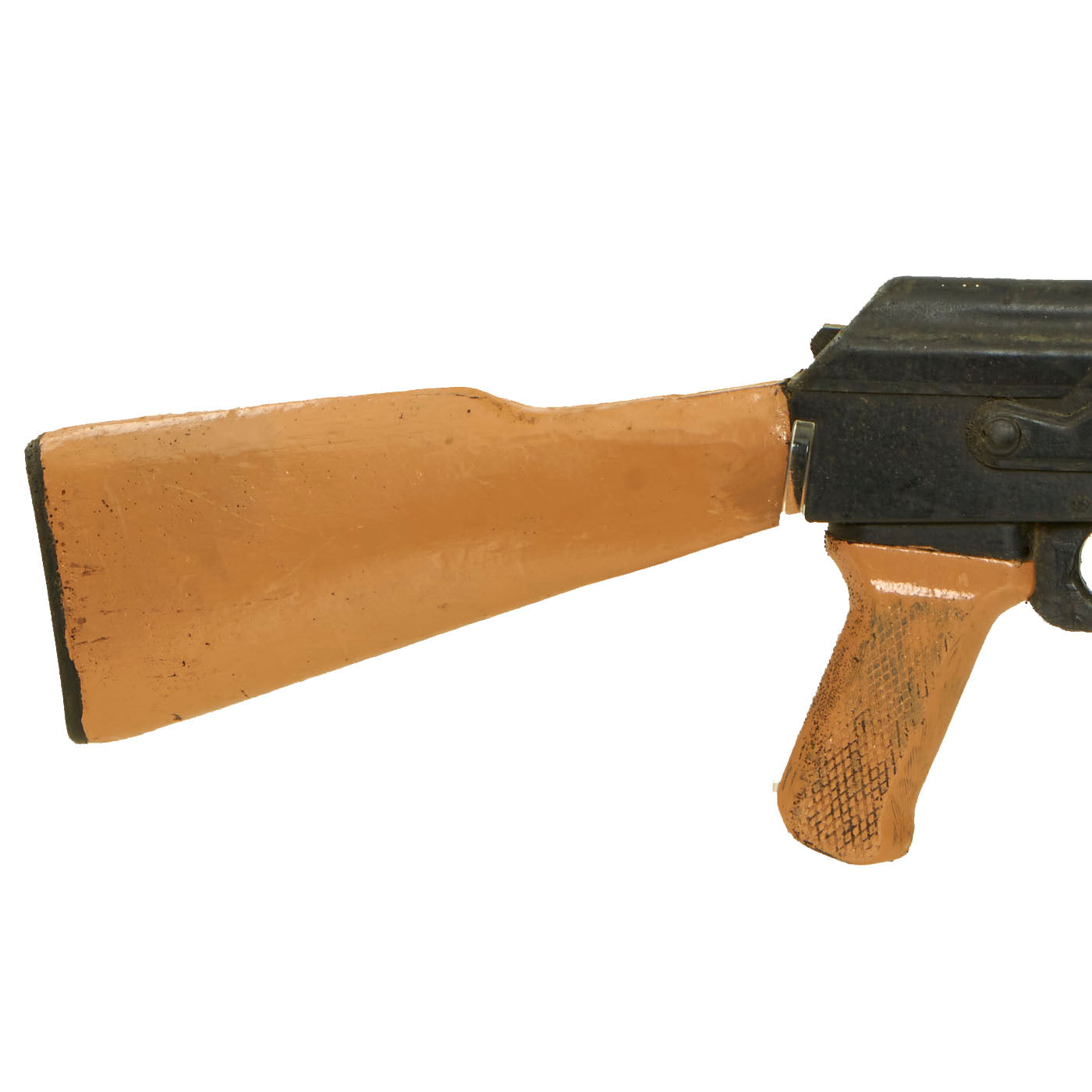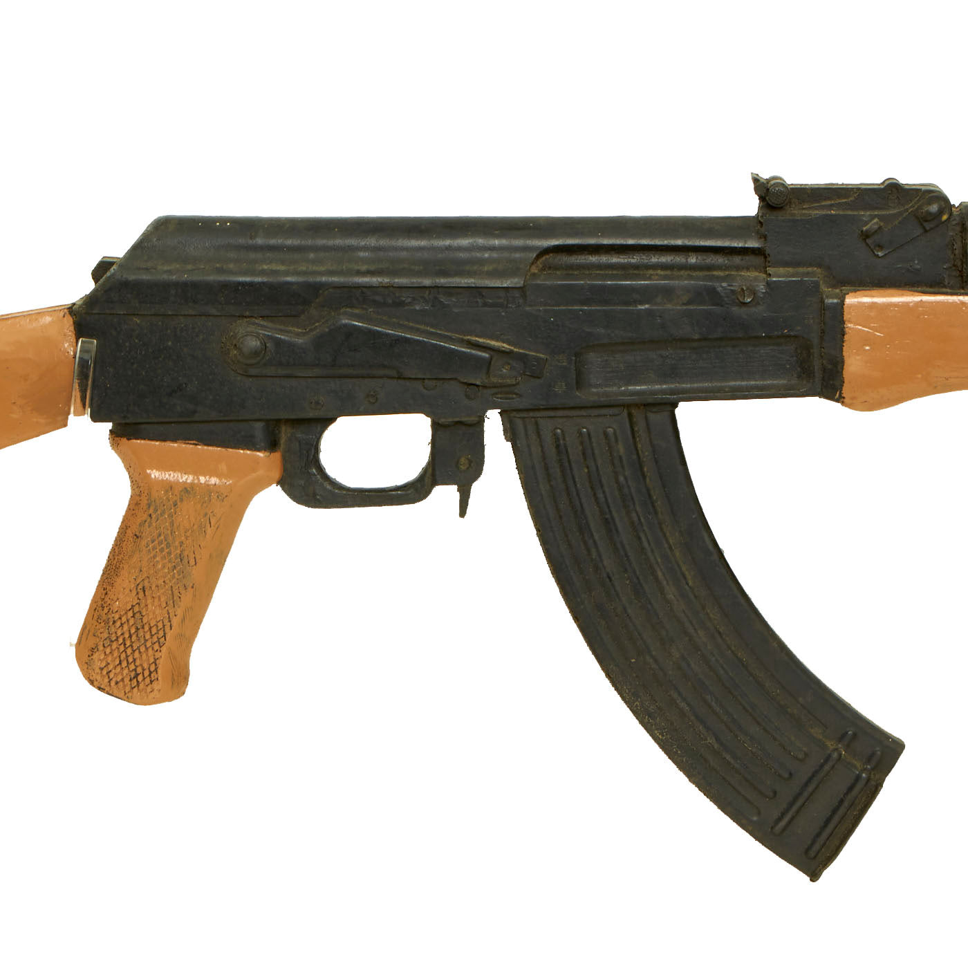 Original Item: Only One Available. This is 1960s Cold War / Vietnam War Era U.S. military issue AK-47 training replica rifle. The military calls these rifles Rubber Ducks. This is full size, true to weight, non-firing replica made of hard rubber, molded from an original. The side of the "receiver" is marked with 66 in a triangle, next to 五六式. The Chinese numbers and markings indicate this is definitely molded from a Chinese example, and they were the major supplier of AK-47s to the NVA and Vietcong.