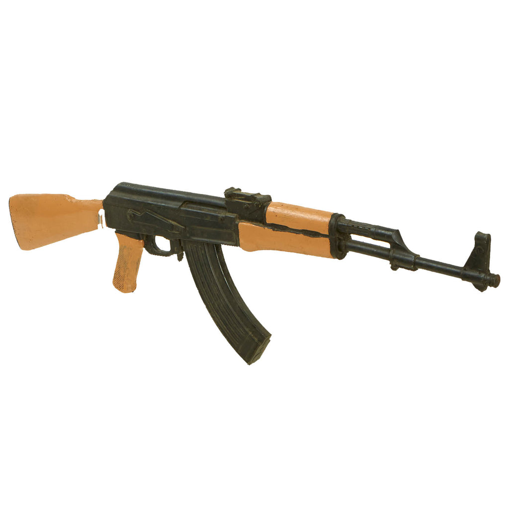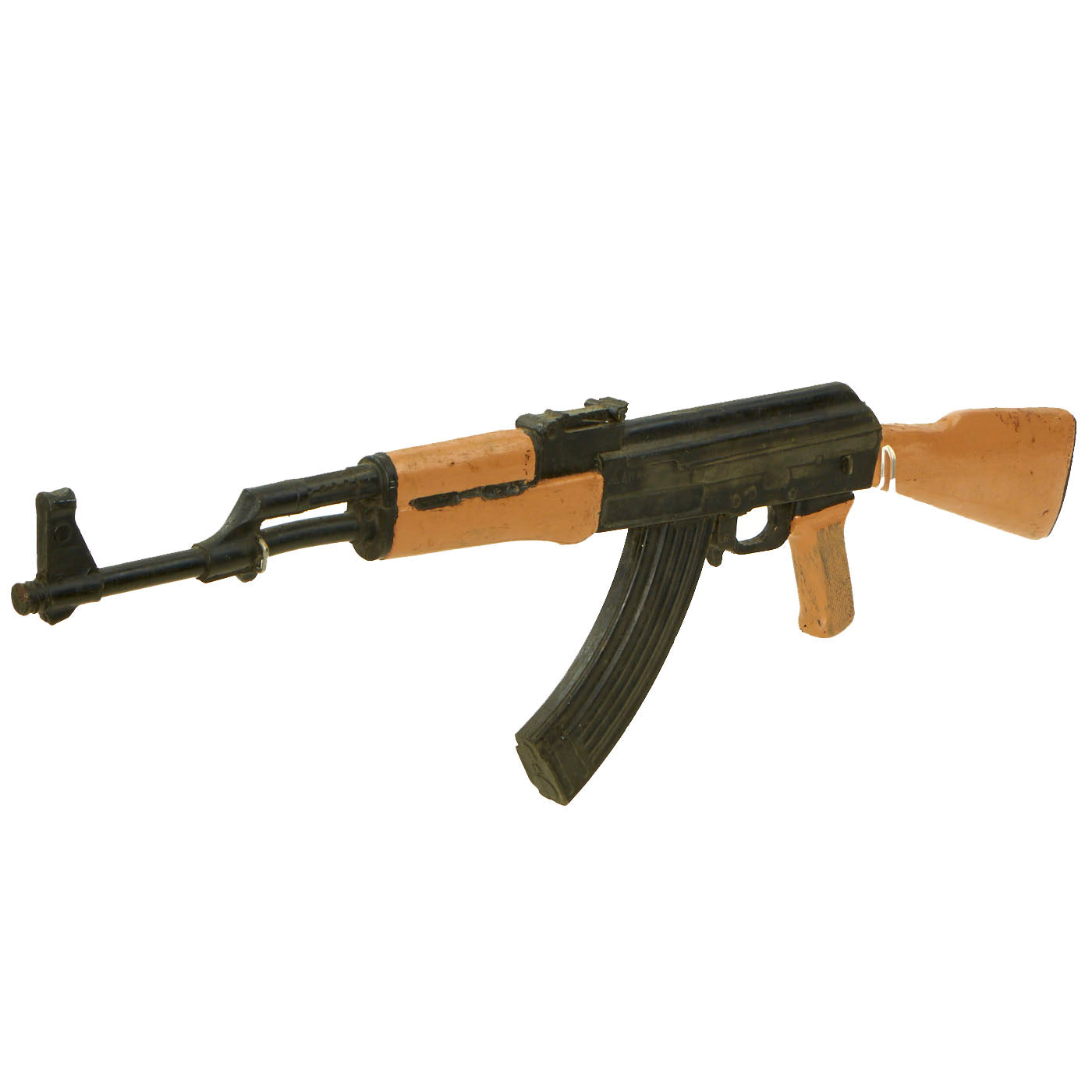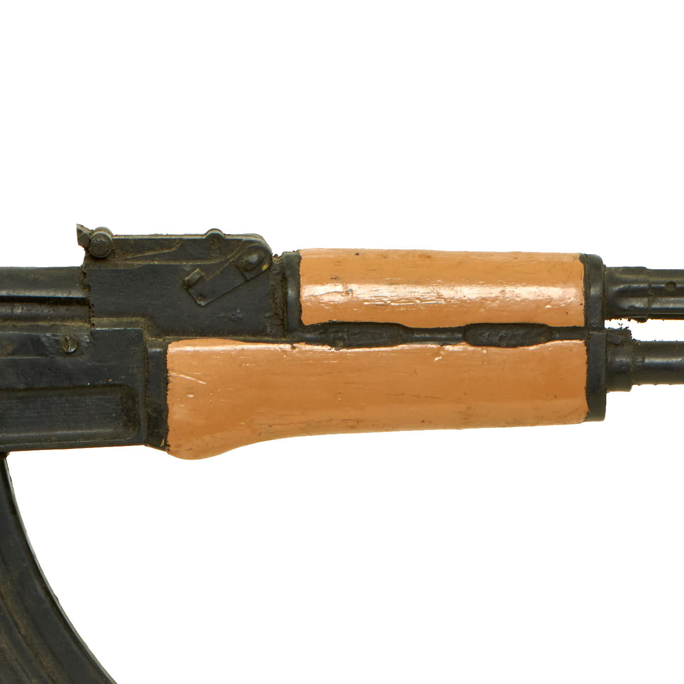 Original Item: Only One Available. This is 1960s Cold War / Vietnam War Era U.S. military issue AK-47 training replica rifle. The military calls these rifles Rubber Ducks. This is full size, true to weight, non-firing replica made of hard rubber, molded from an original. The side of the "receiver" is marked with 66 in a triangle, next to 五六式. The Chinese numbers and markings indicate this is definitely molded from a Chinese example, and they were the major supplier of AK-47s to the NVA and Vietcong.