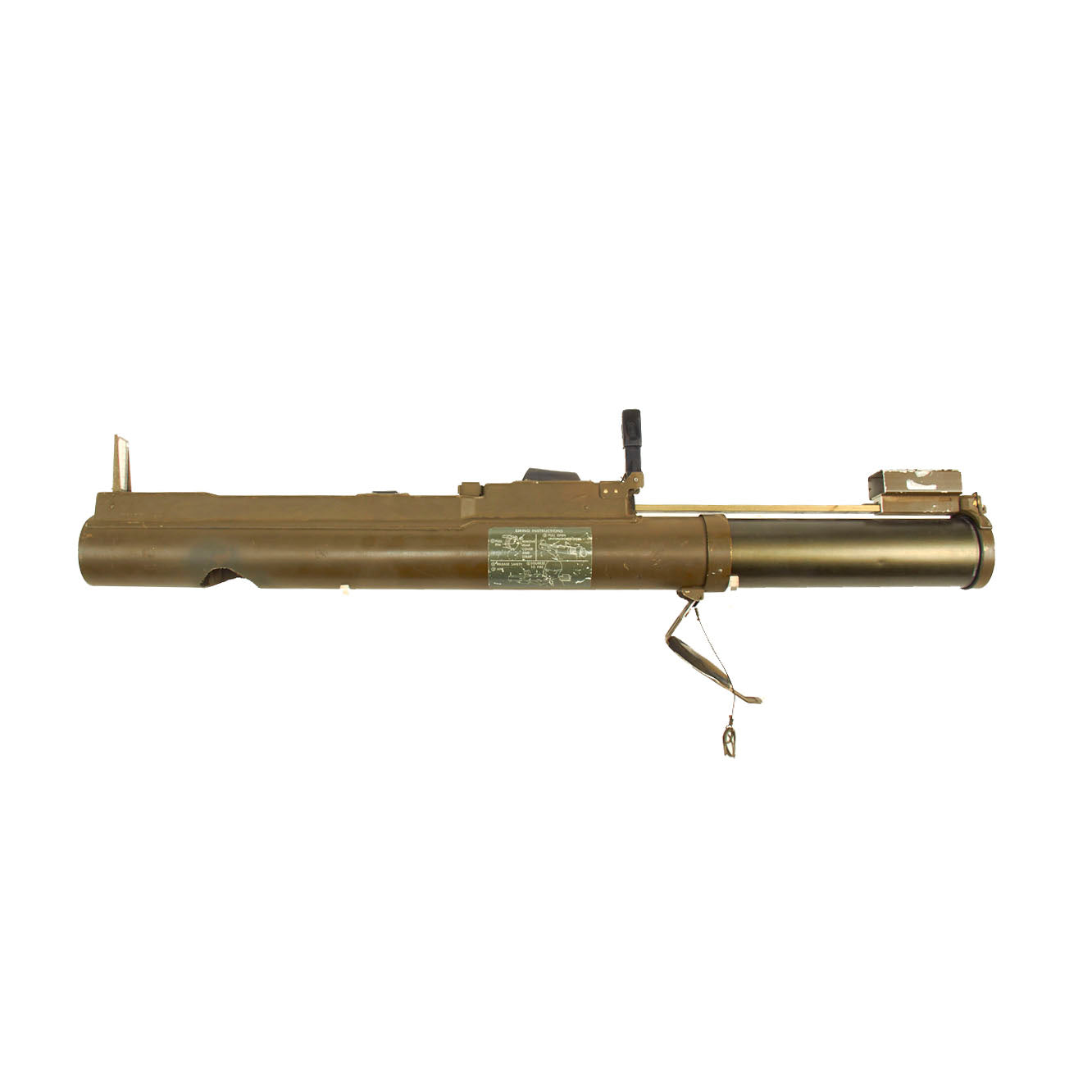 is a portable one-shot 66-mm unguided anti-tank weapon. It has been in use continuously in various versions since the 1960's. This example most likely dates from the late 1970s. It is in great condition, still extends and even dry fires. Paint is still very good, though it has had areas repainted, and the instruction label is intact as well. Safety handle/cocking lever is still present and functional, and the cap has the retaining pin.