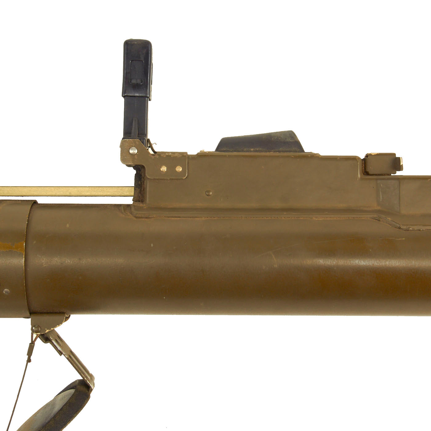 These are timeless in design, which the U.S. Military has tried to replace in the past, but was unable to find anything better than these disposable launchers. This very nice example has the rear sight intact and the front sight, which is so often missing! The front cover and sling assembly is still present and undamaged.