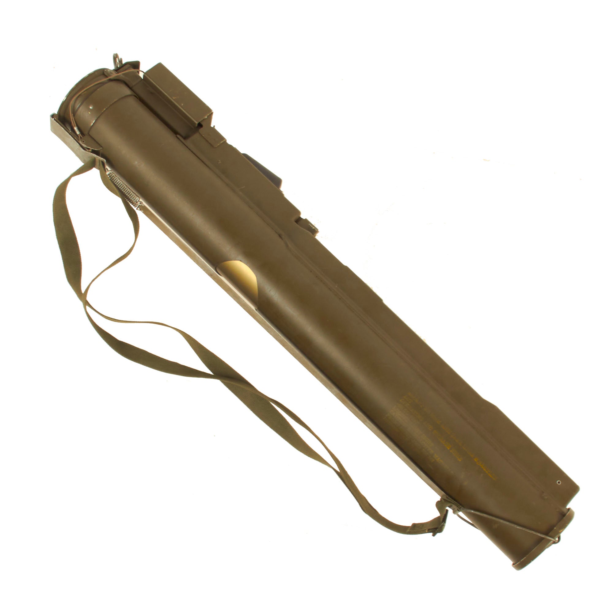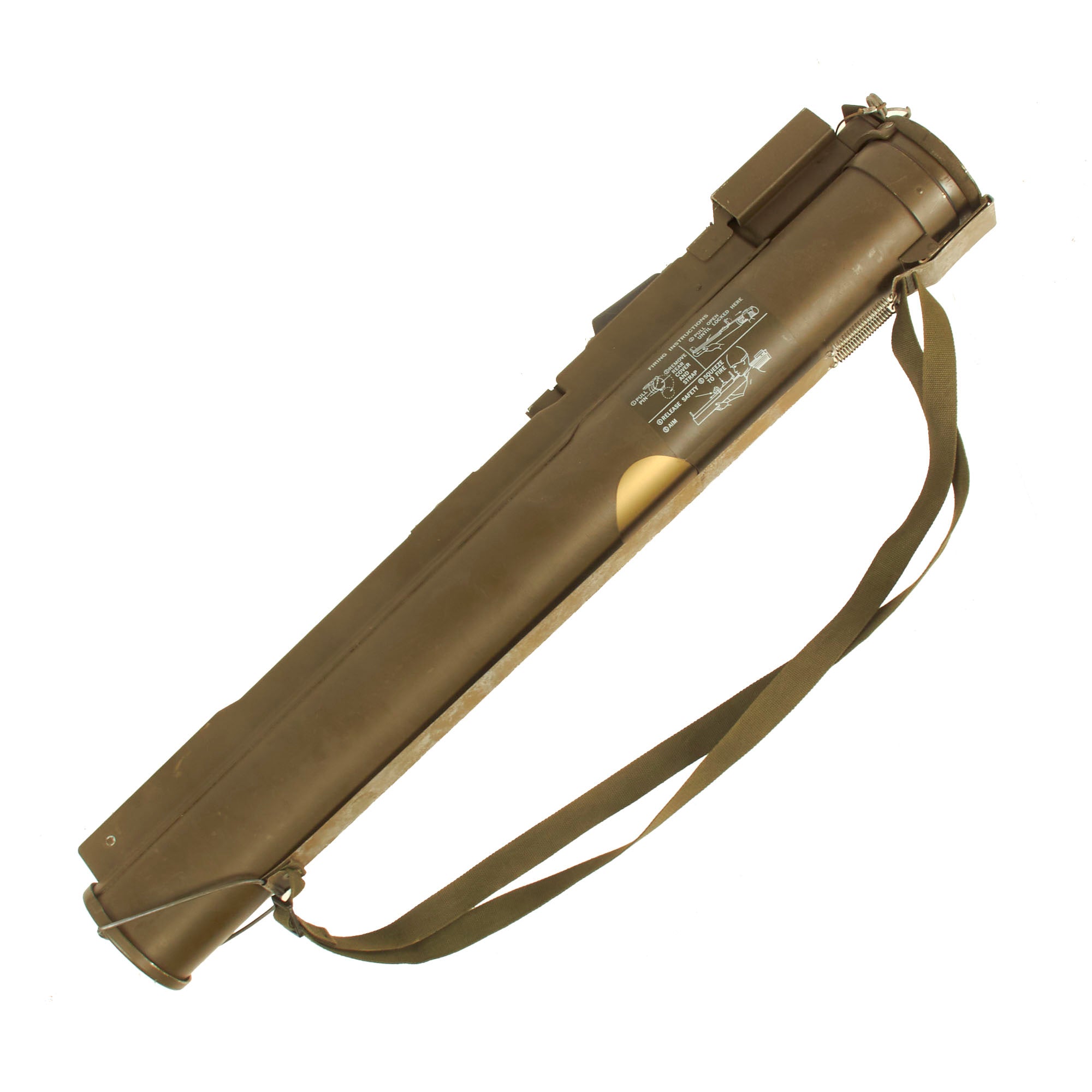 These are timeless in design, which the U.S. Military has tried to replace in the past, but was unable to find anything better than these disposable launchers. This very nice example has the rear sight intact as well as the often missing front sight, sling and end cap.