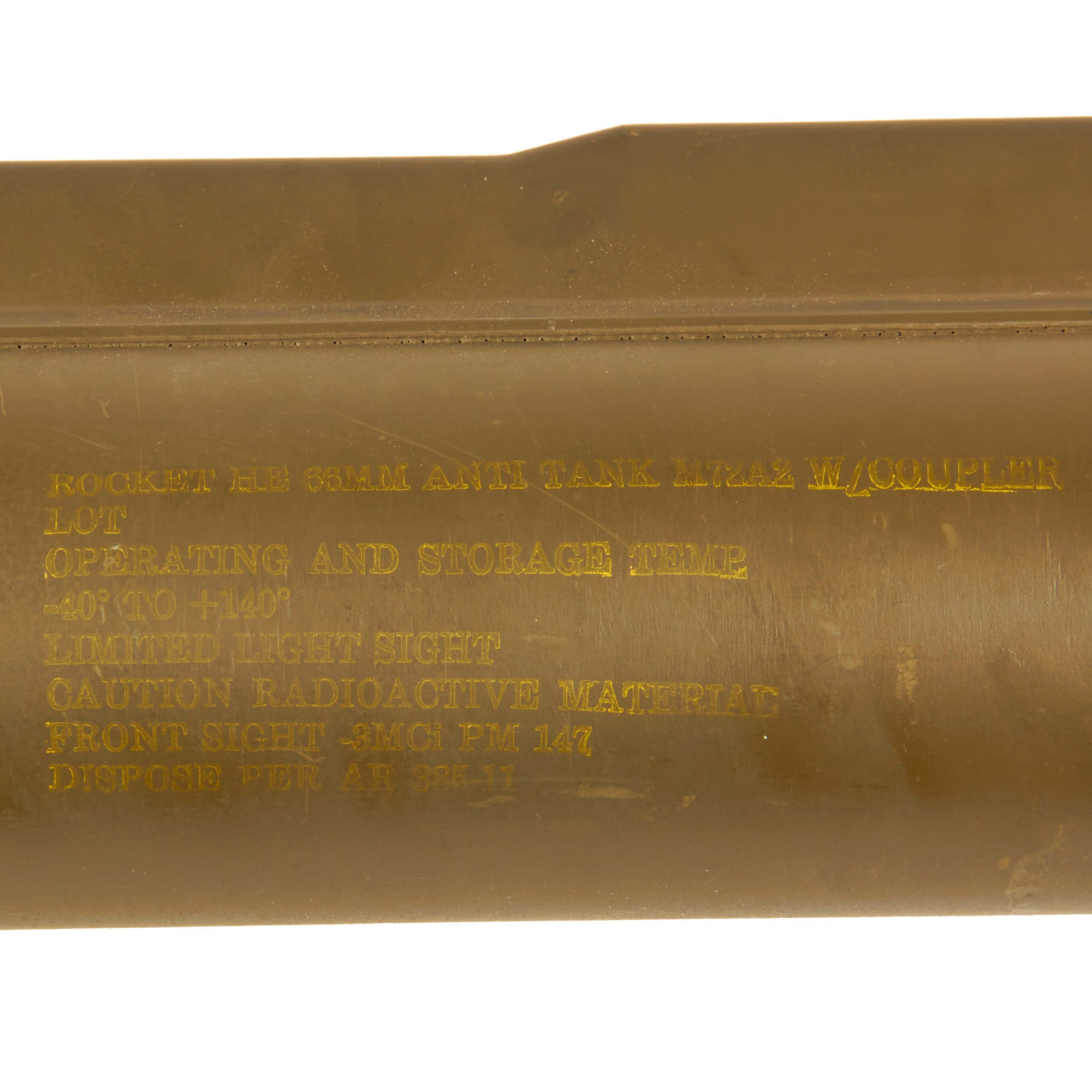 Original Item: Only one available. This is an inert non-firing BATF compliant M72A2 LAW Light Anti-Tank Weapon offered in excellent condition. Once fired, these tubes are unable to be reloaded.