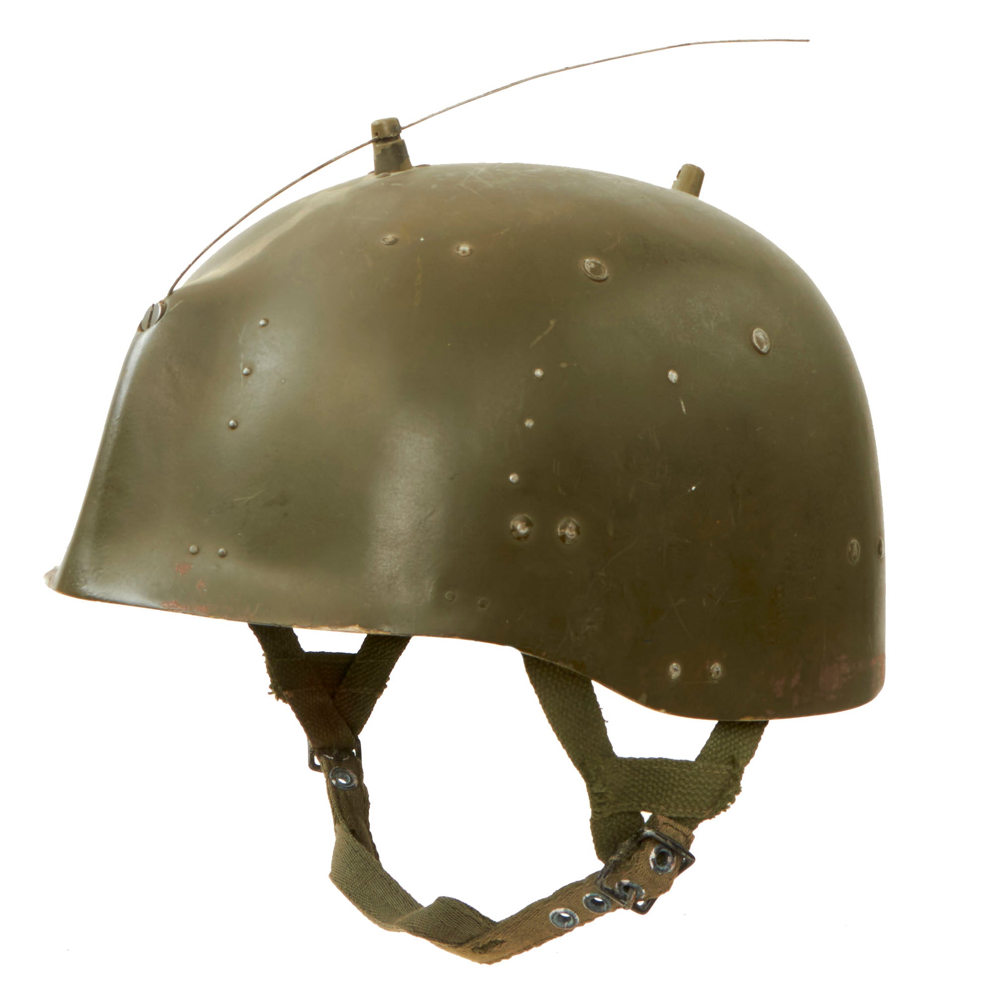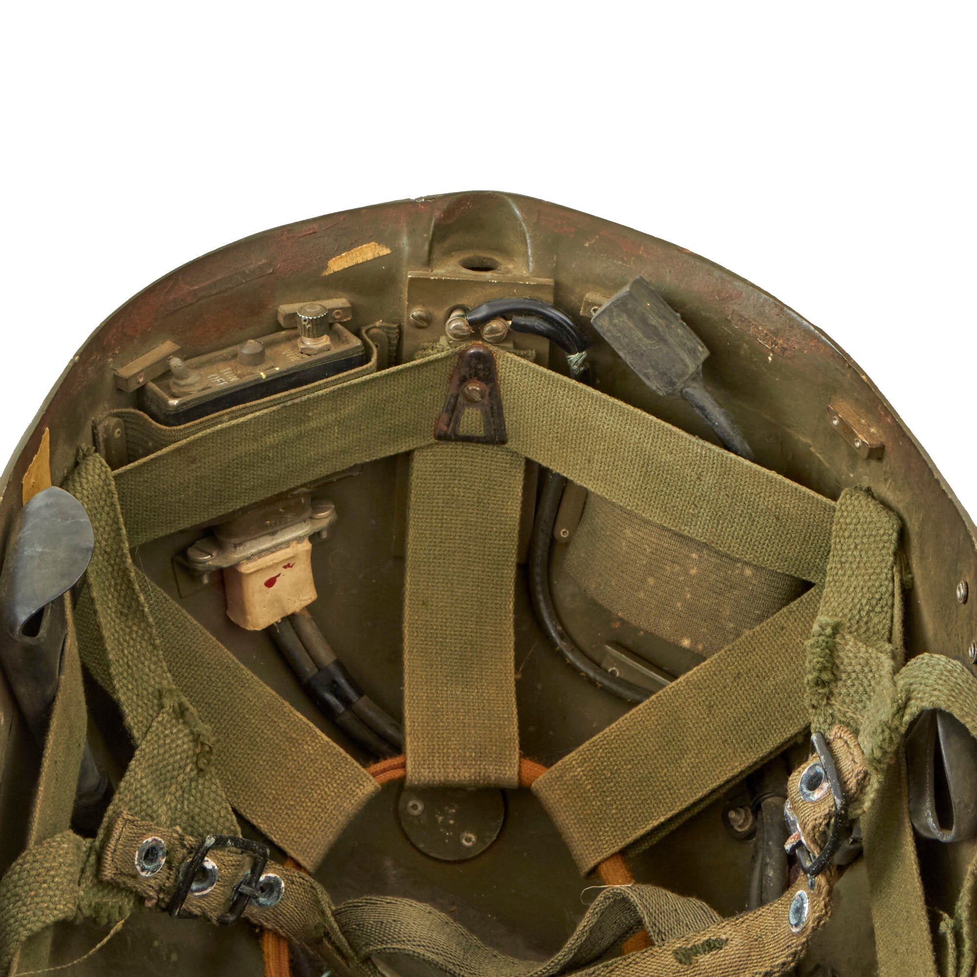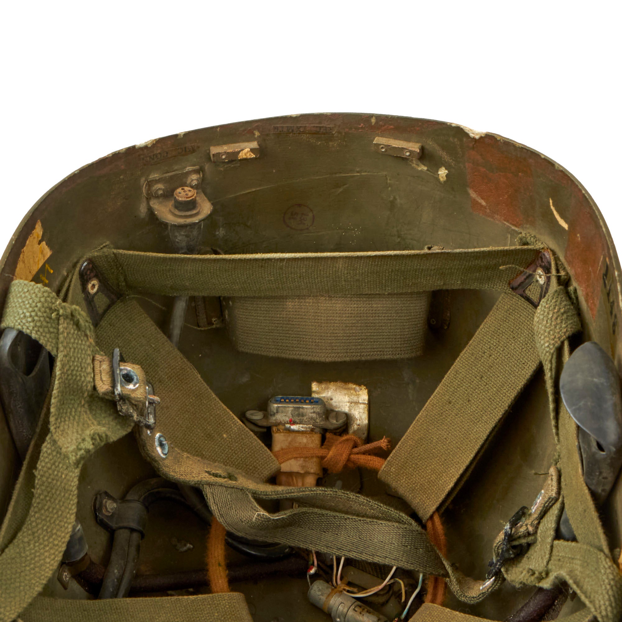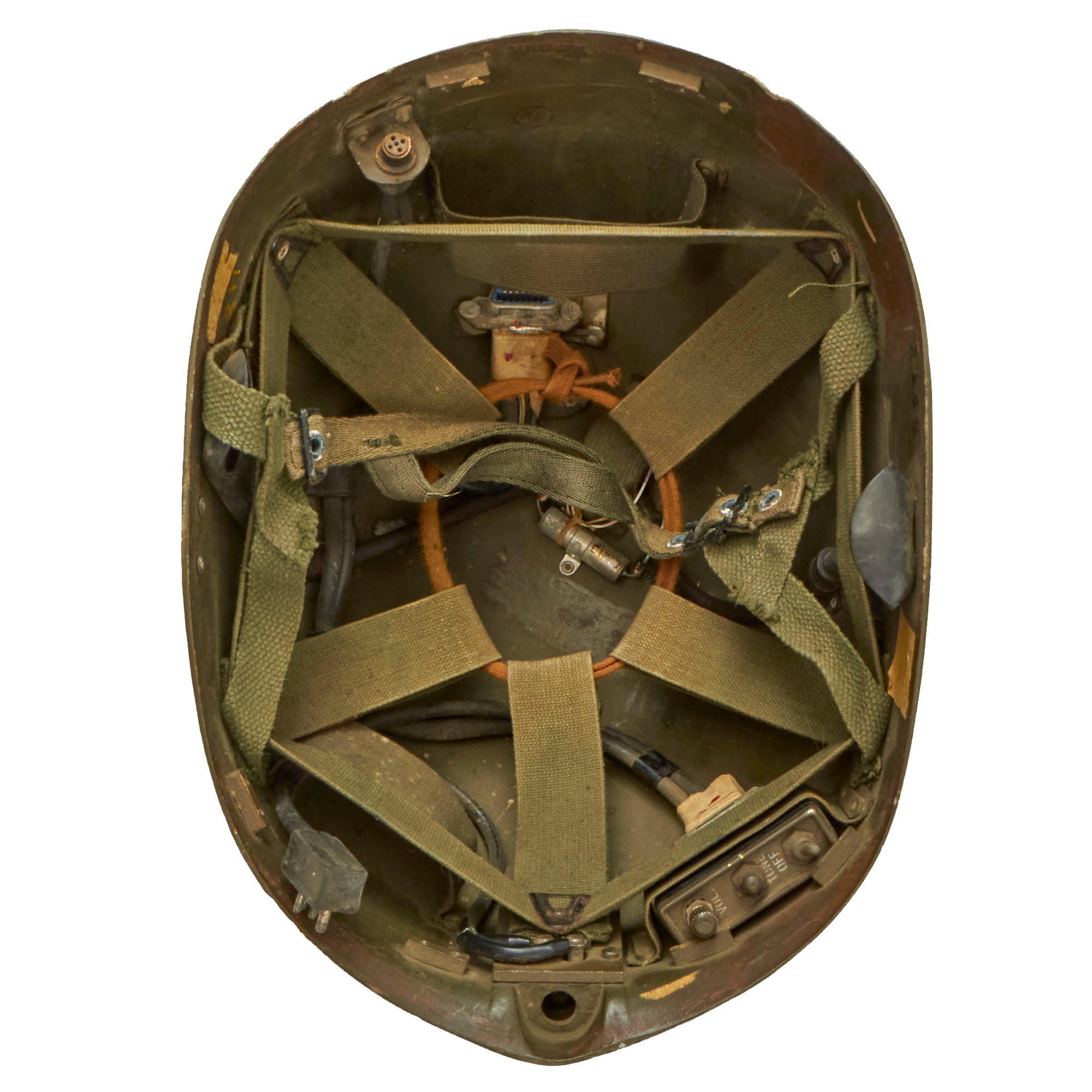 Original Item. Only One Available. This is an extremely scarce experimental US AN/PRC 34 Helmet. These helmets were developed after the Korean war to replace handheld squad radios. The helmet features a small modulated transceiver, batter, earpiece, and antenna incorporated into the helmet liner. They had performance issues and were never adopted into military use, making these a scarce find. This example has a plug but is missing the microphone.